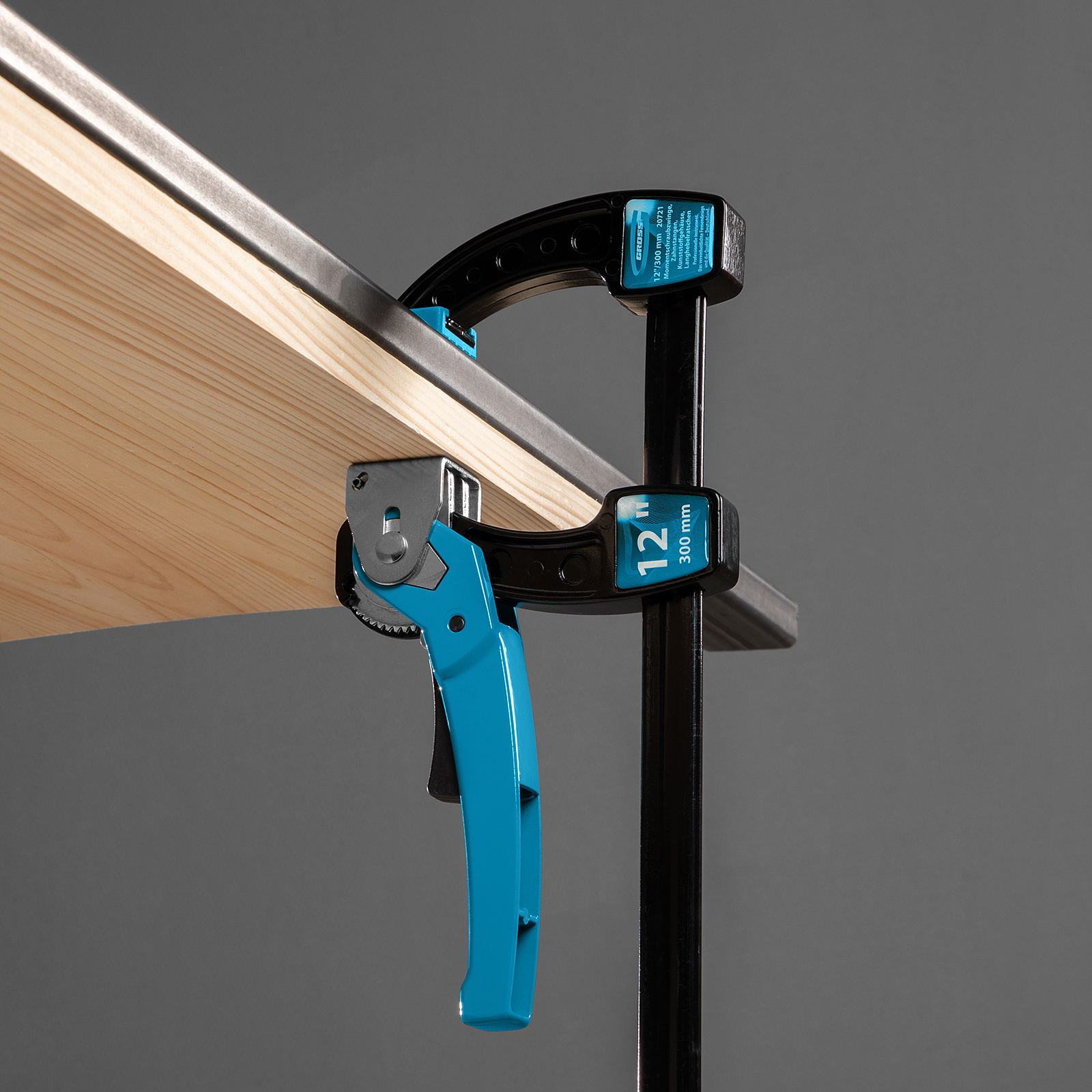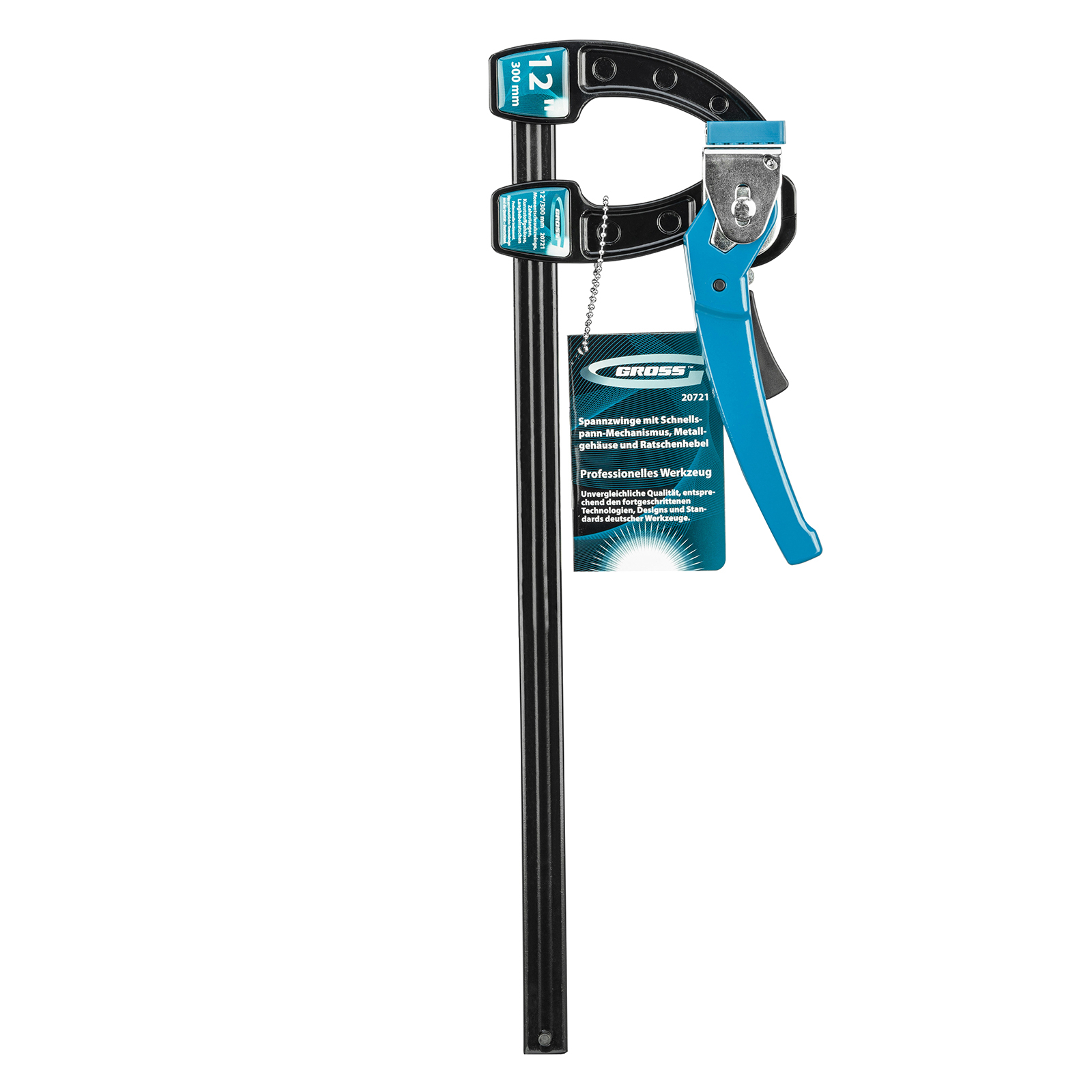 Струбцина реечная быстрозажимная 12, металлический корпус, рычажный храповой механизм, 300 мм Gross