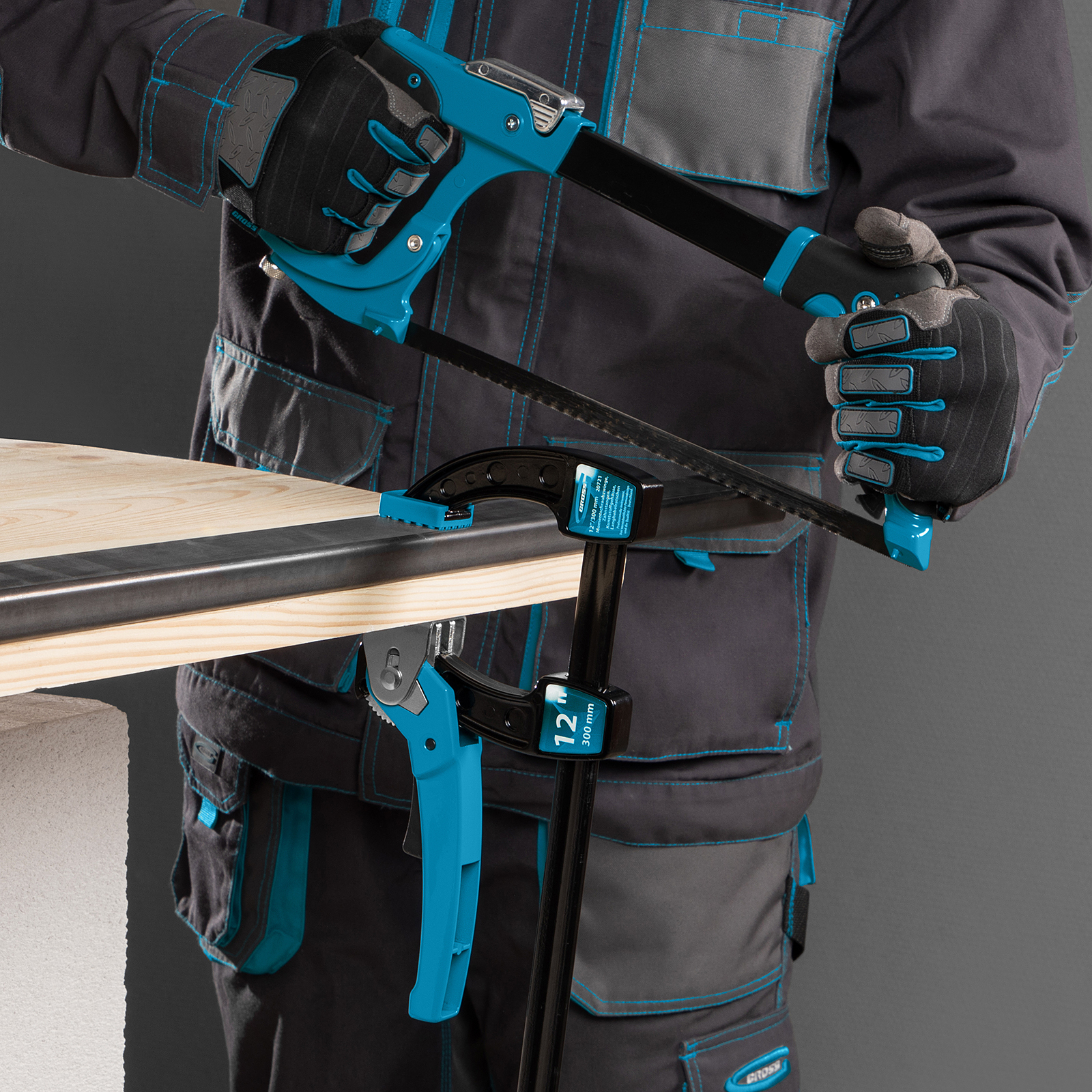 Реечная быстрозажимная струбцина Gross 20721, в металлическом корпусе, с рычажным храповым механизмом, служит для фиксации деталей и конструкций толщиной до 12 дюймов / 300 мм. Губки подводят вплотную к детали, а храповой механизм с рычагом позволяет окончательно зафиксировать ее, максимально используя мускульную силу. Стопорный механизм VIBRAFIX способен удерживать предметы с усилием 1200 Н. Струбцина используется для выполнения профессиональных столярных и слесарных работ.