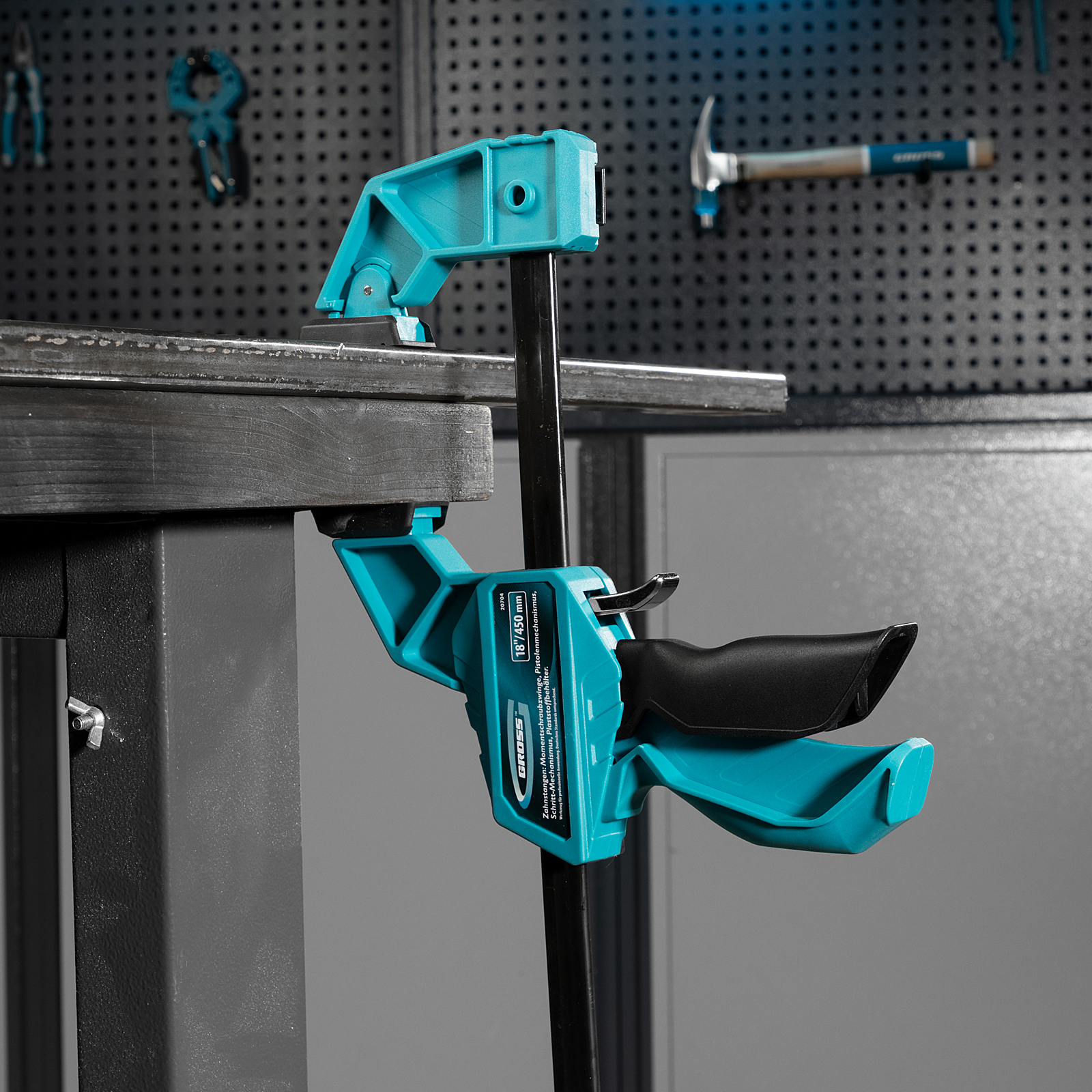 Струбцина реечная, быстрозажимная, пистолетного типа, пошаговый механизм, пластиковый корпус, 450мм Gross