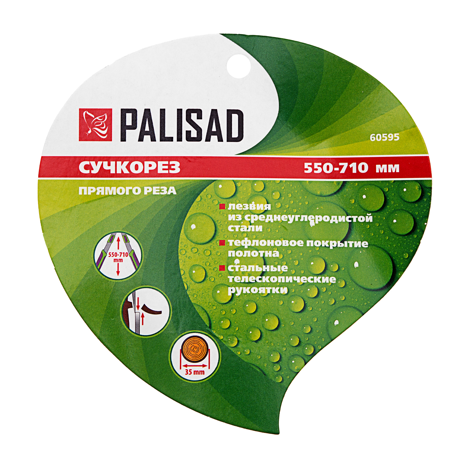Сучкорез прямого реза Palisad 60595 с телескопическими стальными обрезиненными рукоятками, регулирующимися в пределах 550-710 мм, — инструмент для срезания живых веток толщиной до 35 мм. Сучкорез с длинными ручками предназначен для работы двумя руками, что позволяет прикладывать значительное усилие и справляться даже с очень жесткой древесиной. Рабочее лезвие с тефлоновым покрытием устойчиво к коррозии и обеспечивает легкий рез. Раздвижные рукоятки облегчают доступ к высоко расположенным веткам. Сучкорез используется для ухода за садом и огородом и будет полезен на даче.