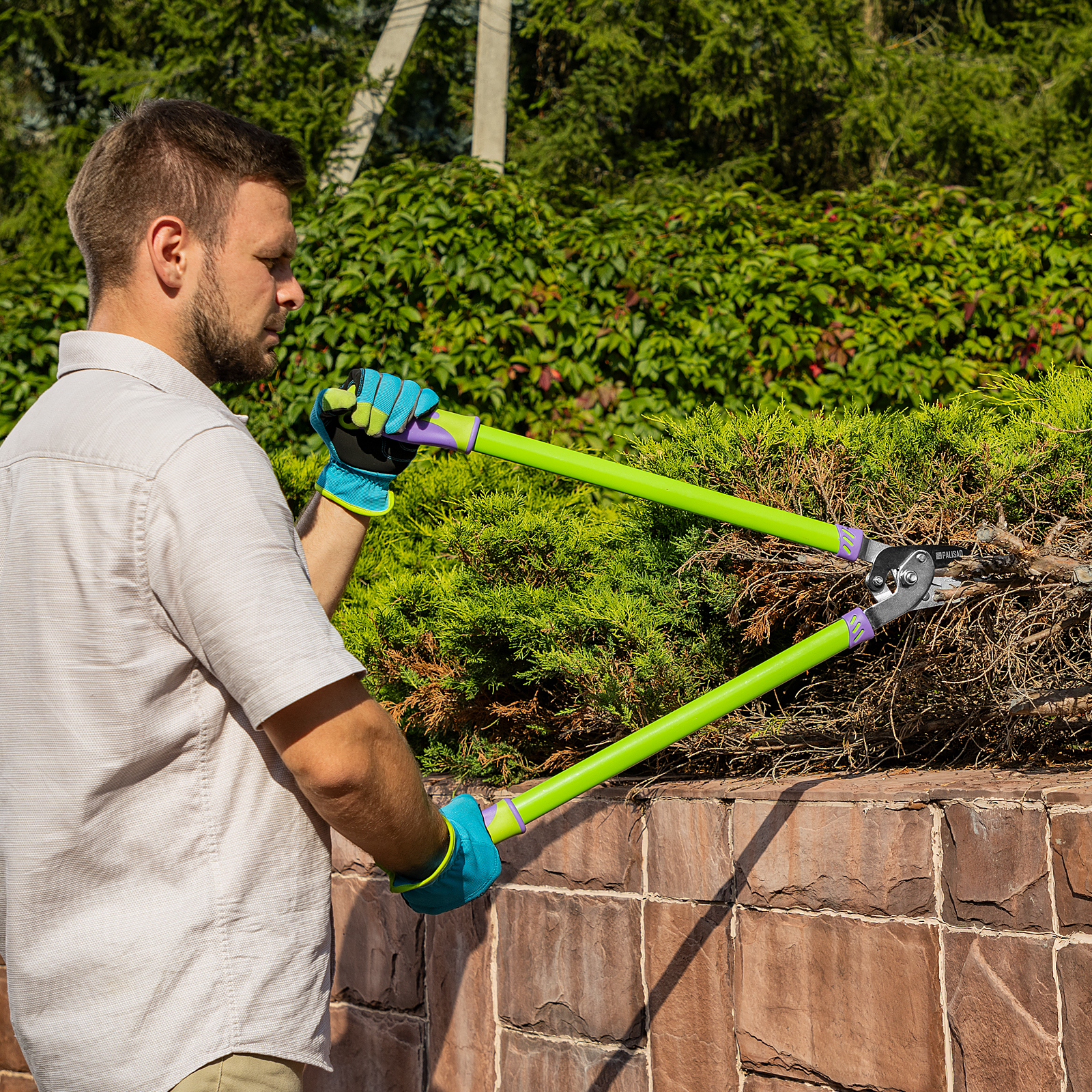 Сучкорез с наковальней Palisad 60520 длиной 710 мм, с двухрычажным механизмом и двухкомпонентными рукоятками, — двуручный инструмент для обрезки засохших и увядших веток диаметром до 30 мм. Двухрычажный механизм увеличивает прикладываемое усилие на 20%, что облегчает работу. Регулировочный винт позволяет контролировать плотность смыкания лезвий. Сучкорез будет полезен на дачном участке.