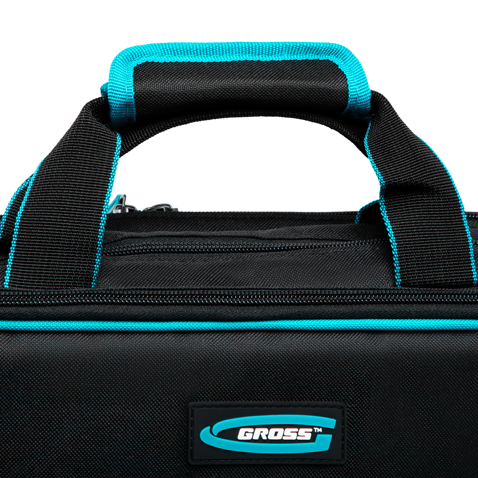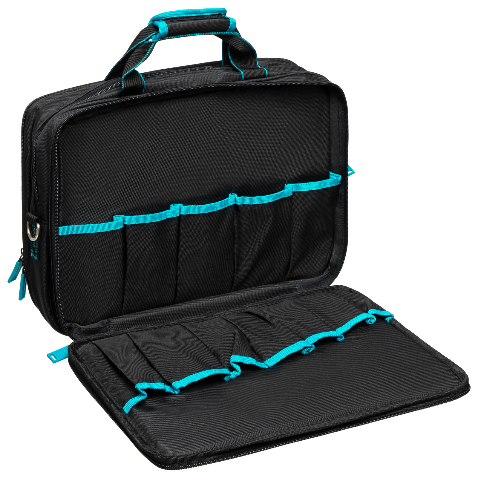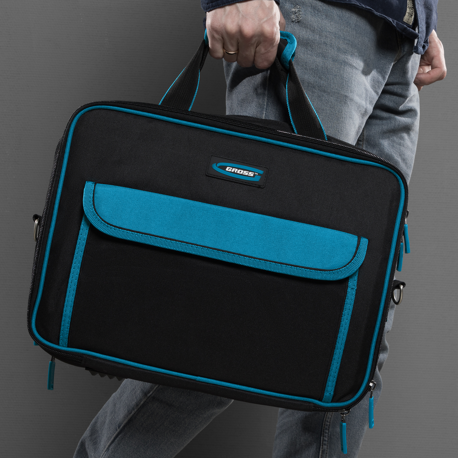 Сумка Gross Meister 90271, 400 х 170 х 300 мм, 31 карман, с отсеком для ноутбука и наплечным ремнем, удобна для переноски и хранения ручных инструментов. Подойдет мастерам по ремонту техники, слесарям, электрикам. Сумку можно брать в офис — в ней помещается ноутбук диагональю до 15 дюймов и бумаги формата А4. В сумке 31 карман и удобные фиксирующие резинки, поэтому каждый инструмент в ней всегда на своем месте.