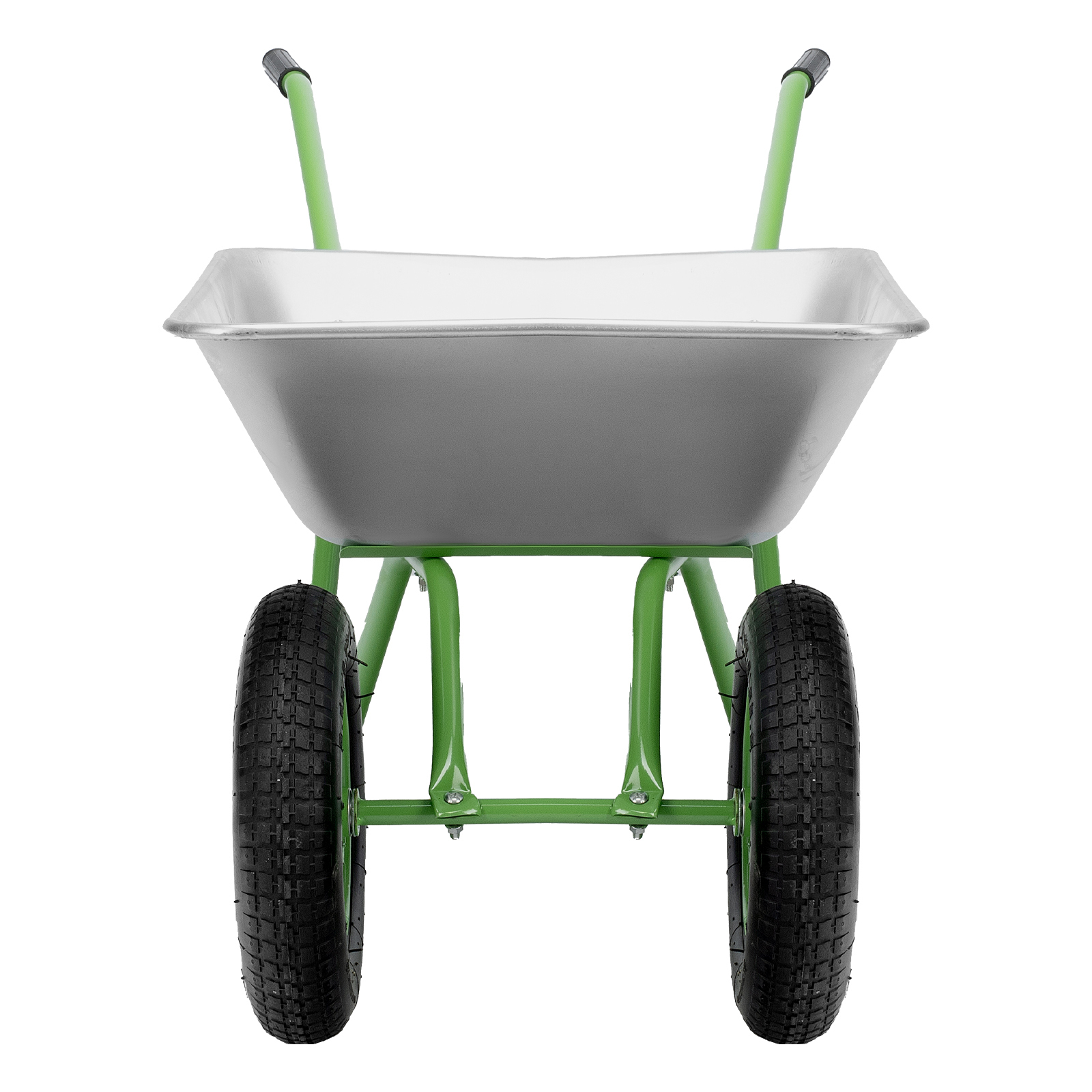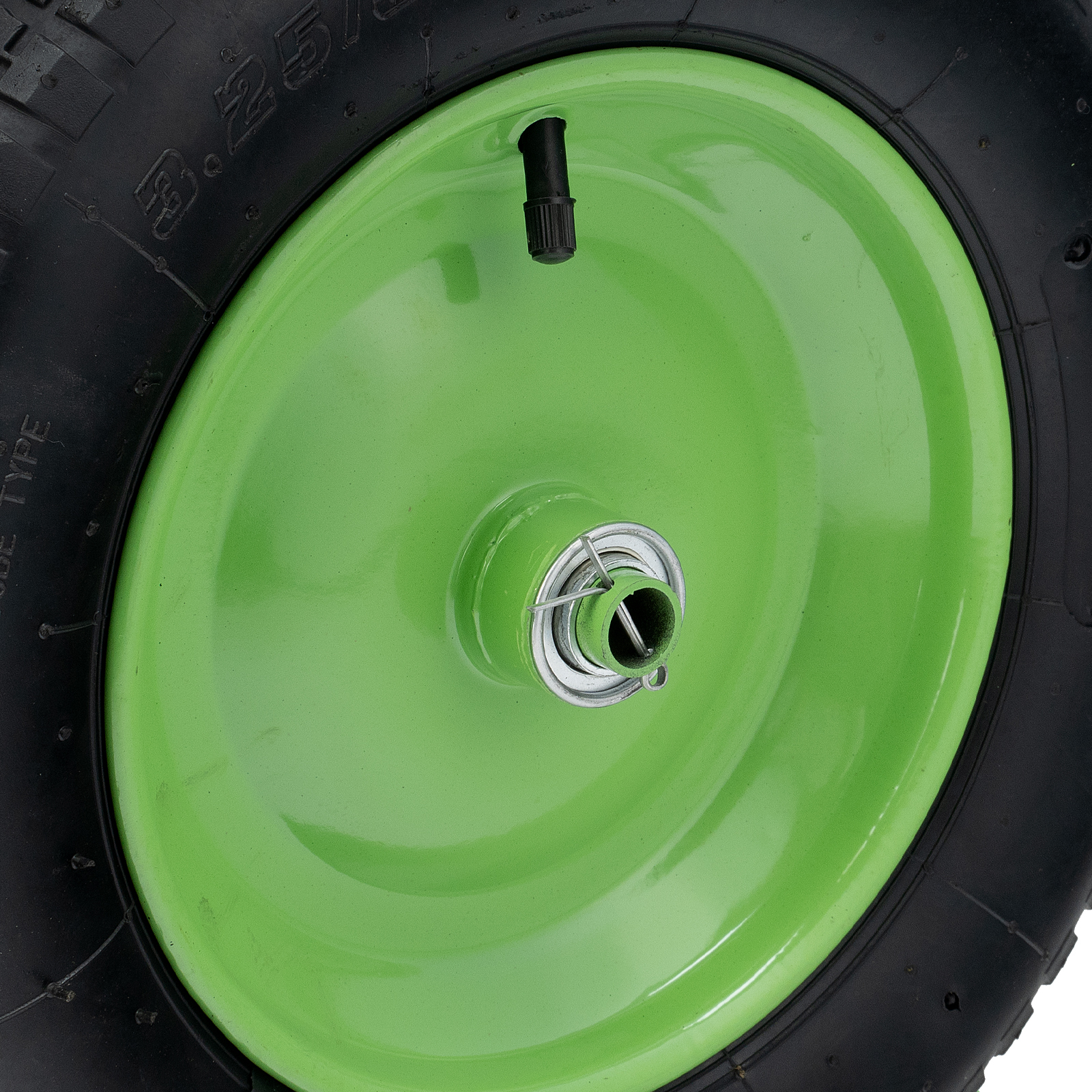 - Удобное перемещение даже по неровной поверхности — пневмоколеса с камерами и резиновыми шинами повышают плавность хода, каждое колесо оснащено 2 шариковыми подшипниками, облегчающими вращение и препятствующими износу.