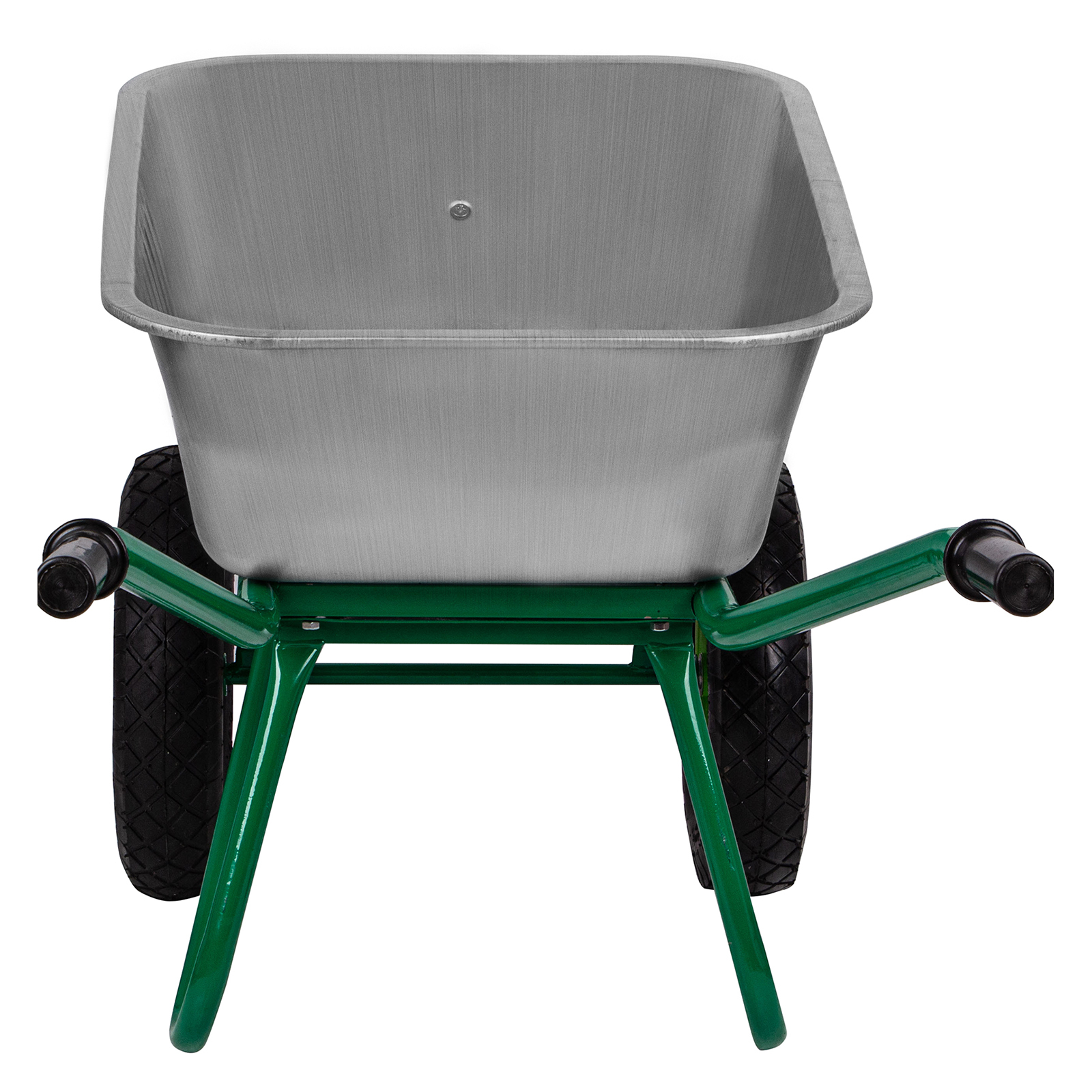 - Увеличенная грузоподъемность — переднюю часть кузова поддерживает дополнительная опора, поэтому тачка выдерживает грузы массой до 320 кг.