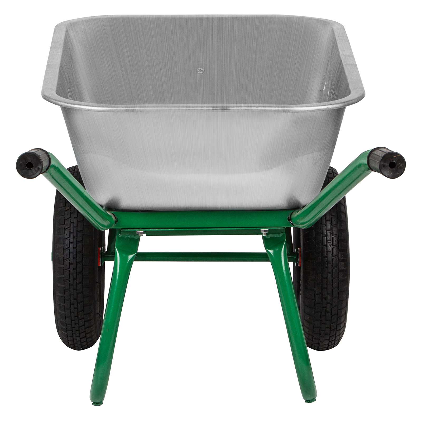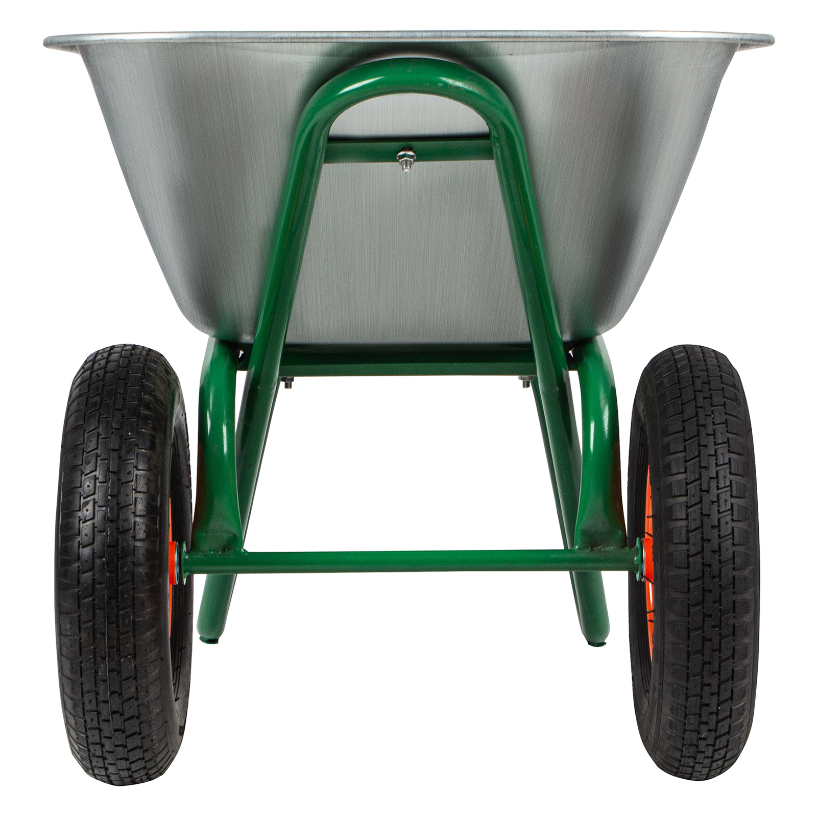 - Увеличенная грузоподъемность — переднюю часть кузова поддерживает дополнительная опора, поэтому тачка выдерживает грузы массой до 320 кг.