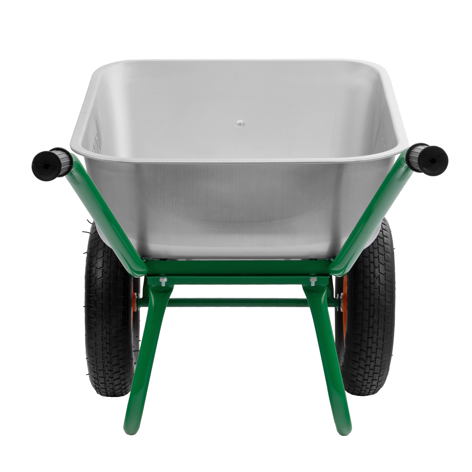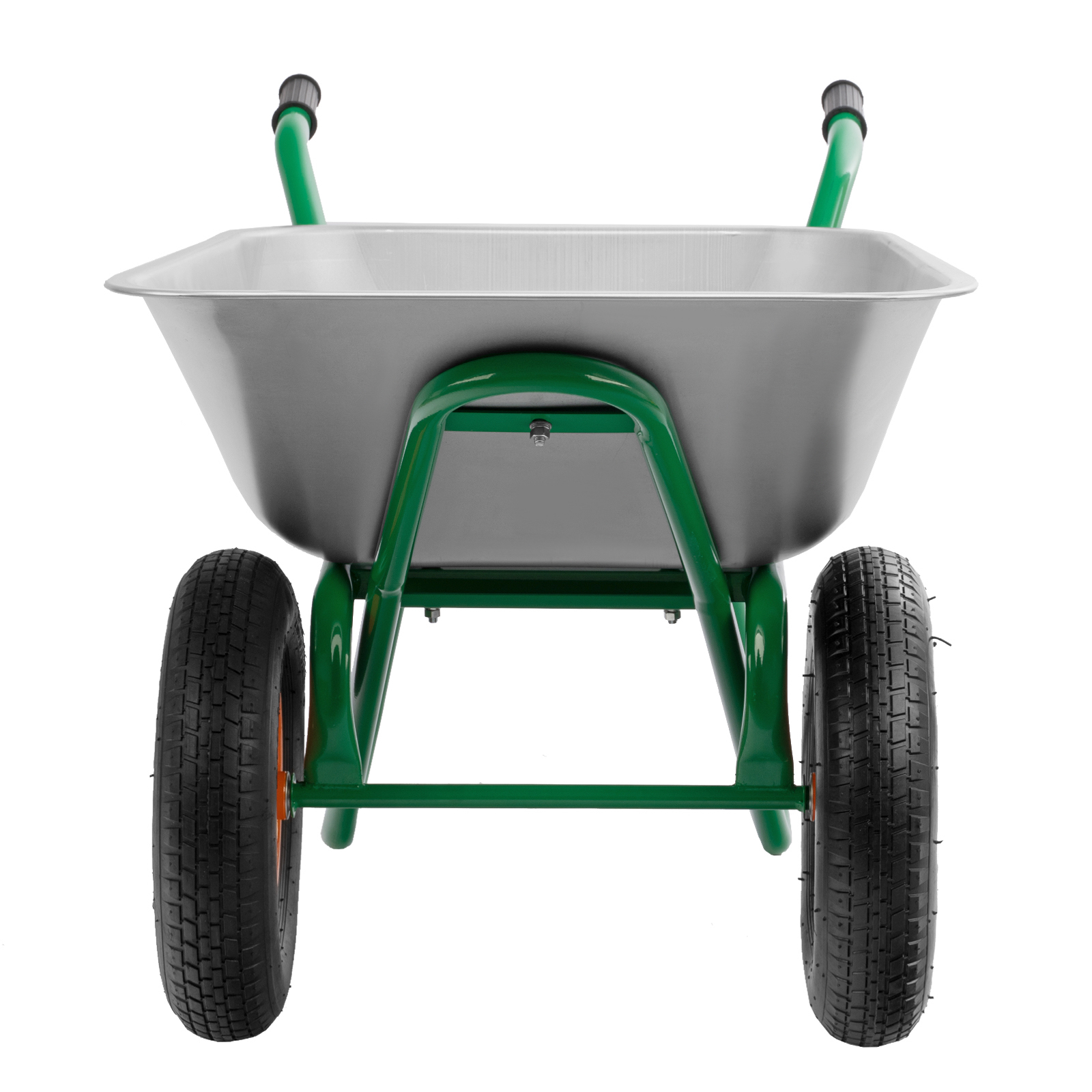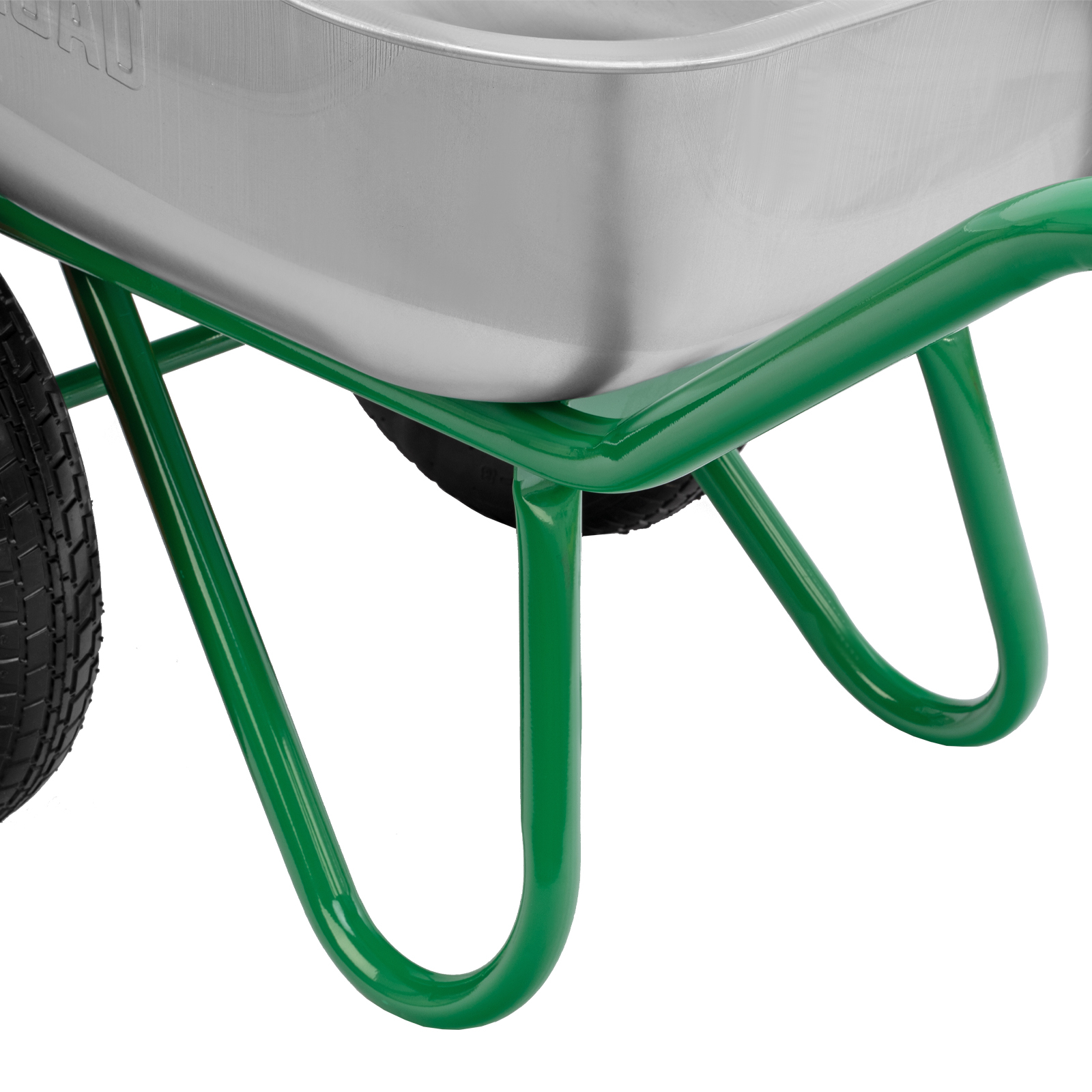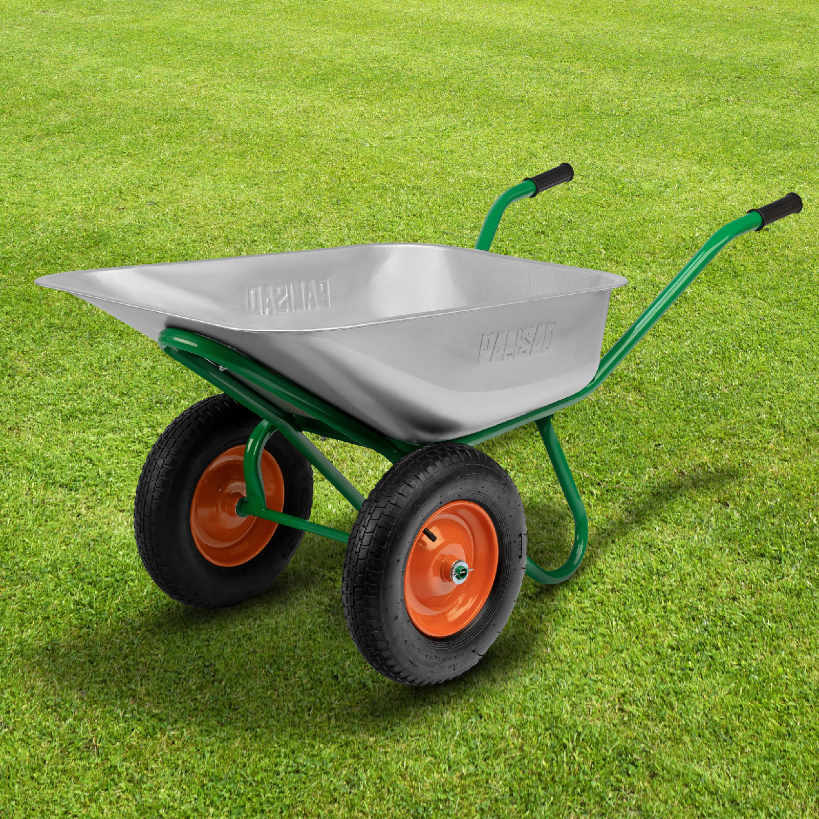 - Маневренность и невысокое давление на грунт — два пневмоколеса на шариковых подшипниках улучшают балансировку и устойчивость тачки.