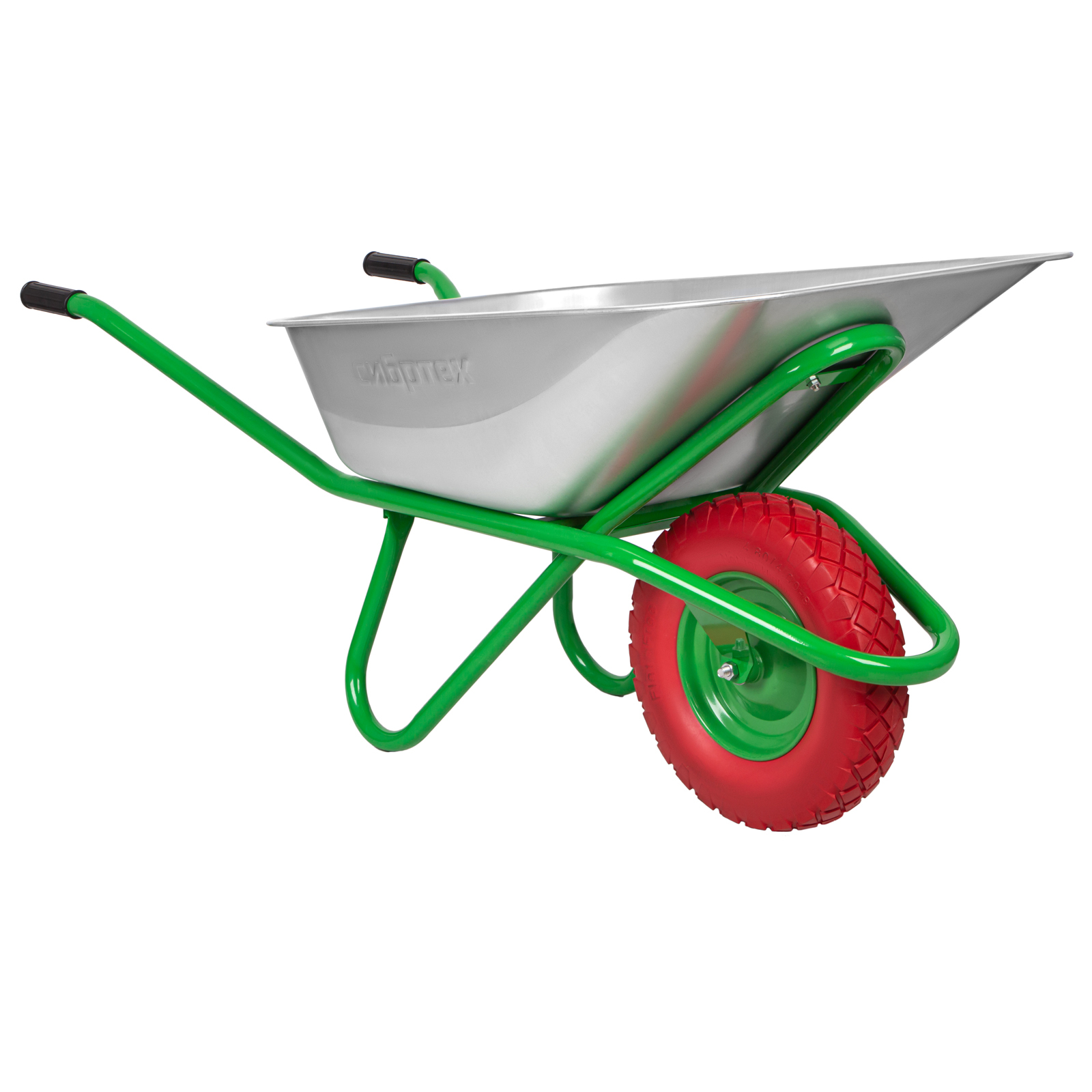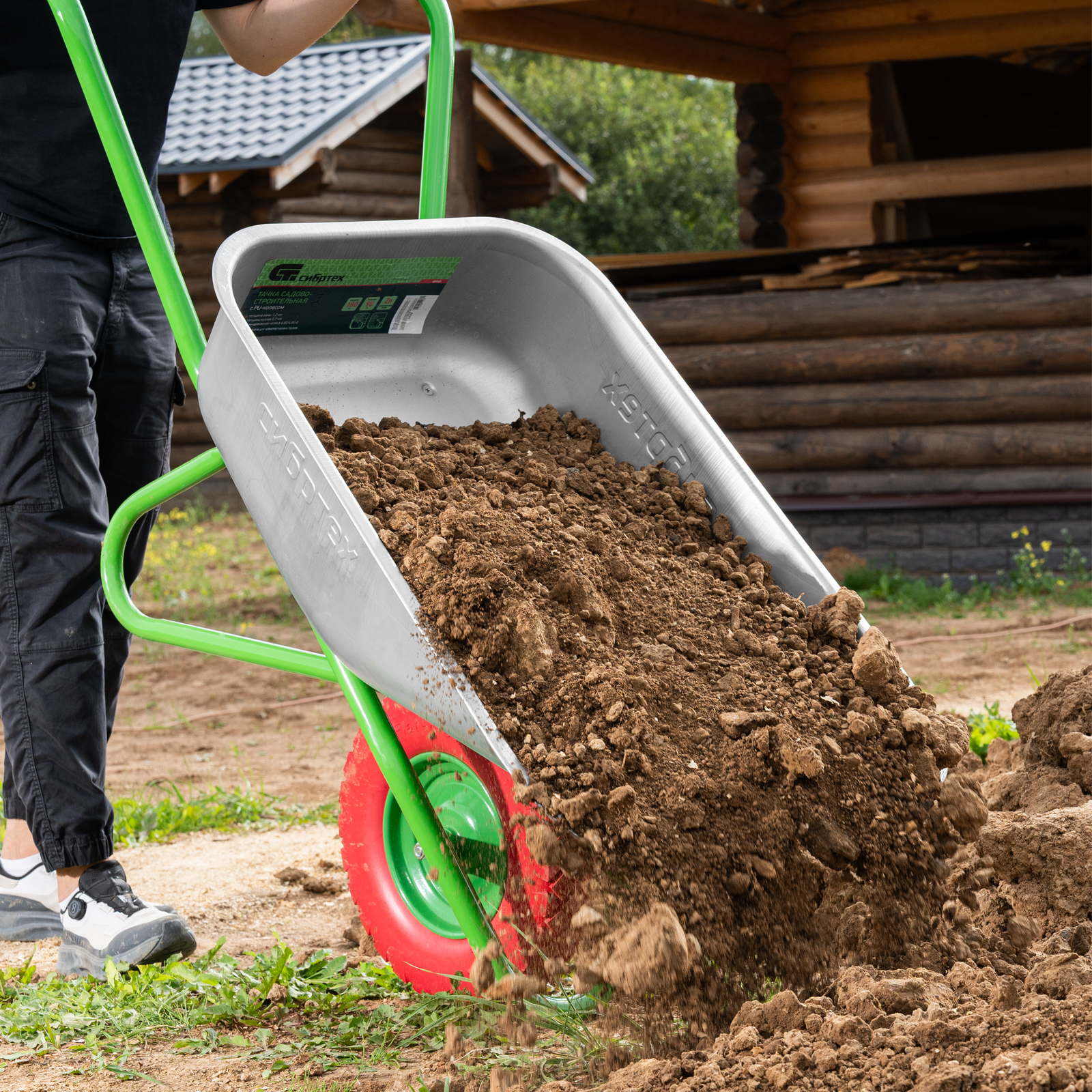 - Хорошая проходимость — колесо с 2 шариковыми подшипниками легко вращается, позволяя перемещать тачку по неровной поверхности.