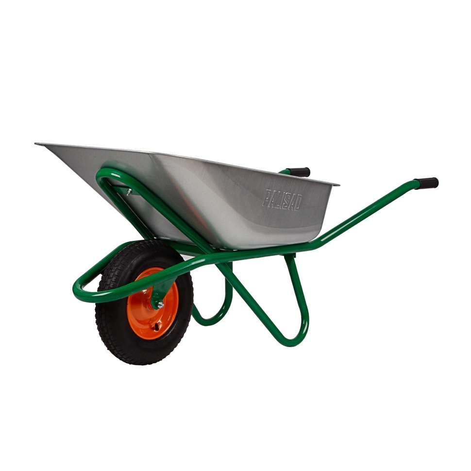 - пневматическое колесо с камерой и резиновой шиной гасит вибрации и обеспечивает плавность хода, что повышает комфортность использования тачки