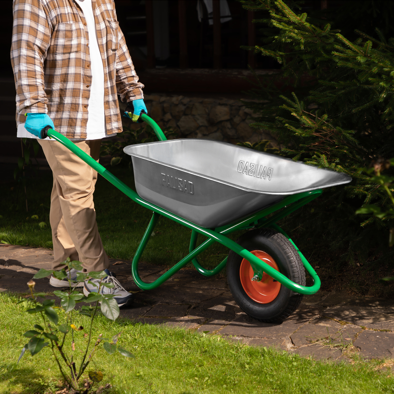 - Хорошая проходимость — колесо с 2 шарикоподшипниками легко вращается, упрощая перемещение тачки по неровной поверхности.