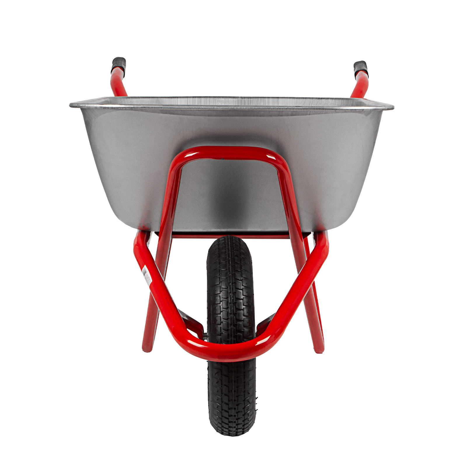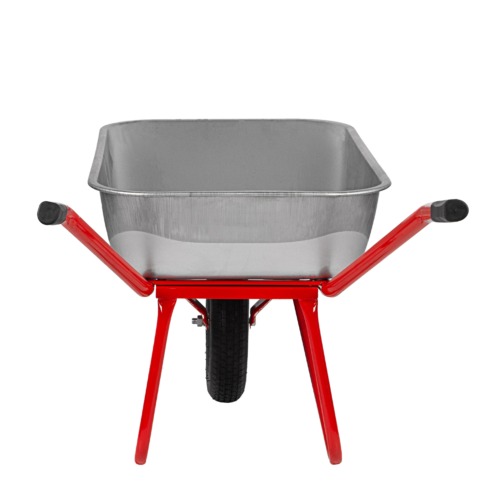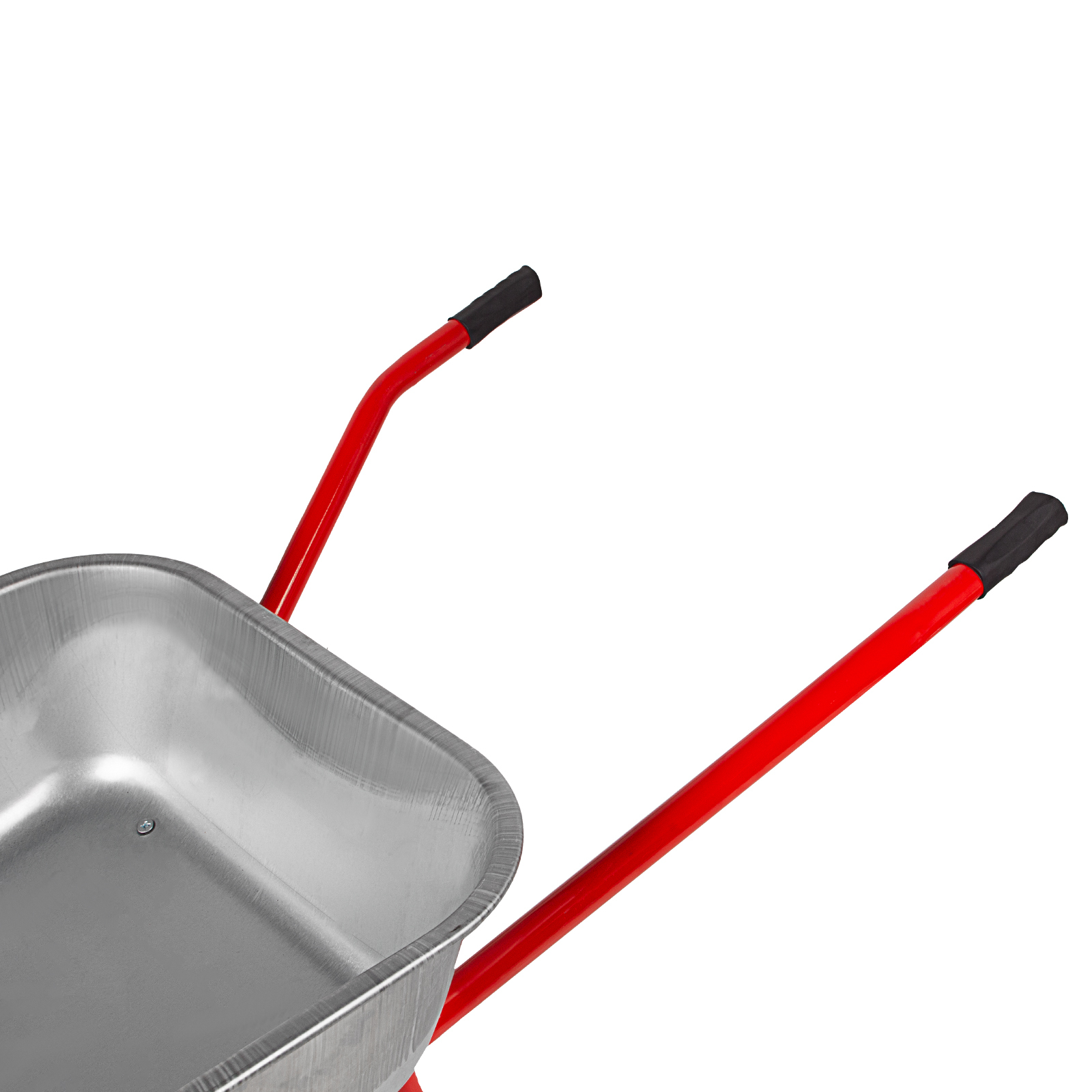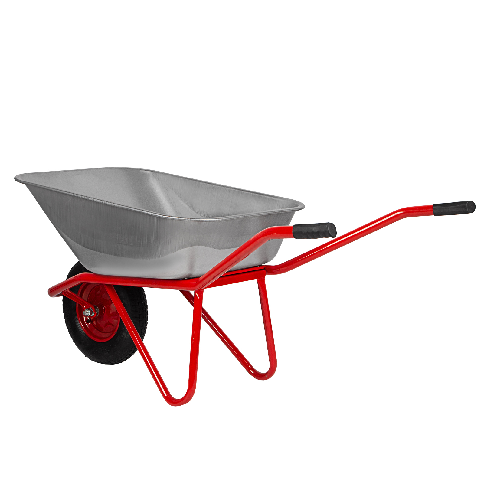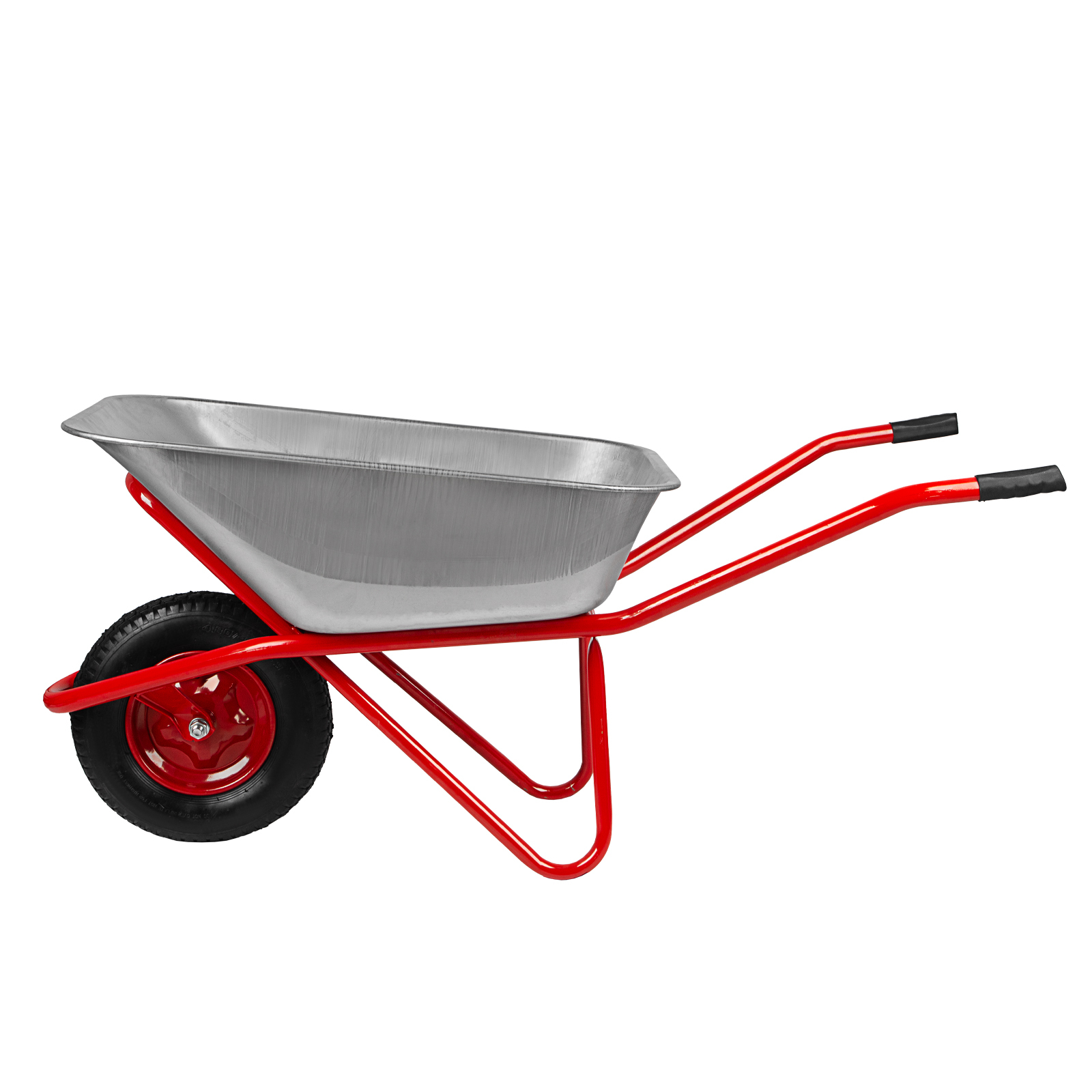 - Надежная конструкция — благодаря кузову с завальцованными бортами и дополнительной опоре рамы тачка выдерживает перевозку тяжелых грузов в интенсивном режиме.