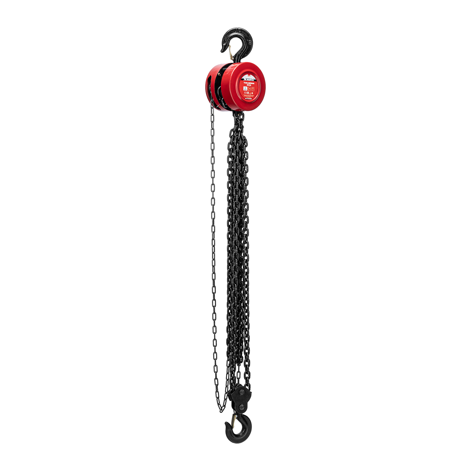 Цепная таль Matrix 519395 с расстоянием между крюками 470 мм позволяет поднимать грузы весом не более 3 т на высоту до 3 м. Простая конструкция облегчает использование. Механизм пригодится для проведения погрузочно-разгрузочных, ремонтных, монтажных работ.