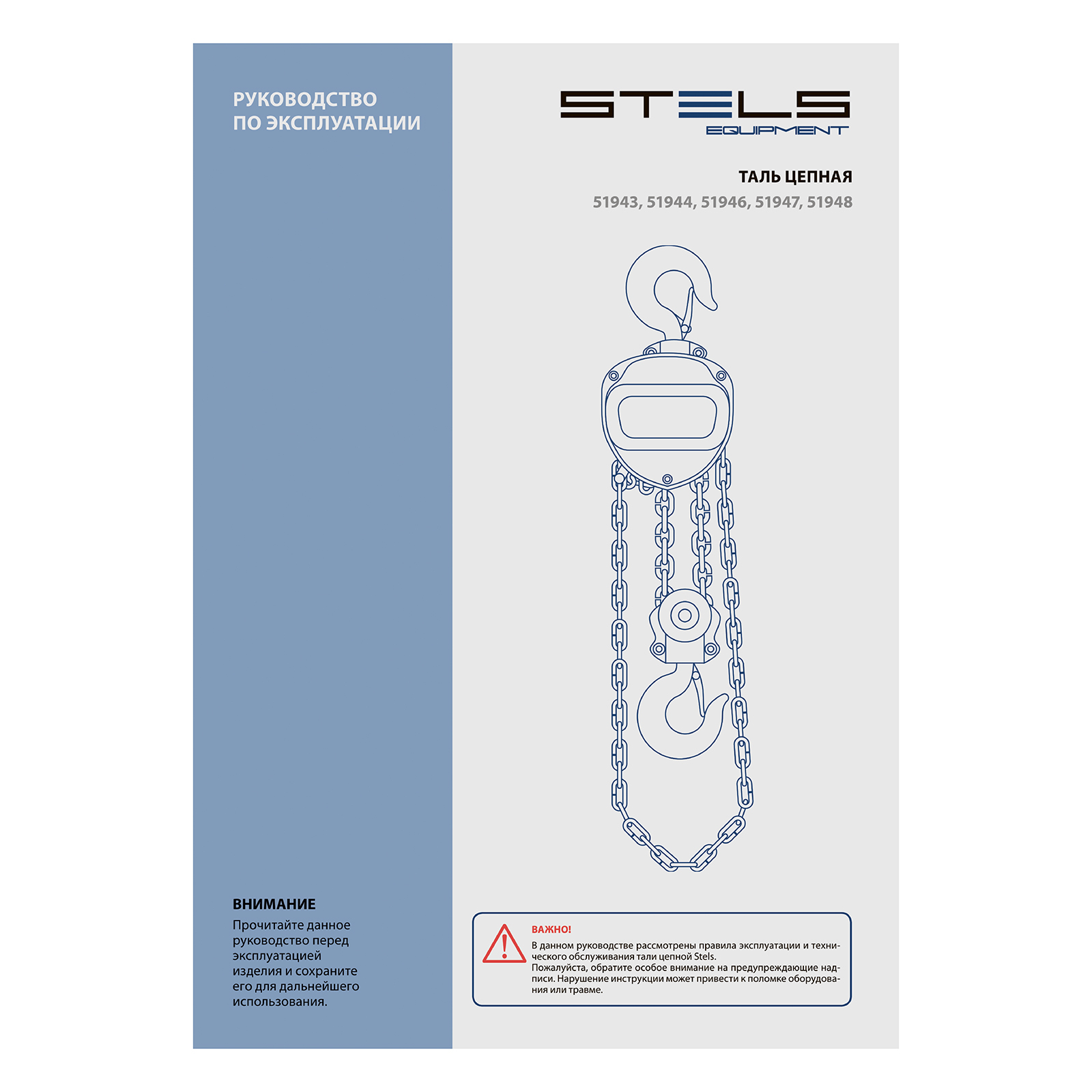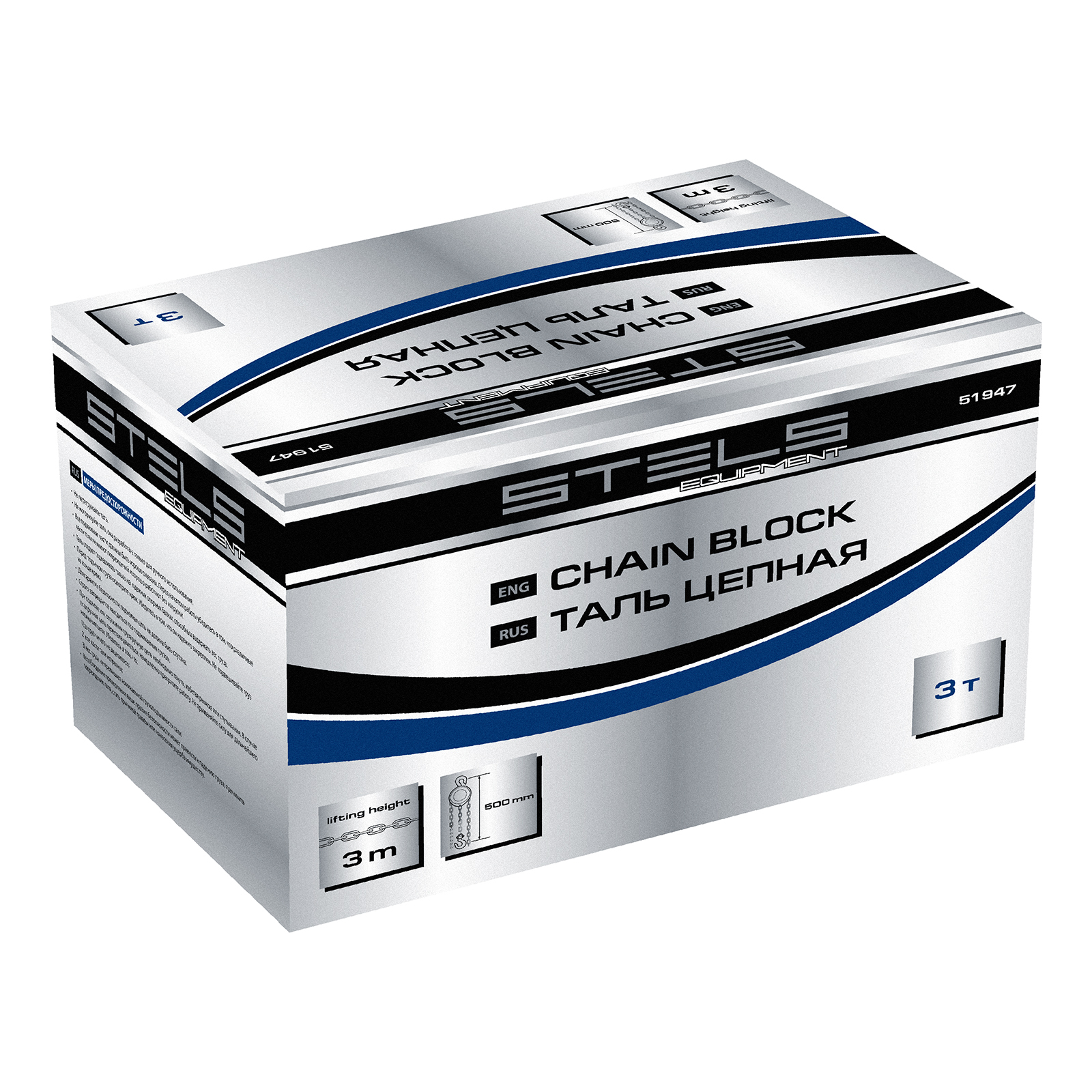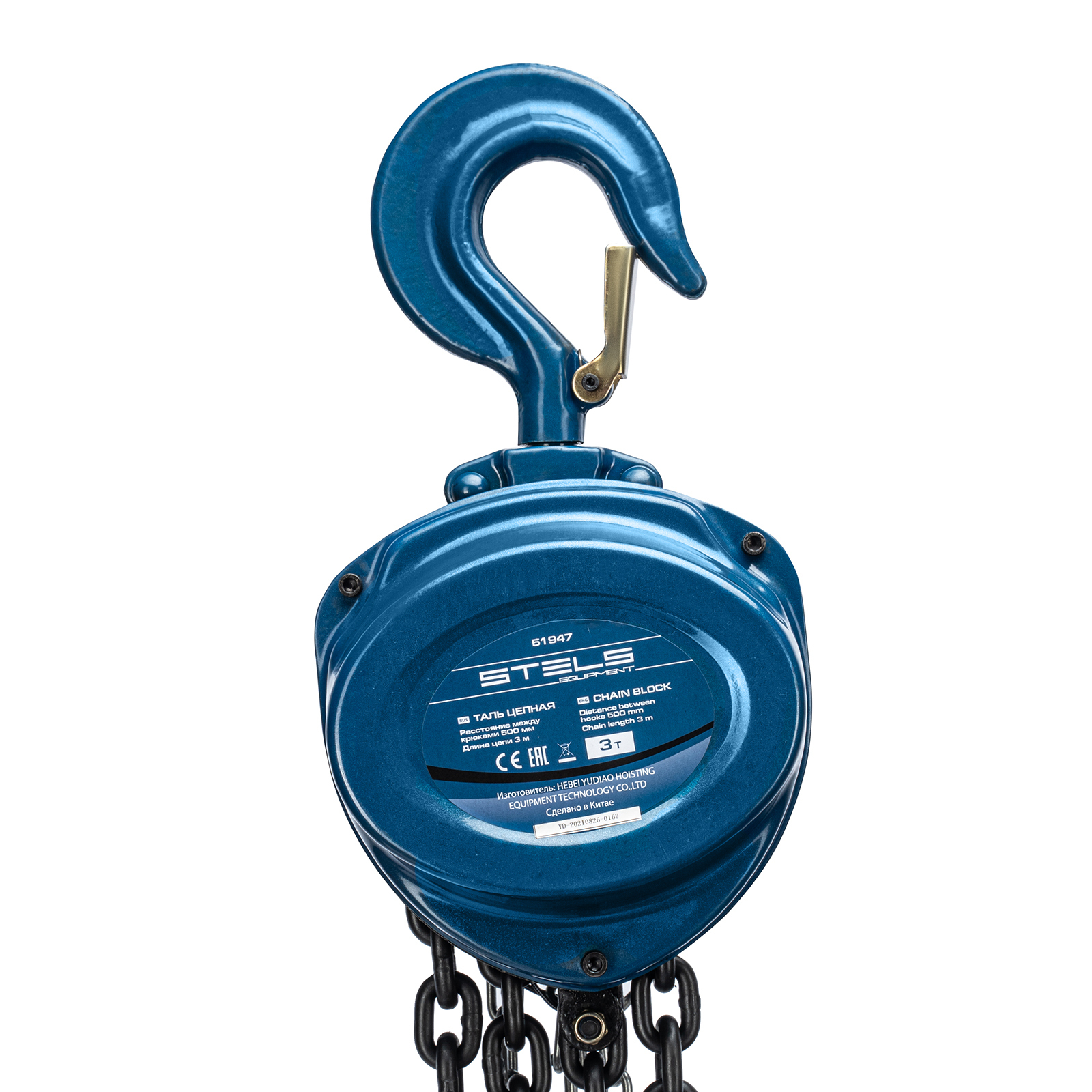 <p>Цепная таль Stels 51947 с расстоянием между крюками 500 мм способна поднимать грузы весом не более 3 т на высоту до 3 м. Устройство с оптимальным передаточным числом не требует больших усилий от пользователя. Таль пригодится для проведения погрузочно-разгрузочных работ на производстве, стройке, складе, в цехе, автосервисе и т.д.</p><h2>Преимущества</h2><ul><li>Автономность — изделие не требует подключения к источнику электропитания.</li><li>Прочность — таль выполнена из высококачественной углеродистой стали, грузовая цепь — из закаленной инструментальной стали.</li><li>Безопасность — тормозной механизм препятствует самопроизвольному опусканию груза.</li><li>Простая конструкция — устройство состоит из крюковой подвески и блока с подъемной и замкнутой управляющей цепями.</li><li>Надежная фиксация груза — крюки оснащены коваными предохранительными защелками.</li></ul>