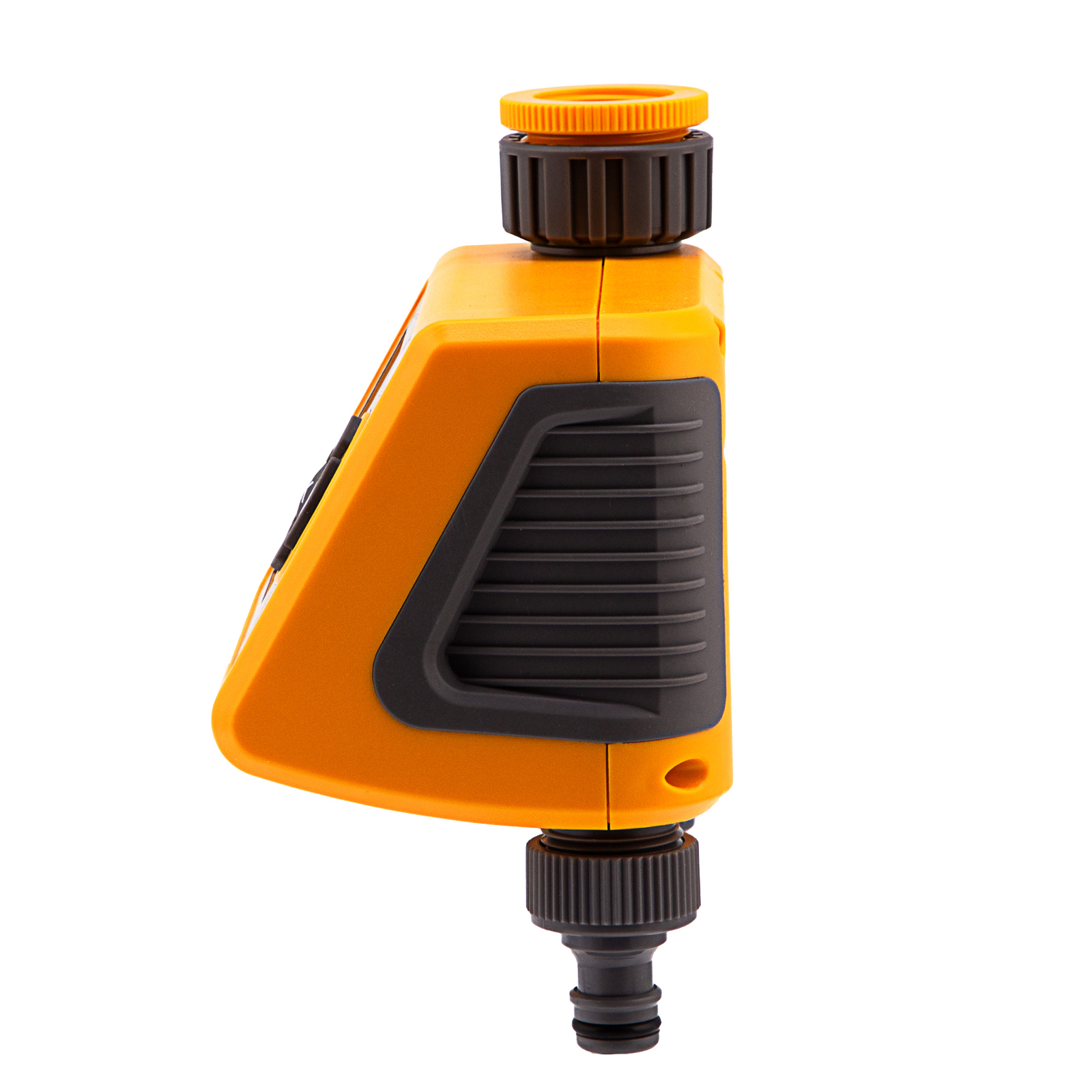 Электронный таймер Palisad LUXE 66199, можно одновременно подключить к двум водозаборным линиям для повышения эффективности полива. В его системе предусмотрено 12 программ для возможности выбора оптимальной в зависимости от растений. Таймер позволяет полностью автоматизировать систему полива, включая и отключая воду в течение нескольких дней, поэтому пригодится дачникам, которые не могут часто бывать на участке.