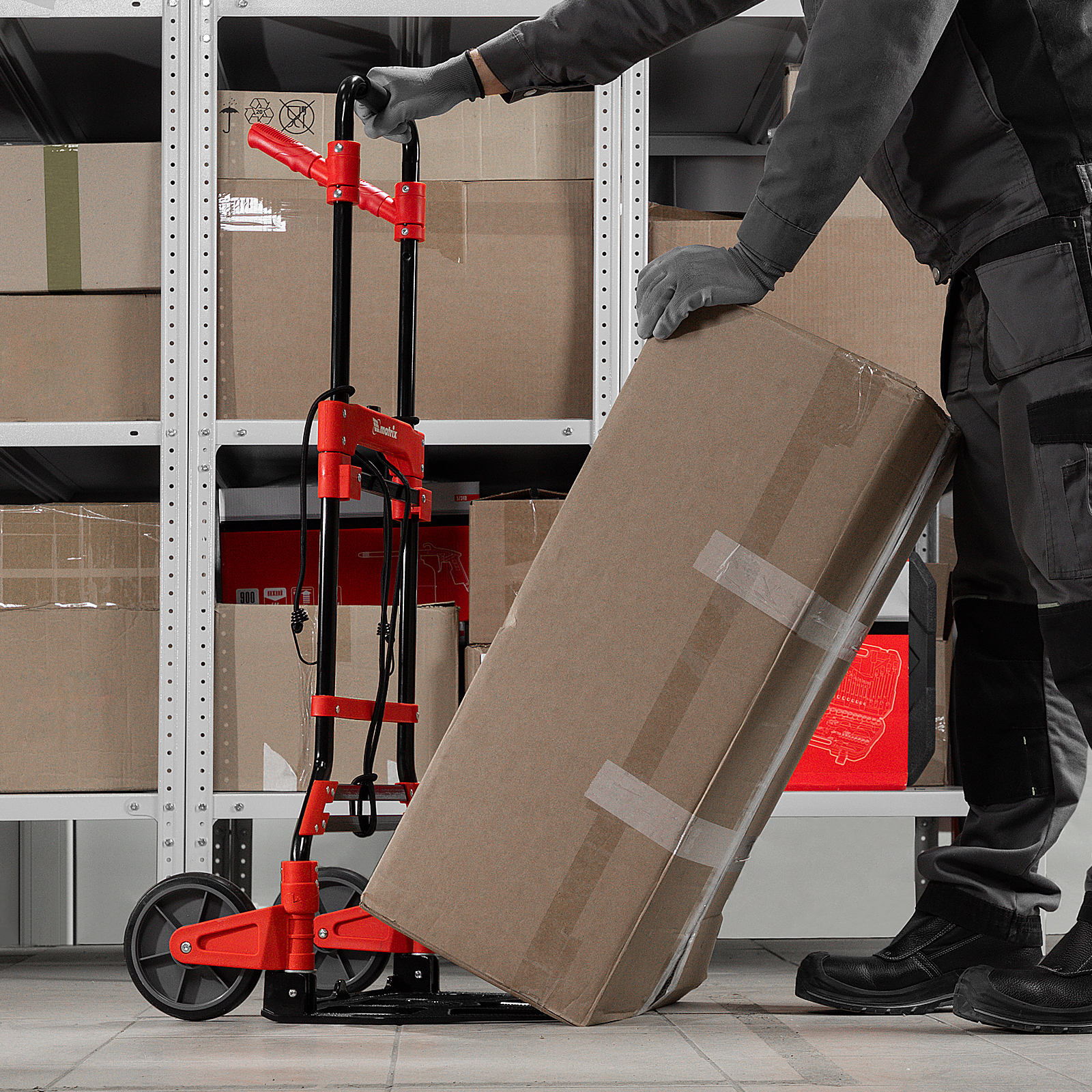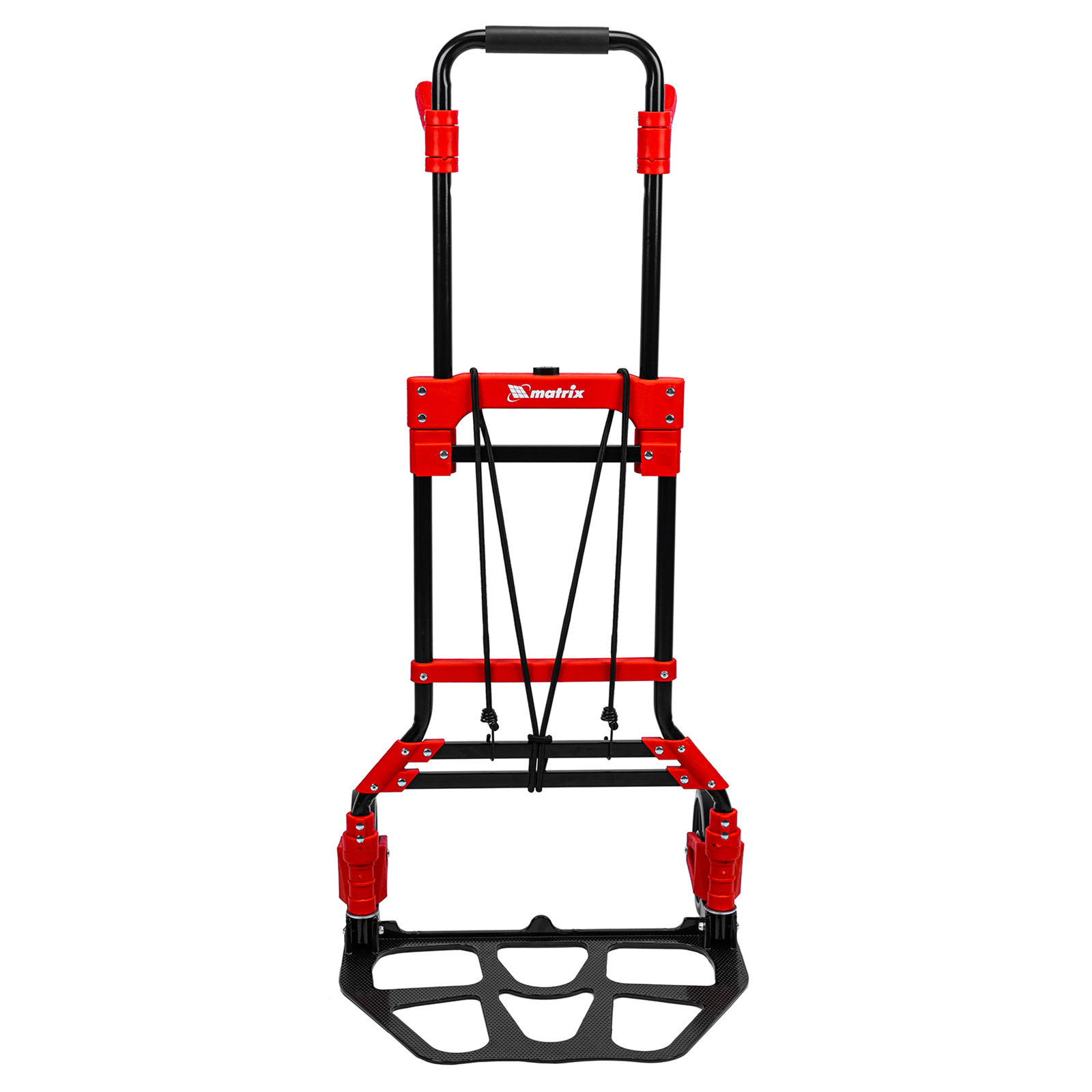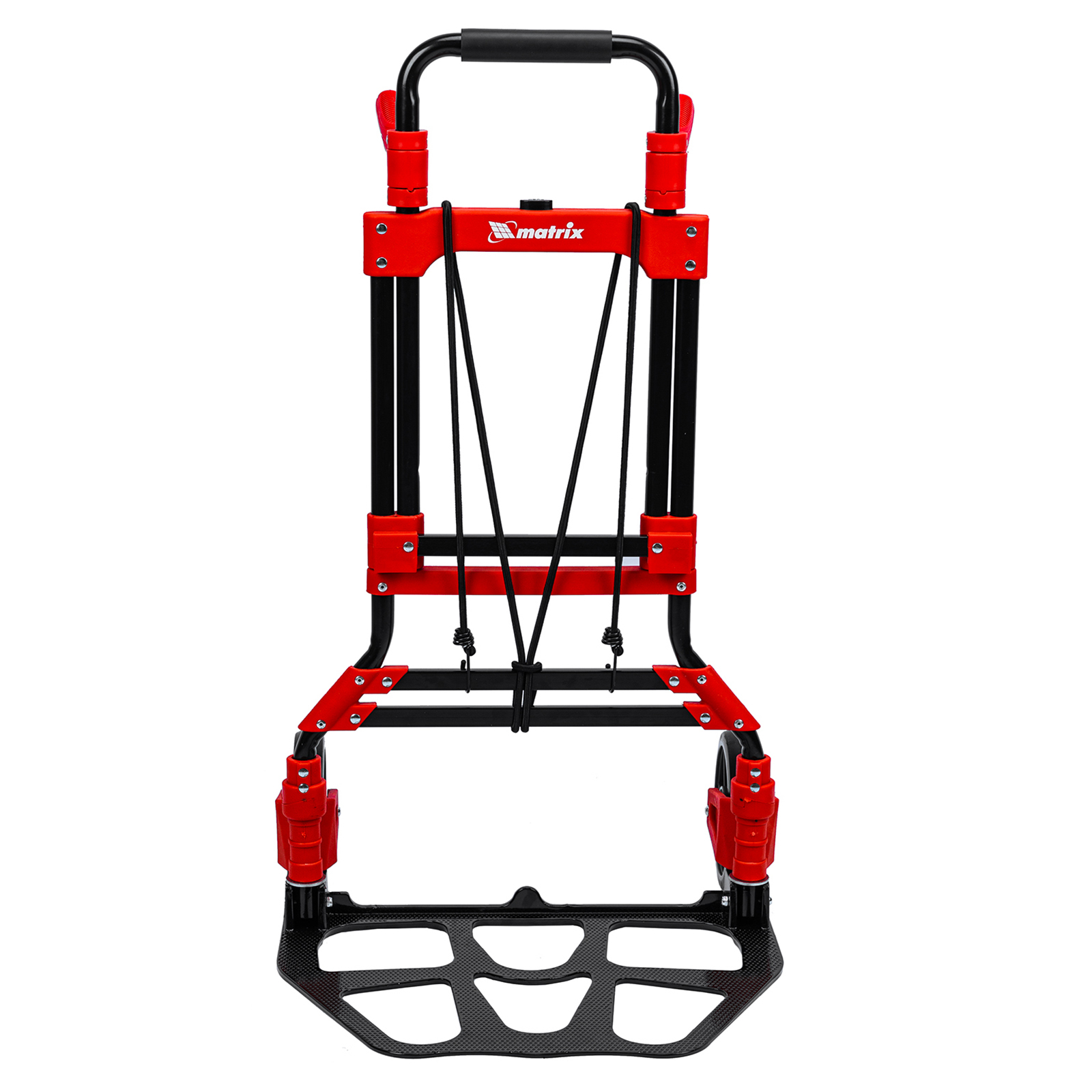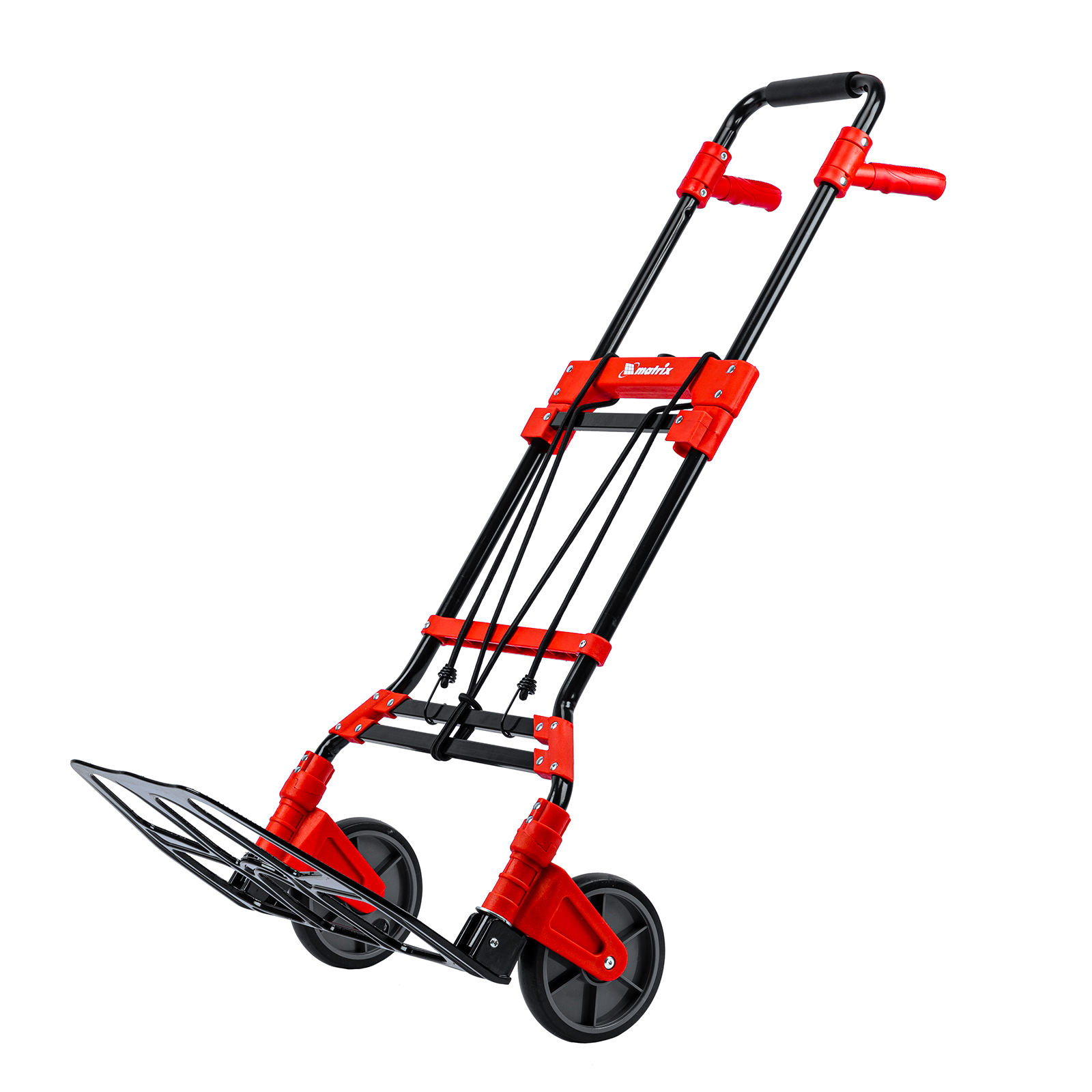 <p>Складная хозяйственная 2-колесная тележка Matrix 98208 предназначена для перемещения грузов массой до 150 кг. Телескопическая рукоятка позволяет регулировать высоту тележки в соответствии с ростом пользователя. Для размещения груза предусмотрена платформа размером 485 x 350 мм.</p><h2>Преимущества</h2><ul><li>Надежное размещение груза — крепкие багажные резинки прочно фиксируют его на платформе.</li><li>Прочная конструкция — стальная рама выдерживает высокие нагрузки без риска деформации.</li><li>Максимально удобная эксплуатация — дополнительные рукоятки облегчают транспортировку груза.</li><li>Удобное хранение и транспортировка — платформа и колеса складываются, поэтому тележка не занимает много места.</li></ul>