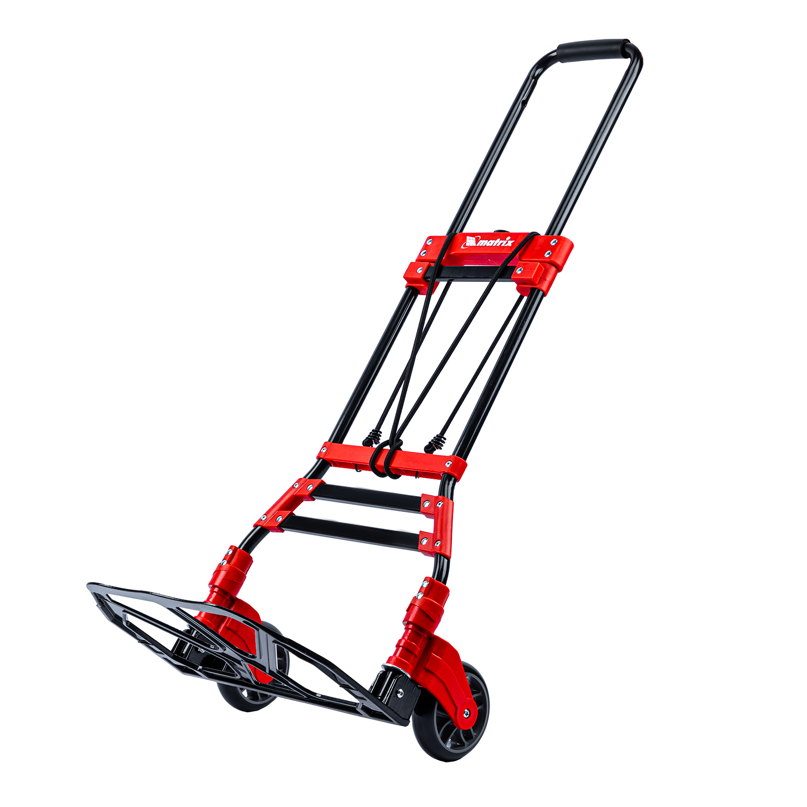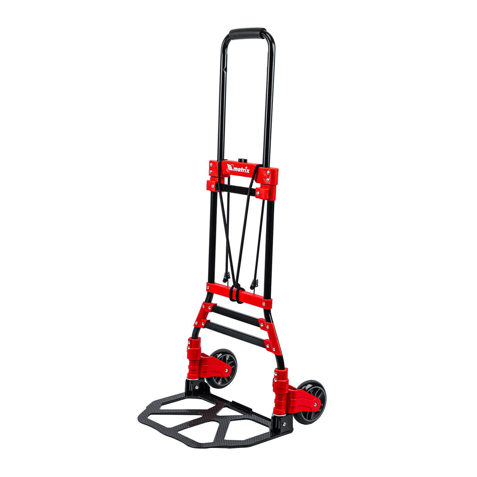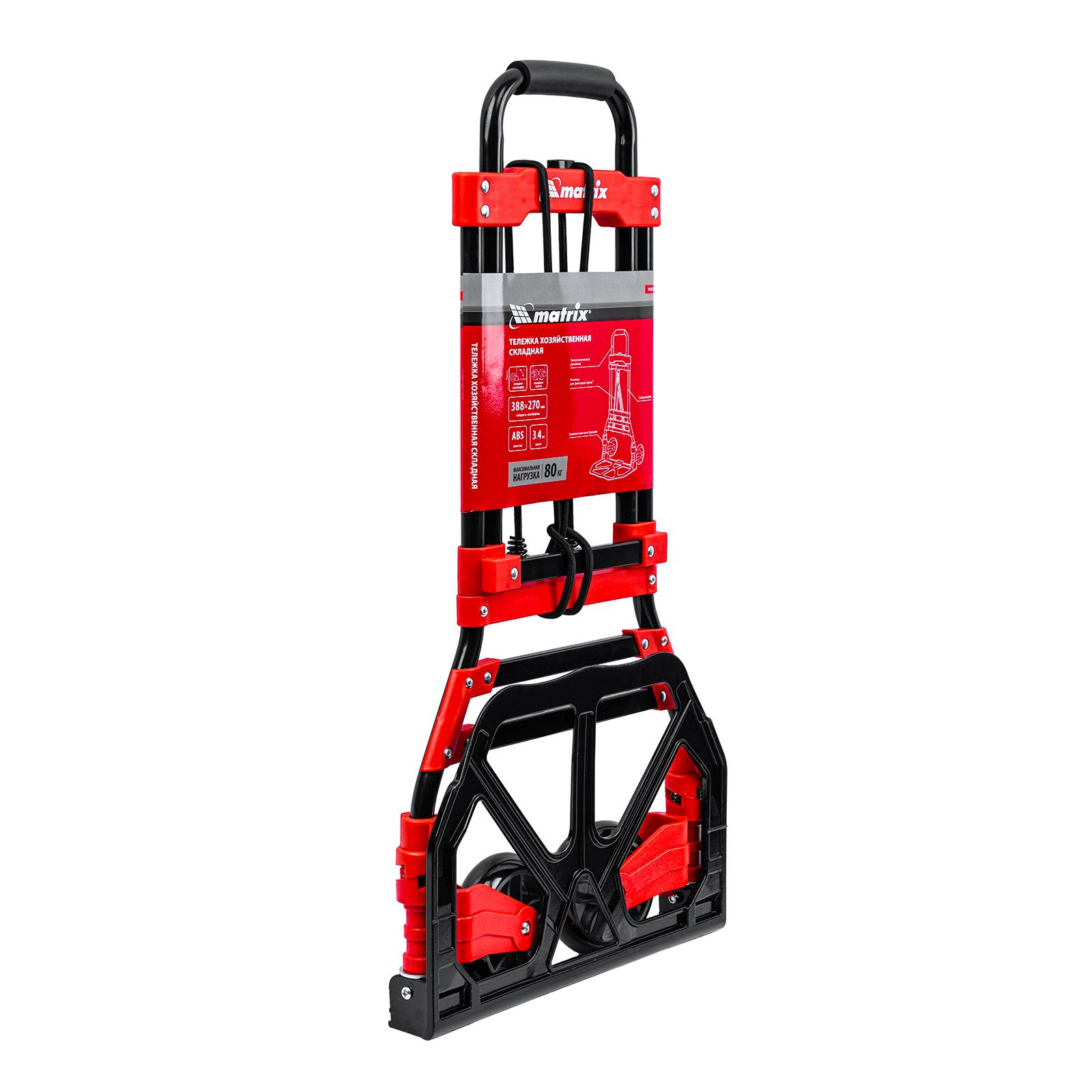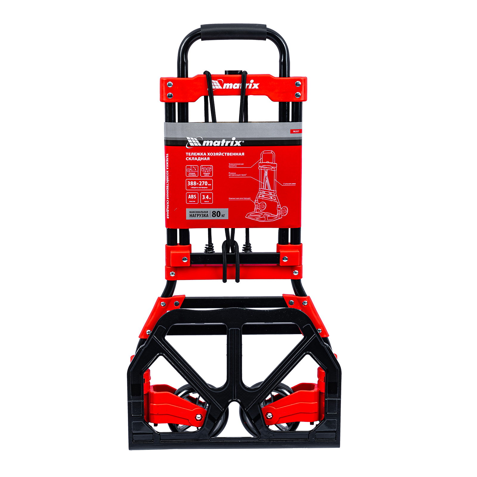 <p>Складная хозяйственная 2-колесная тележка Matrix 98207 со стальной рамой предназначена для перемещения грузов массой до 80 кг. Телескопическая рукоятка позволяет регулировать высоту тележки в соответствии с ростом пользователя. Для размещения груза предусмотрена платформа размером 388 x 270 мм.</p><h2>Преимущества</h2><ul><li>Надежное размещение груза — крепкие багажные резинки прочно фиксируют его на платформе.</li><li>Прочная конструкция — стальная рама выдерживает высокие нагрузки без риска деформации.</li><li>Удобное хранение и транспортировка — платформа и колеса складываются, поэтому тележка не занимает много места.</li></ul>
