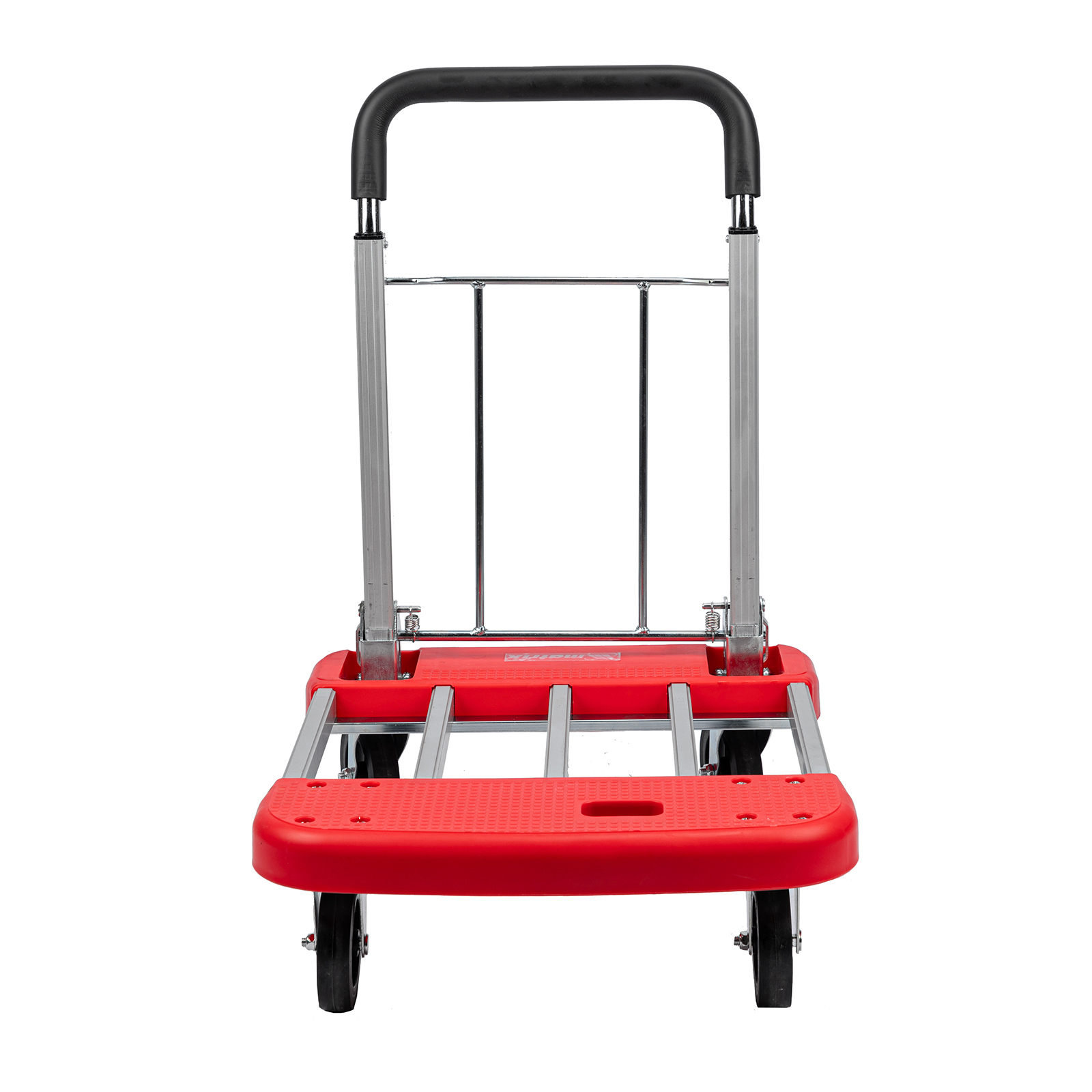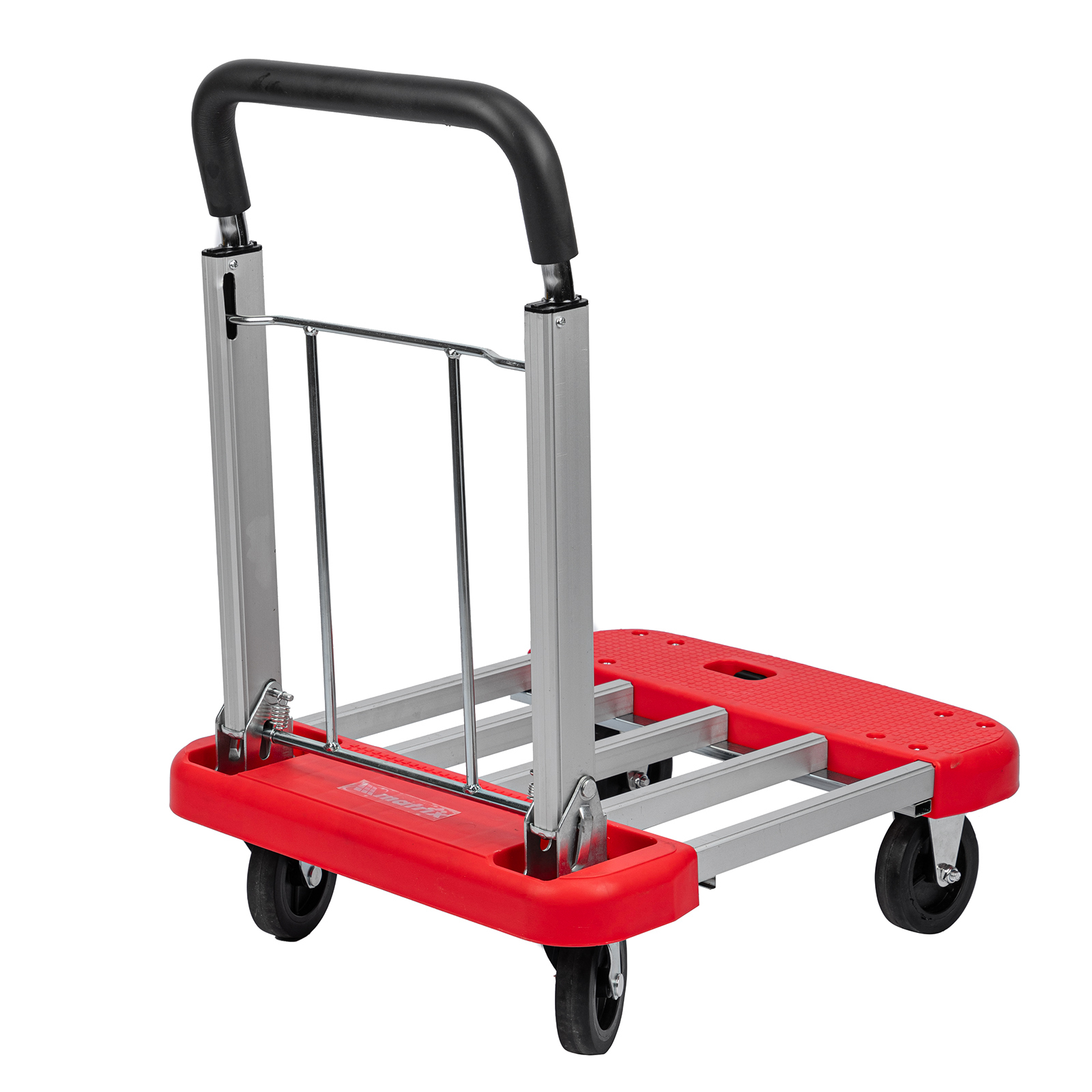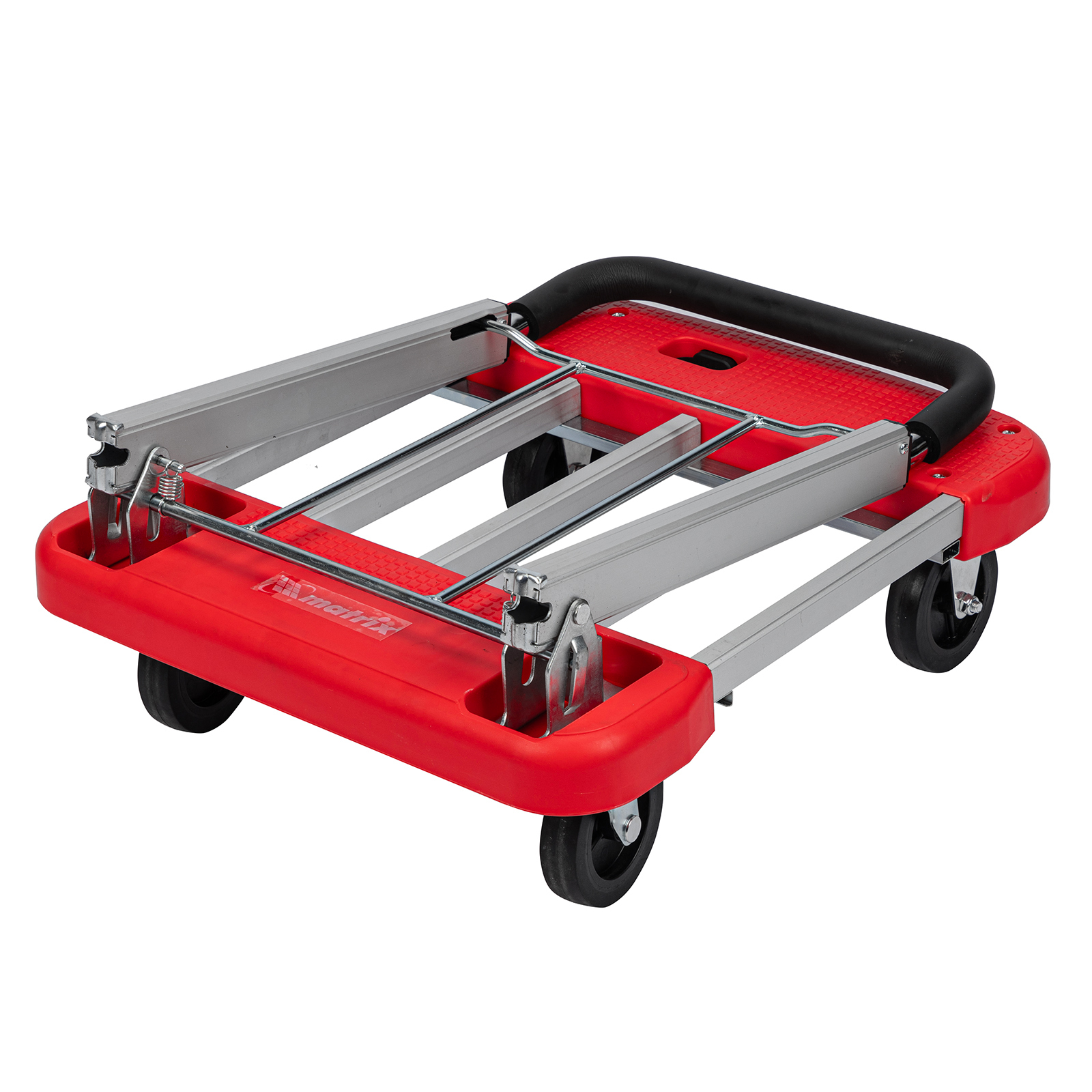 <p>Хозяйственная тележка Matrix 98210 с телескопическими рукояткой и платформой позволяет перемещать грузы массой до 150 кг. Для размещения груза предусмотрена платформа шириной 445 мм. Благодаря раздвижной конструкции длину платформы можно регулировать от 600 до 750 мм в зависимости от габаритов груза.</p><h2>Преимущества</h2><ul><li>Комфортное использование — телескопическая рукоятка с накладкой из вспененного полипропилена обеспечивает удобный захват и позволяет регулировать высоту тележки в соответствии с ростом пользователя.</li><li>Долговечность — алюминиевые рама и платформа выдерживают высокие нагрузки и устойчивы к образованию коррозии.</li><li>Легкое перемещение грузов — поворотные колеса обеспечивают повышенную маневренность.</li><li>Удобное хранение и транспортировка — благодаря телескопической платформе тележка не занимает много места.</li></ul>