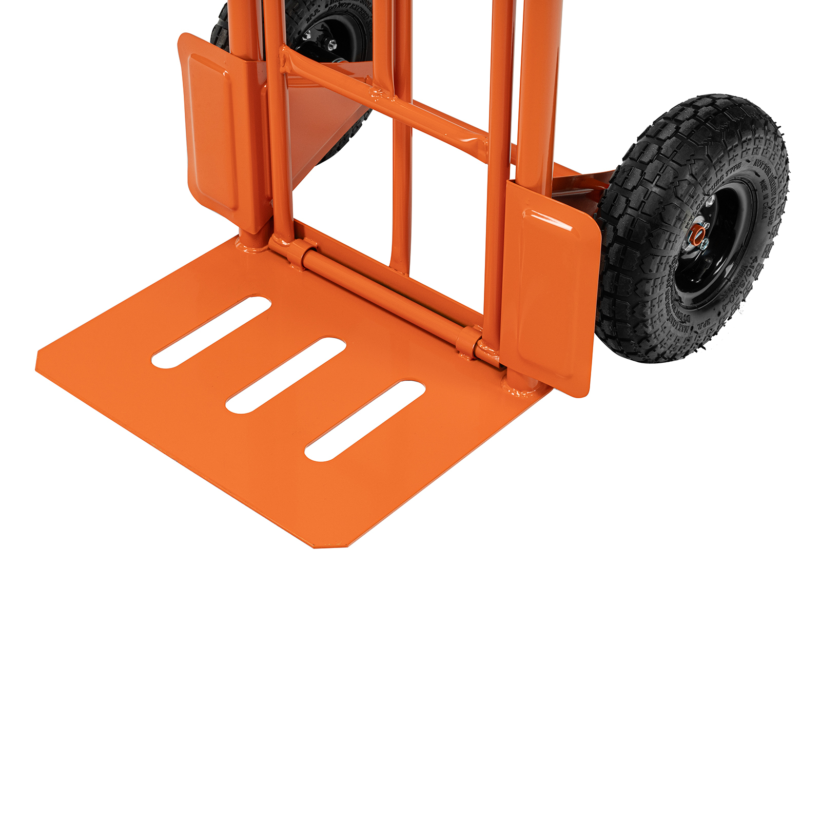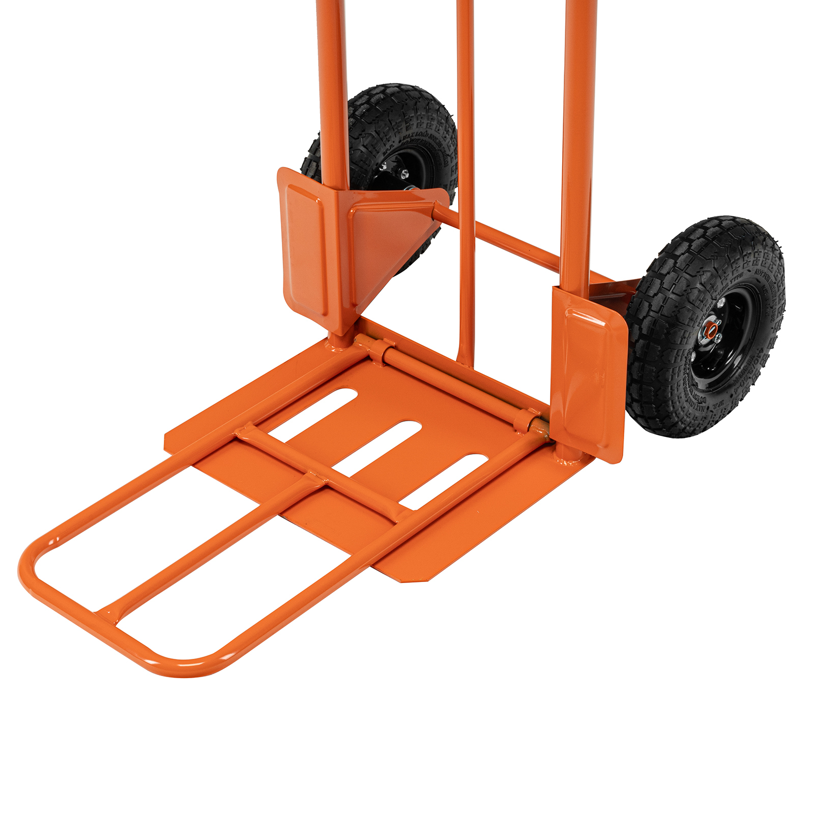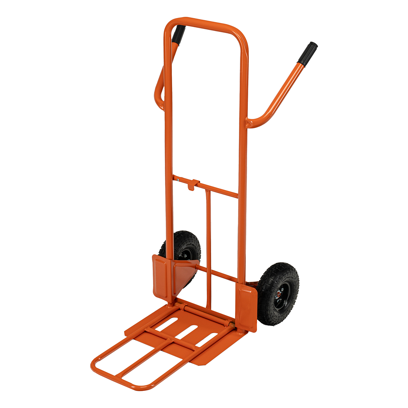 - Дополнительные возможности — откидная платформа позволяет разместить на тележке груз с увеличенными габаритами.