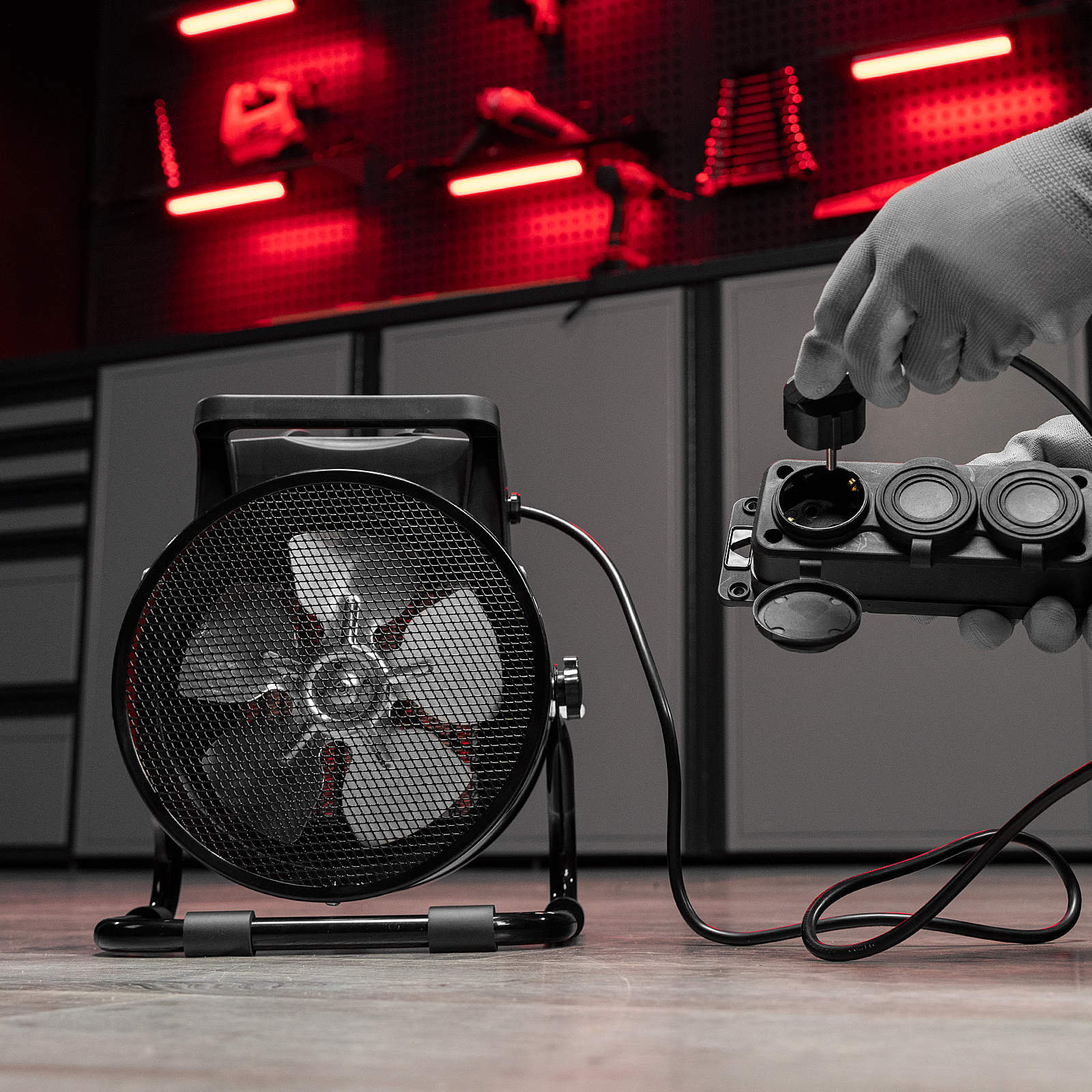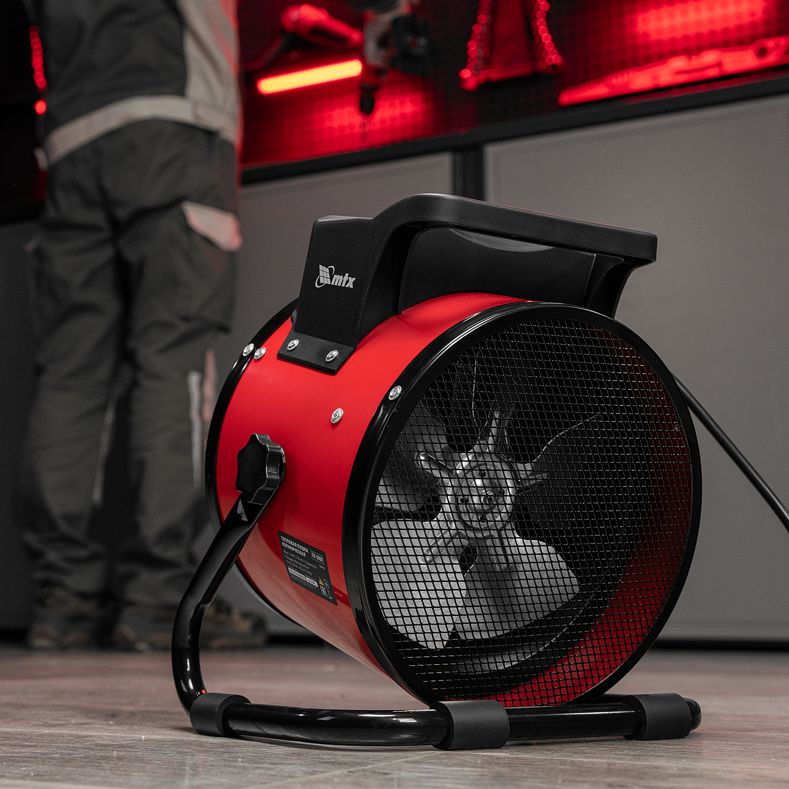 - Эргономичность — компактная тепловая пушка весит 2,3 кг, удобная рукоятка упрощает перемещение.