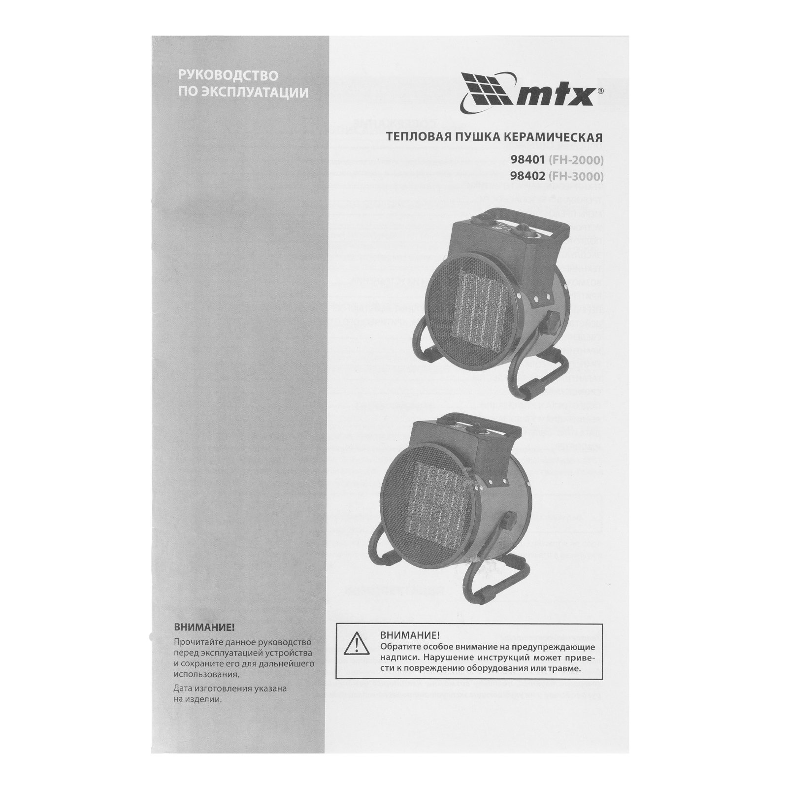 Тепловая пушка - 1 штРуководство по эксплуатации с гарантийным талоном - 1 шт