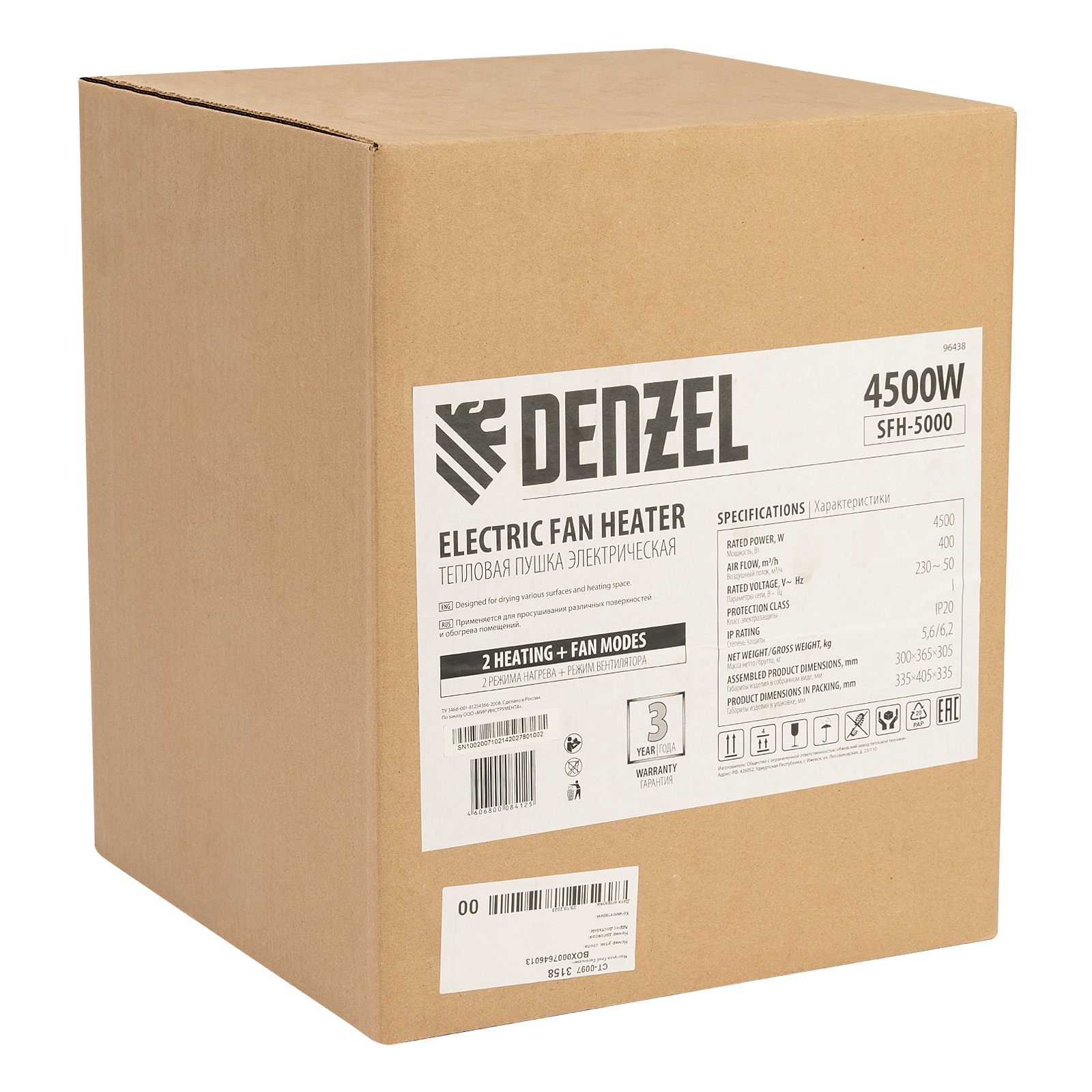 Тепловая пушка SFH-5000, 230 В, 260 м3/ч, вентилятор 3 режима, 3000/4500 Вт Denzel