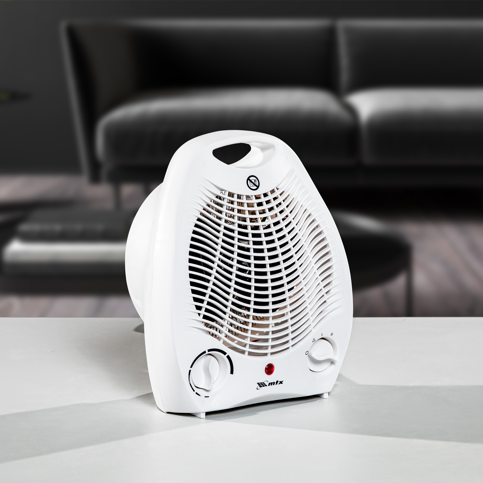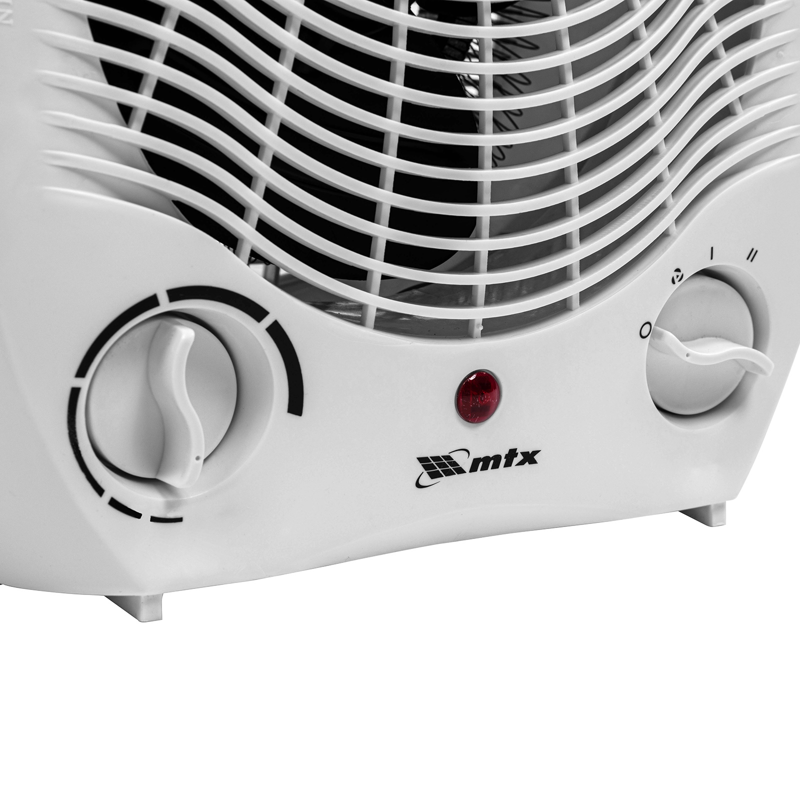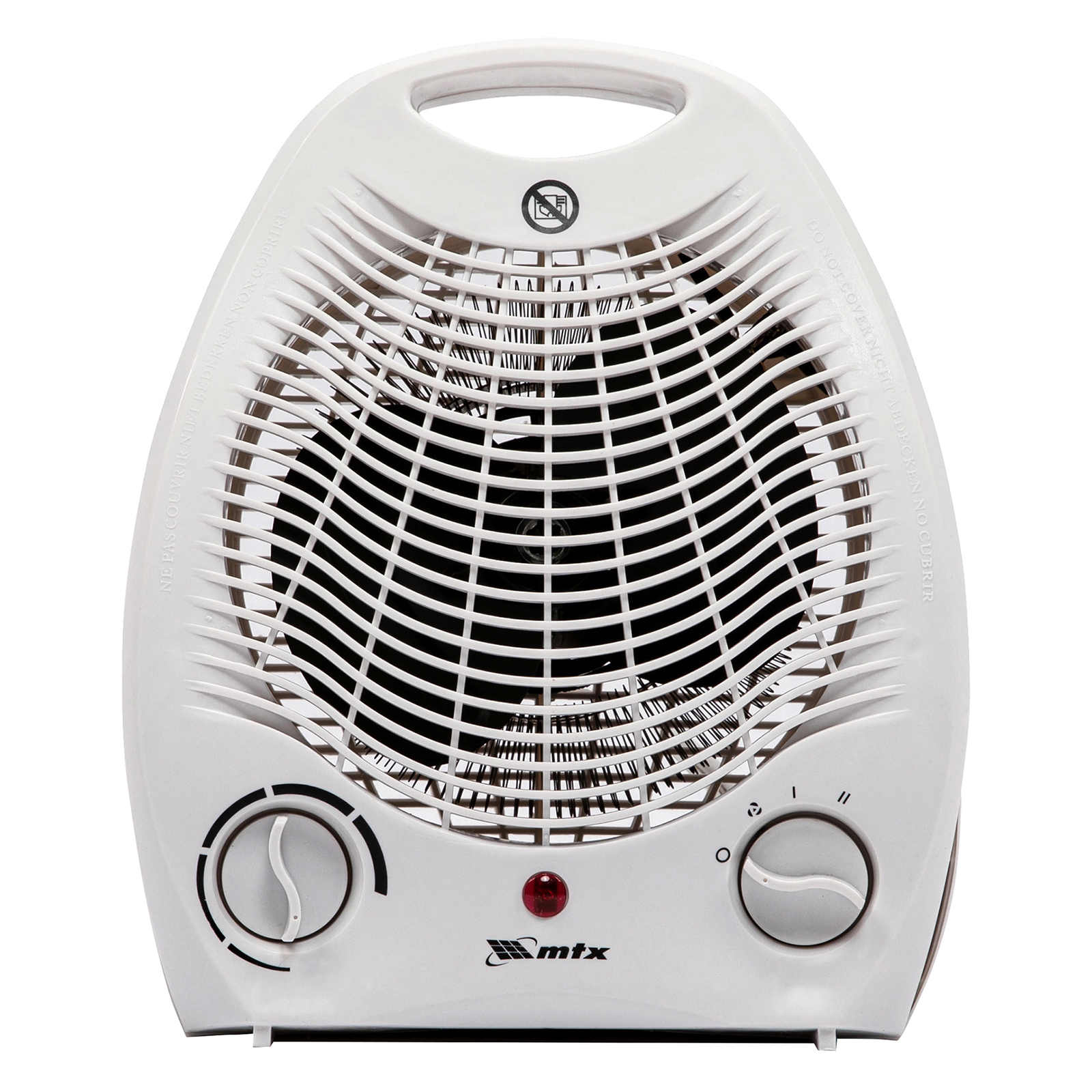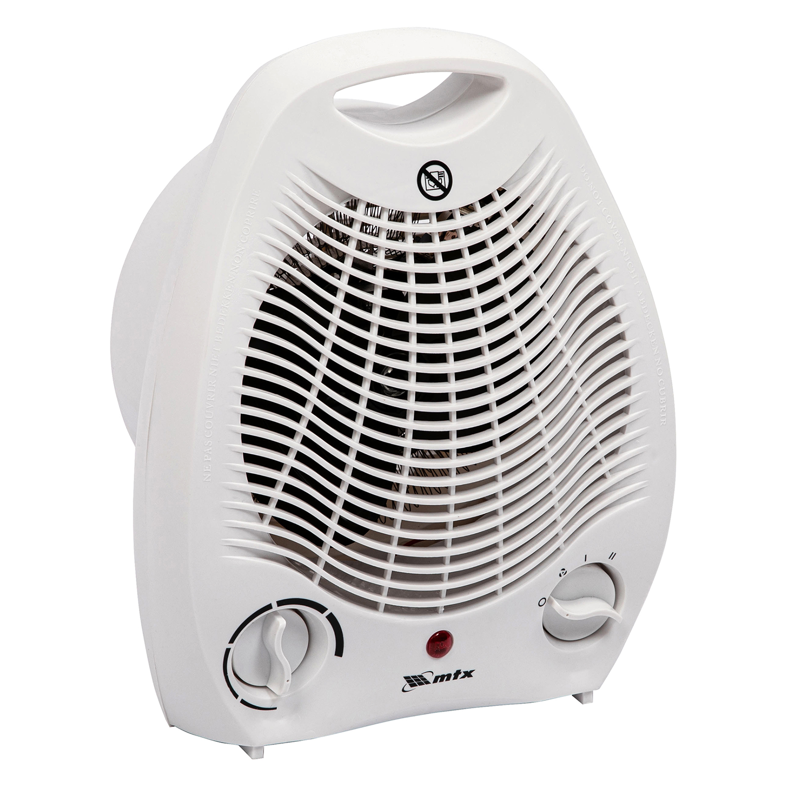 Электрический тепловентилятор MTX FHS-2000 96413 мощностью 1000/2000 Вт, с нагревателем спирального типа и вентилятором, имеет 3 режима работы и используется для обогрева комнат площадью до 20 кв. м в квартире или на даче. Его можно применять для поддержания необходимой температуры в помещении в холодную погоду, а также для вентиляции в жару. Устройство устанавливают на полу или на столе, управление осуществляется при помощи 2 механических переключателей.