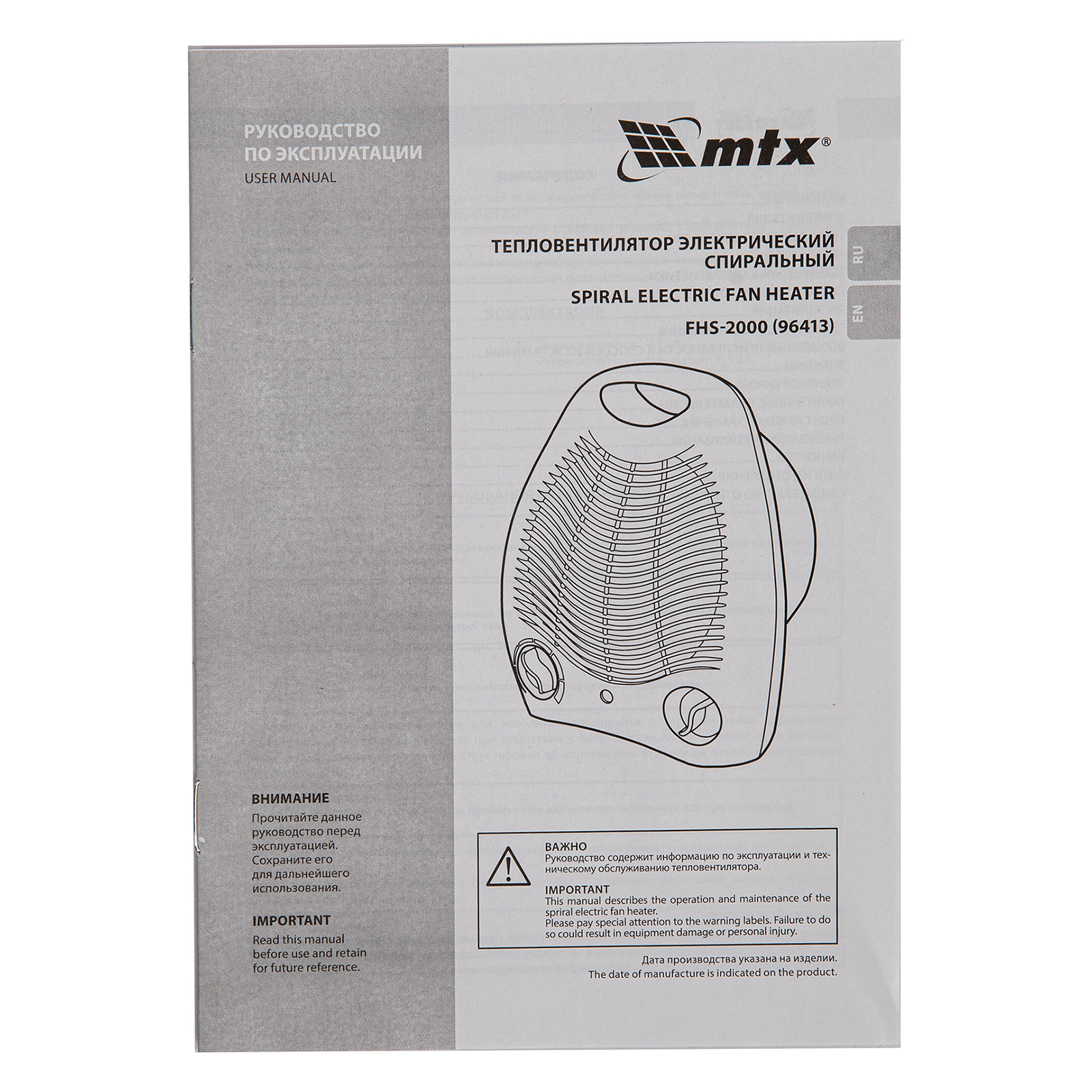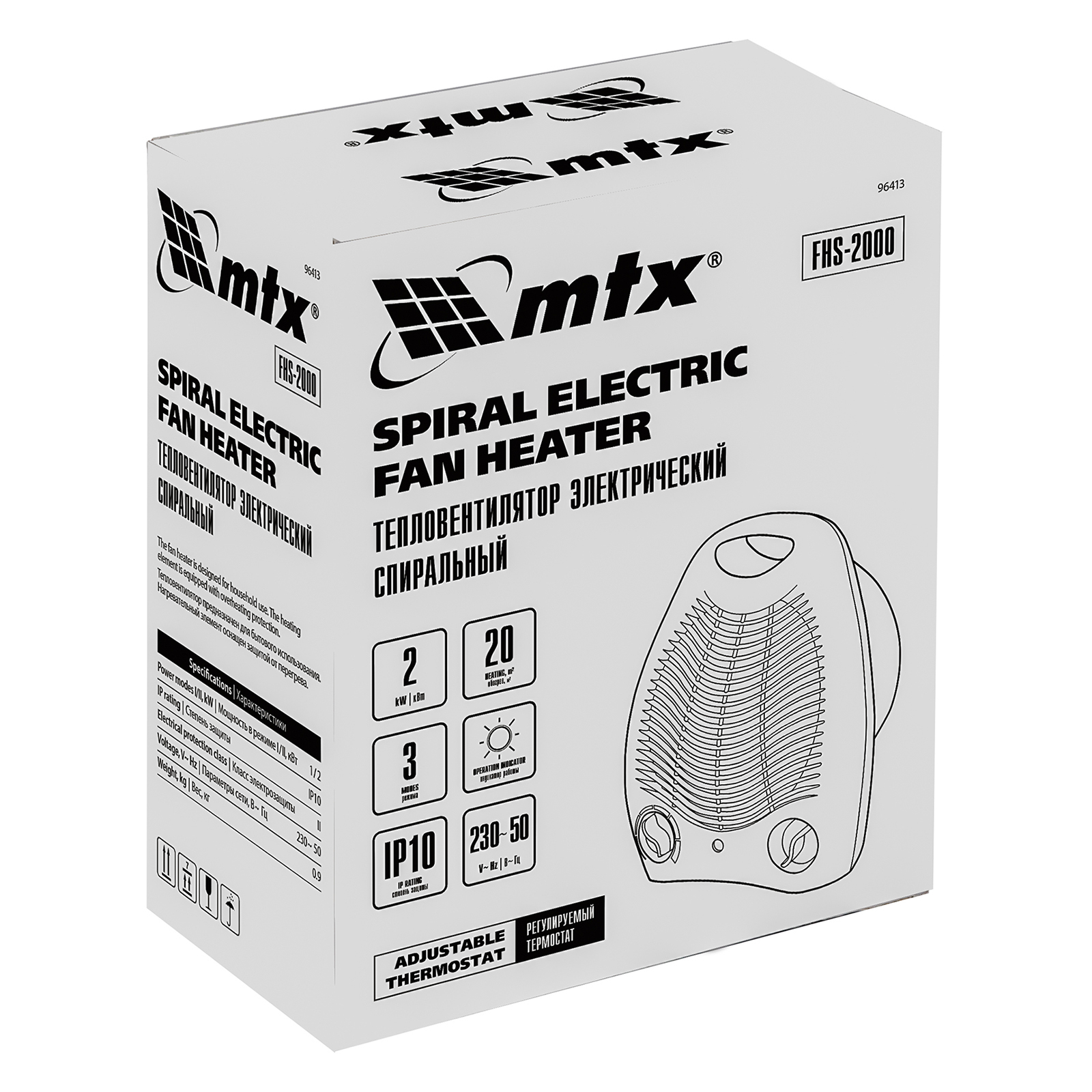 Тепловентилятор электрический, спиральный FHS-2000, 3 режима, вентилятор, нагрев 1000/2000 Вт MTX