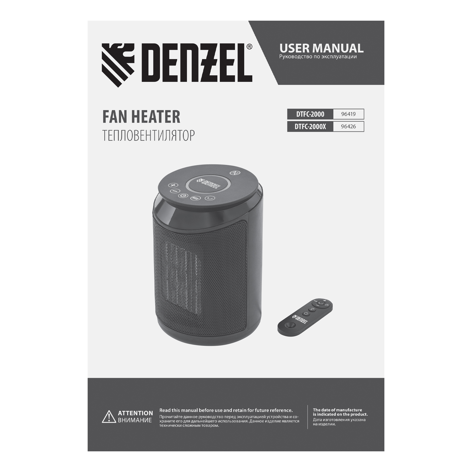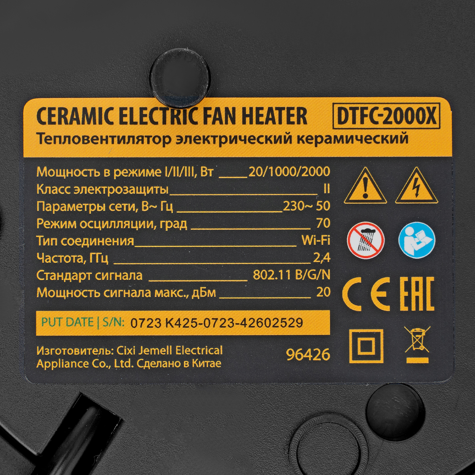 Тепловентилятор керамический DTFC-2000X, 2 кВт, wi-fi, пульт, динамик, вращение, 3 реж. Denzel