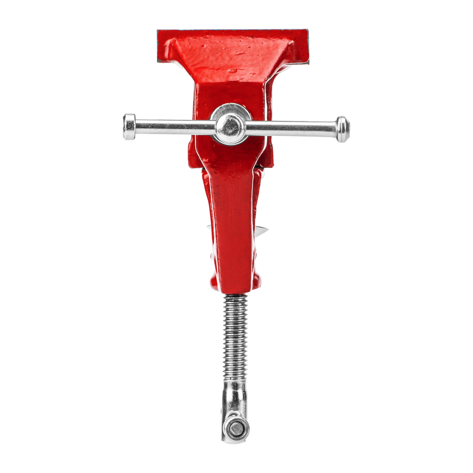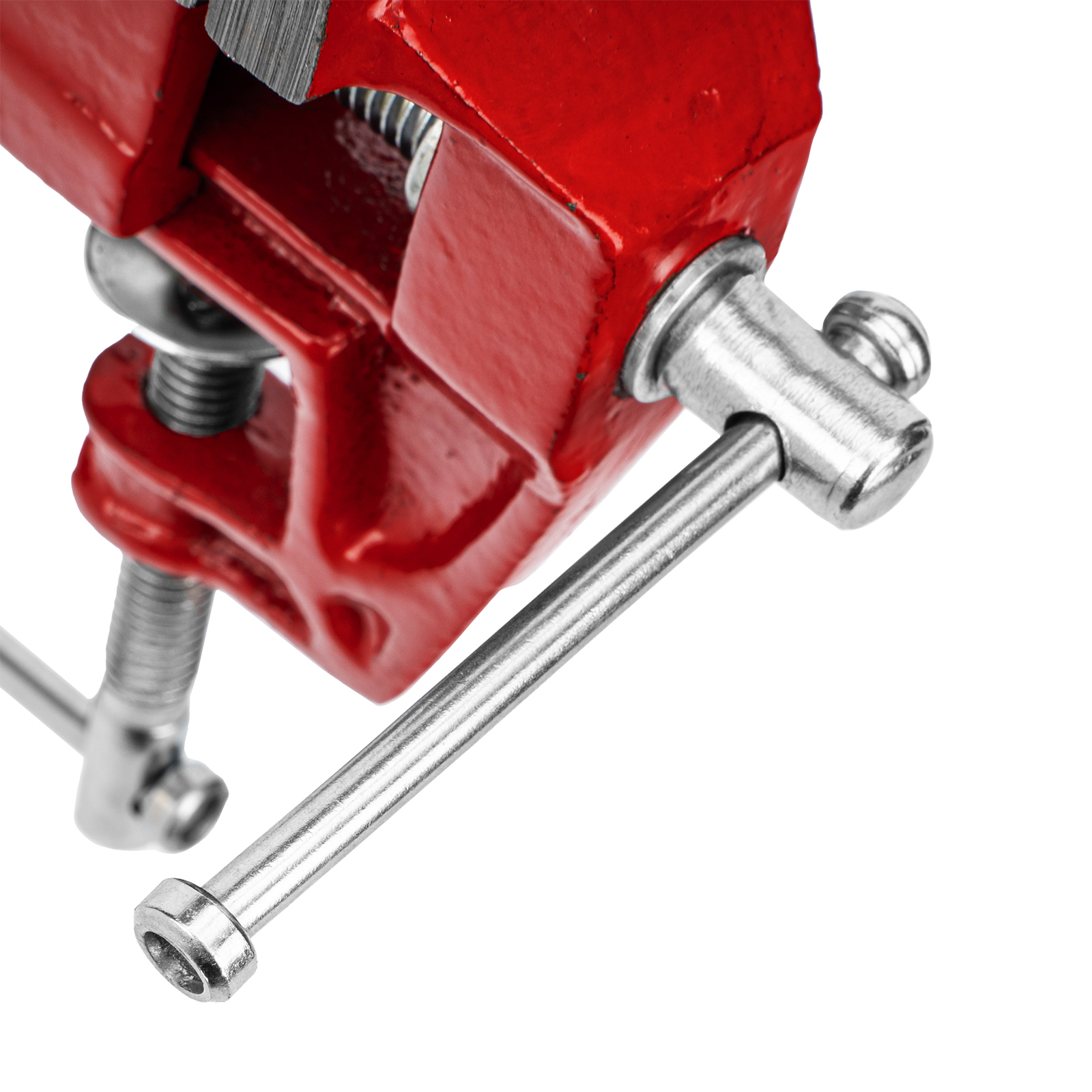 - Простое использование — винтовой зажимной механизм позволяет легко устанавливать и снимать тиски с рабочего стола.