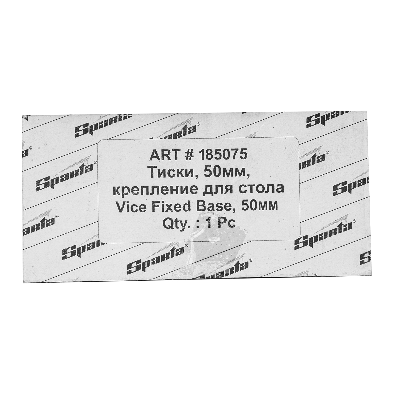 <p>Тиски Sparta 185075 с губками шириной 50 мм и креплением для стола позволяют надежно зафиксировать небольшие деревянные детали. Пригодятся во время столярных и слесарных работ в мастерской или гараже. Рабочий ход губок составляет 35 мм, что позволяет зажимать и удерживать небольшие предметы.</p><h2>Преимущества</h2><ul><li>Прочность и долговечность — инструмент выполнен из чугуна, эмалевое покрытие защищает его от коррозии.</li><li>Простое использование — винтовой зажимной механизм позволяет легко устанавливать и снимать тиски с рабочего стола.</li><li>Вес 680 г — тиски удобно транспортировать и перемещать по рабочей зоне.</li></ul>