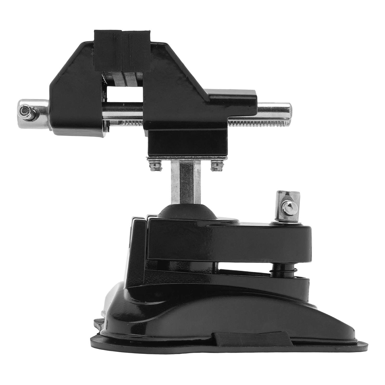 - Надежная фиксация на ровных поверхностях любого типа — тиски оснащены резиновой вакуумной присоской.
