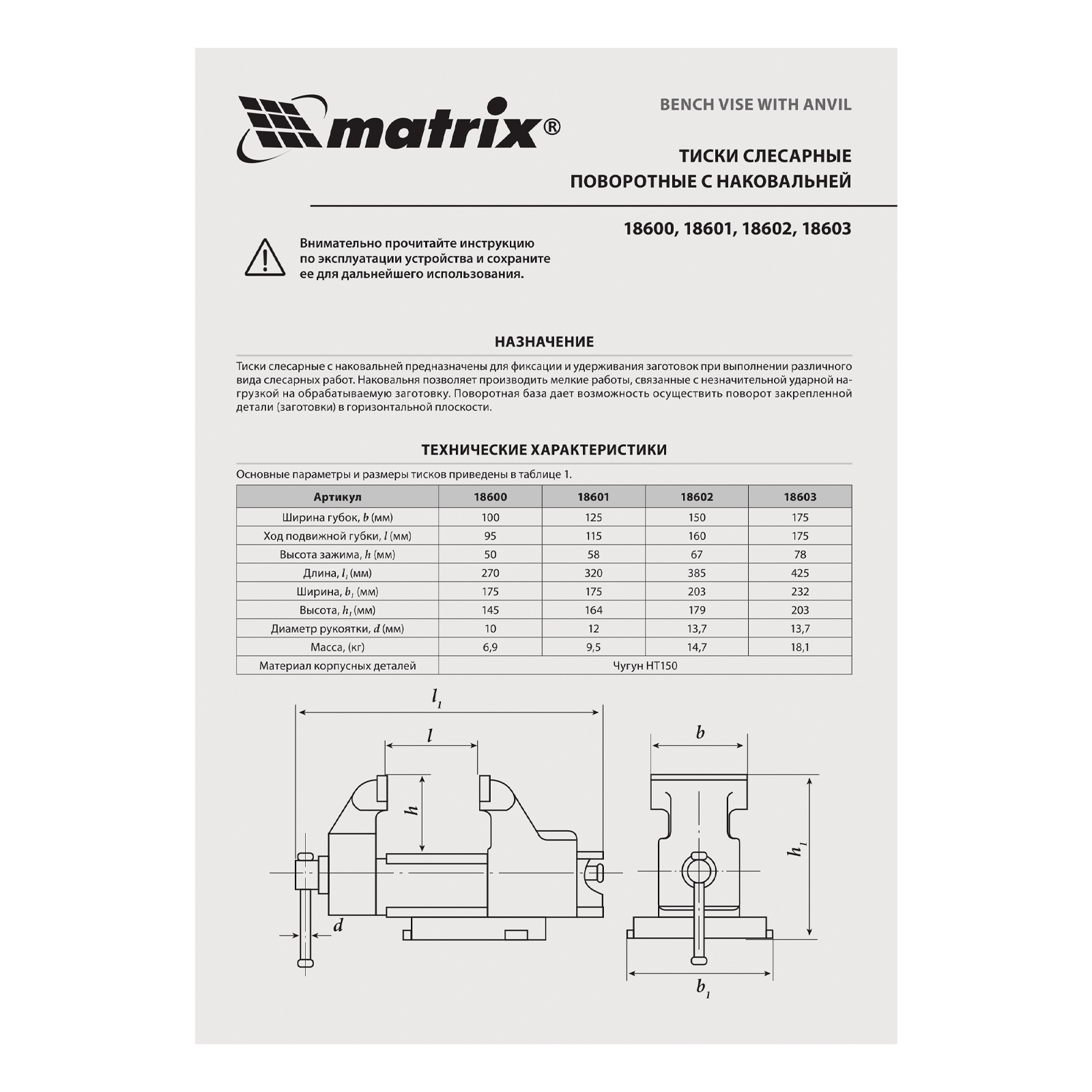 Тиски слесарные, 150 мм, поворотные, с наковальней Matrix