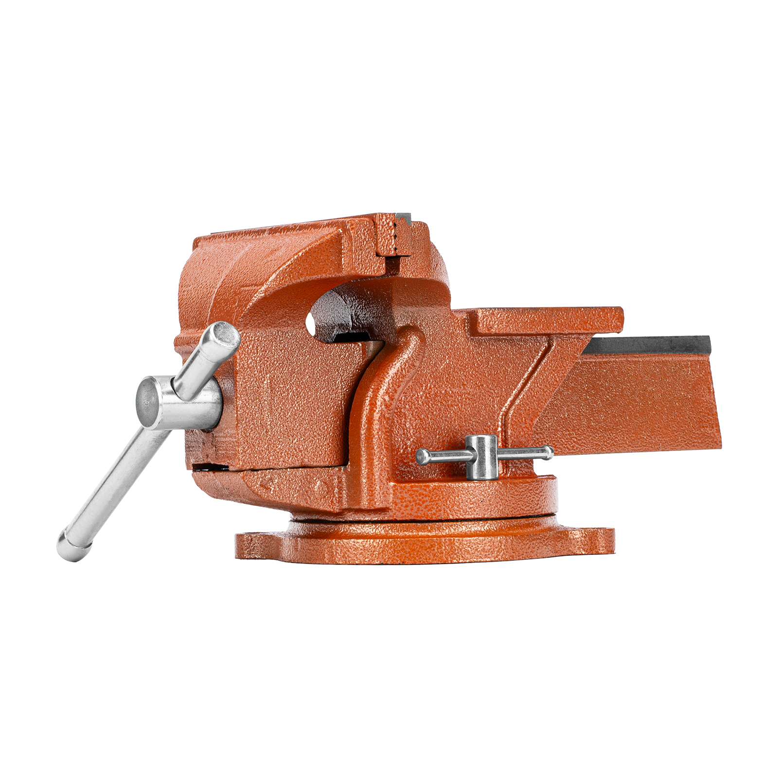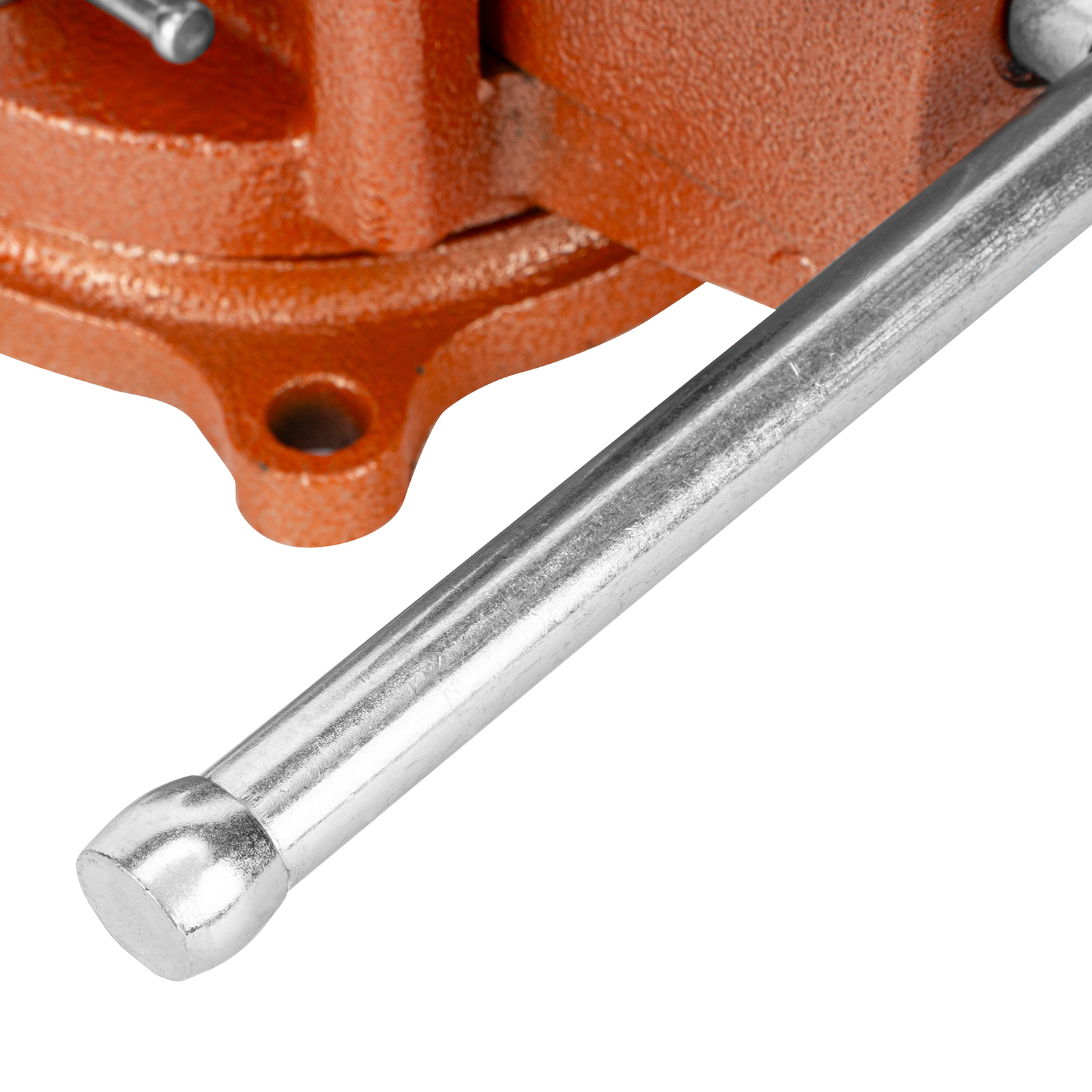 Поворотные слесарные тиски Sparta 186275 с наковальней, ширина губок 150 мм, — это небольшой инструмент для захвата деталей до 125 мм. Будут полезны в частной мастерской или гараже для удобства обработки крупногабаритных заготовок.