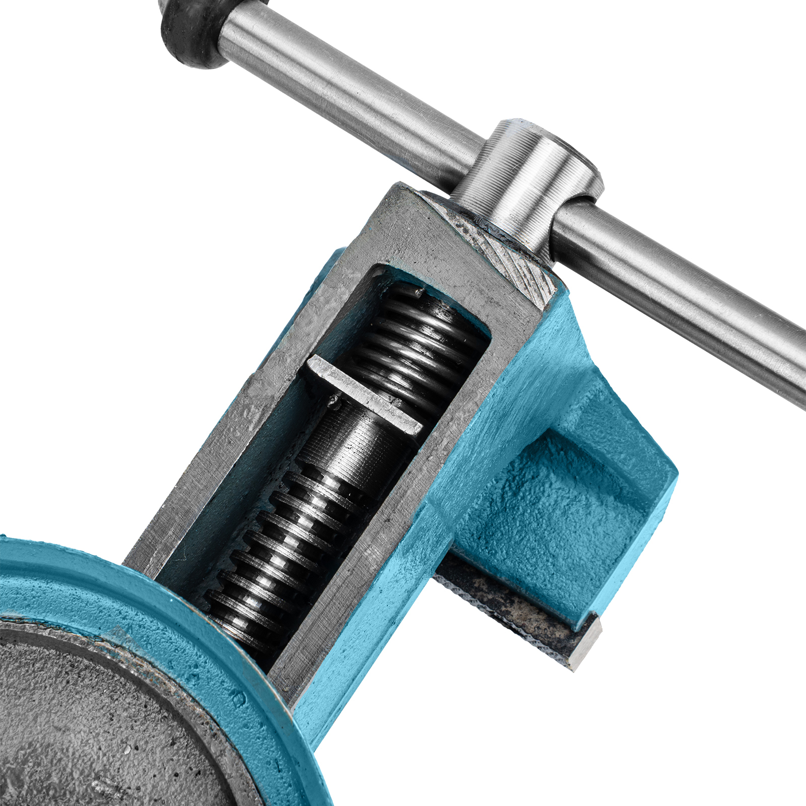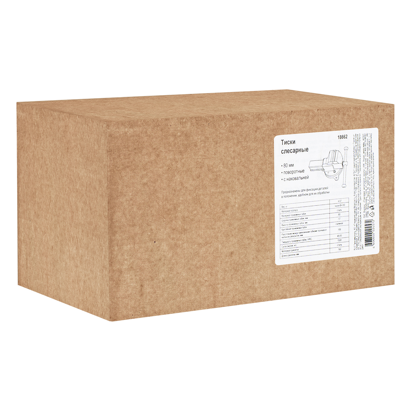 Слесарные тиски 18662, ширина губок 80 мм, с креплением для стола и винтовым зажимом, используются для надежной фиксации заготовок. С их помощью удобно выполнять непрофессиональные столярные и слесарные работы. Тиски с рабочим ходом 100 мм рассчитаны на удержание небольших заготовок.