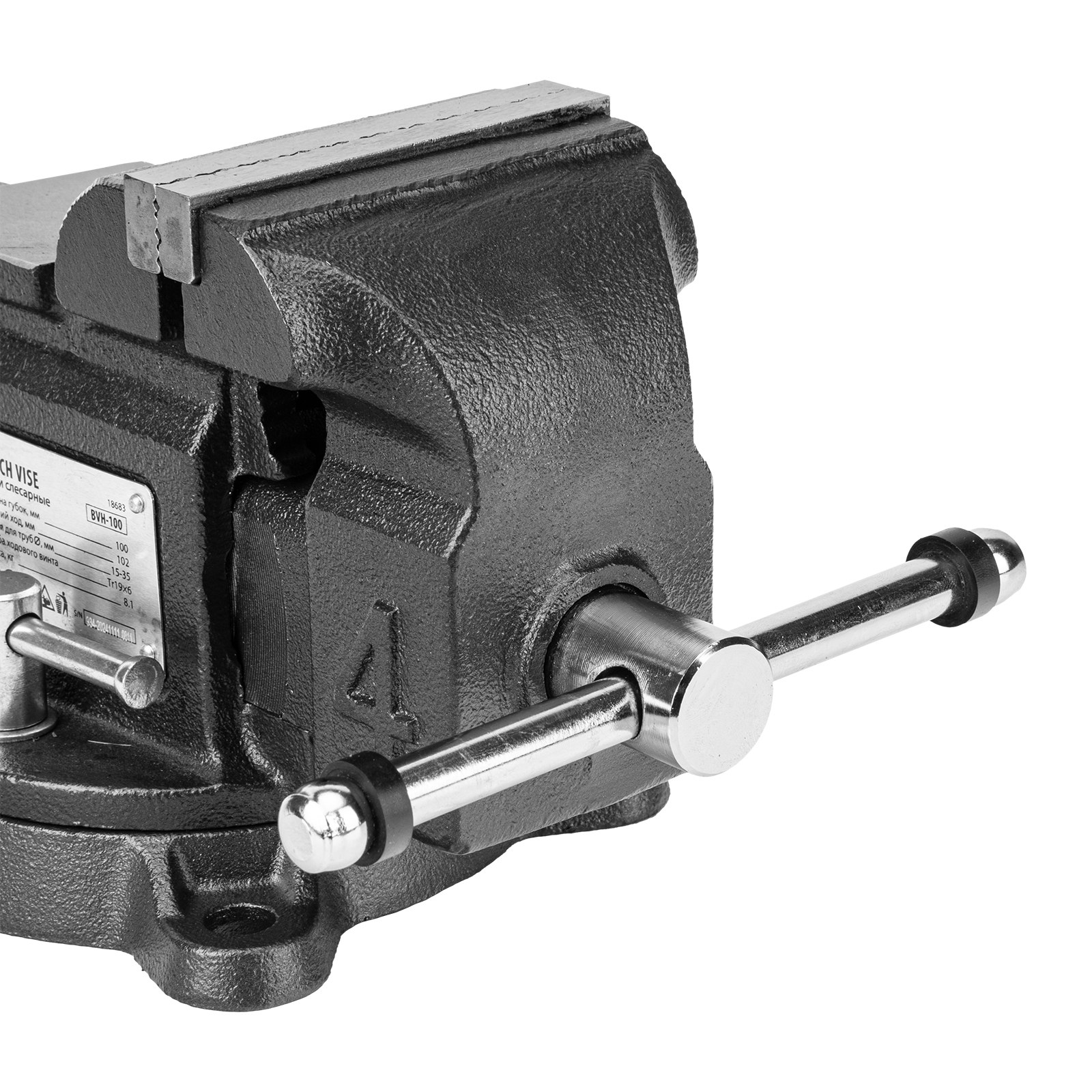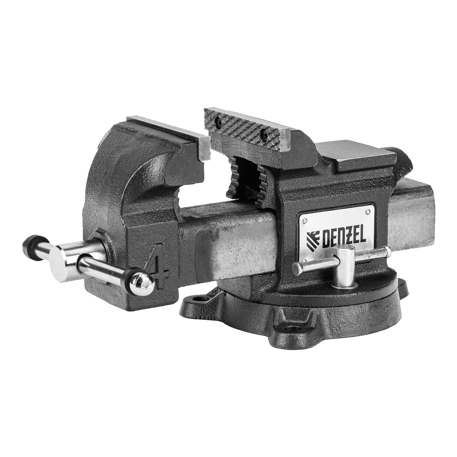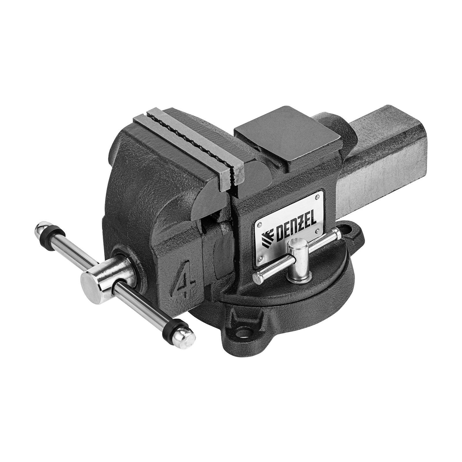 Тиски слесарные BVH-100, 100 мм, поворотные, стальная направляющая, с наковальней //Denzel