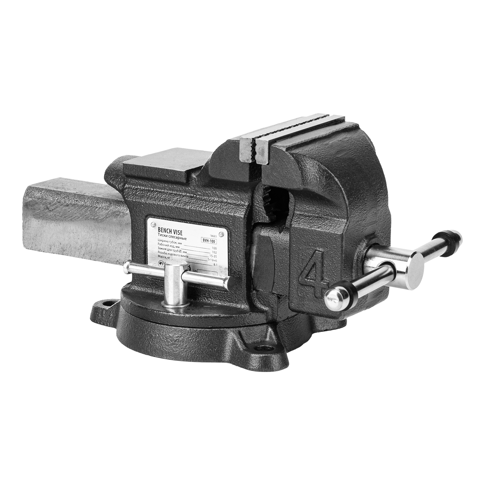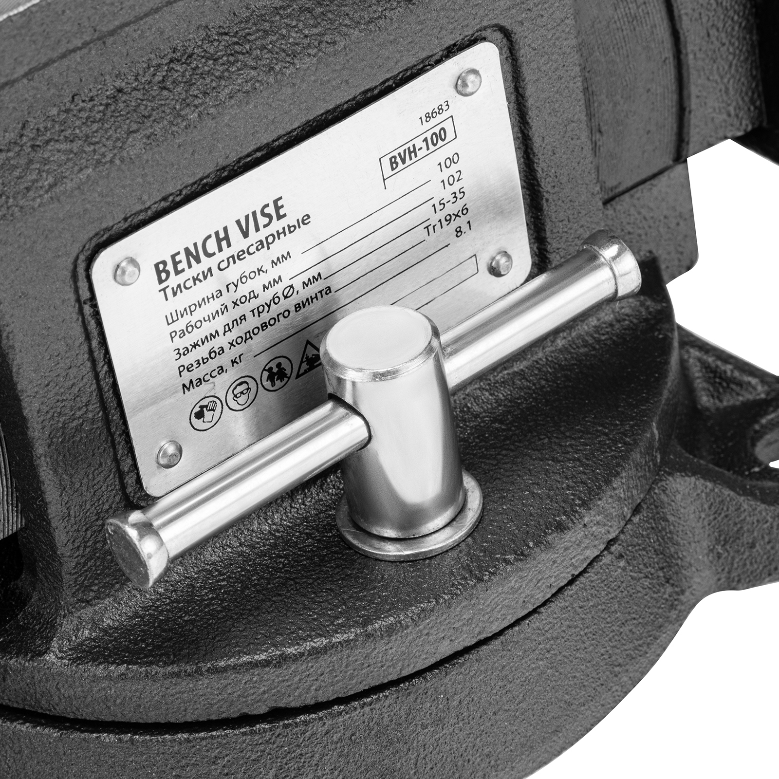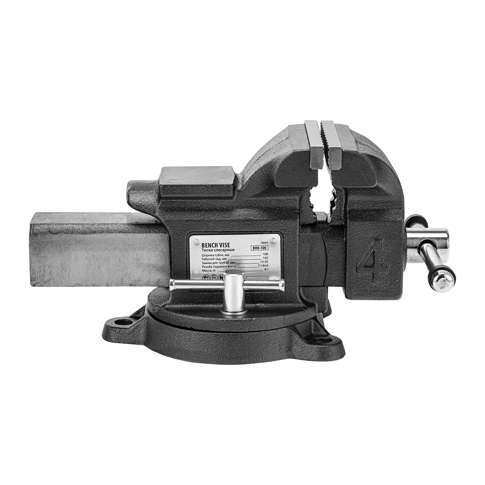 Тиски слесарные BVH-100, 100 мм, поворотные, стальная направляющая, с наковальней //Denzel