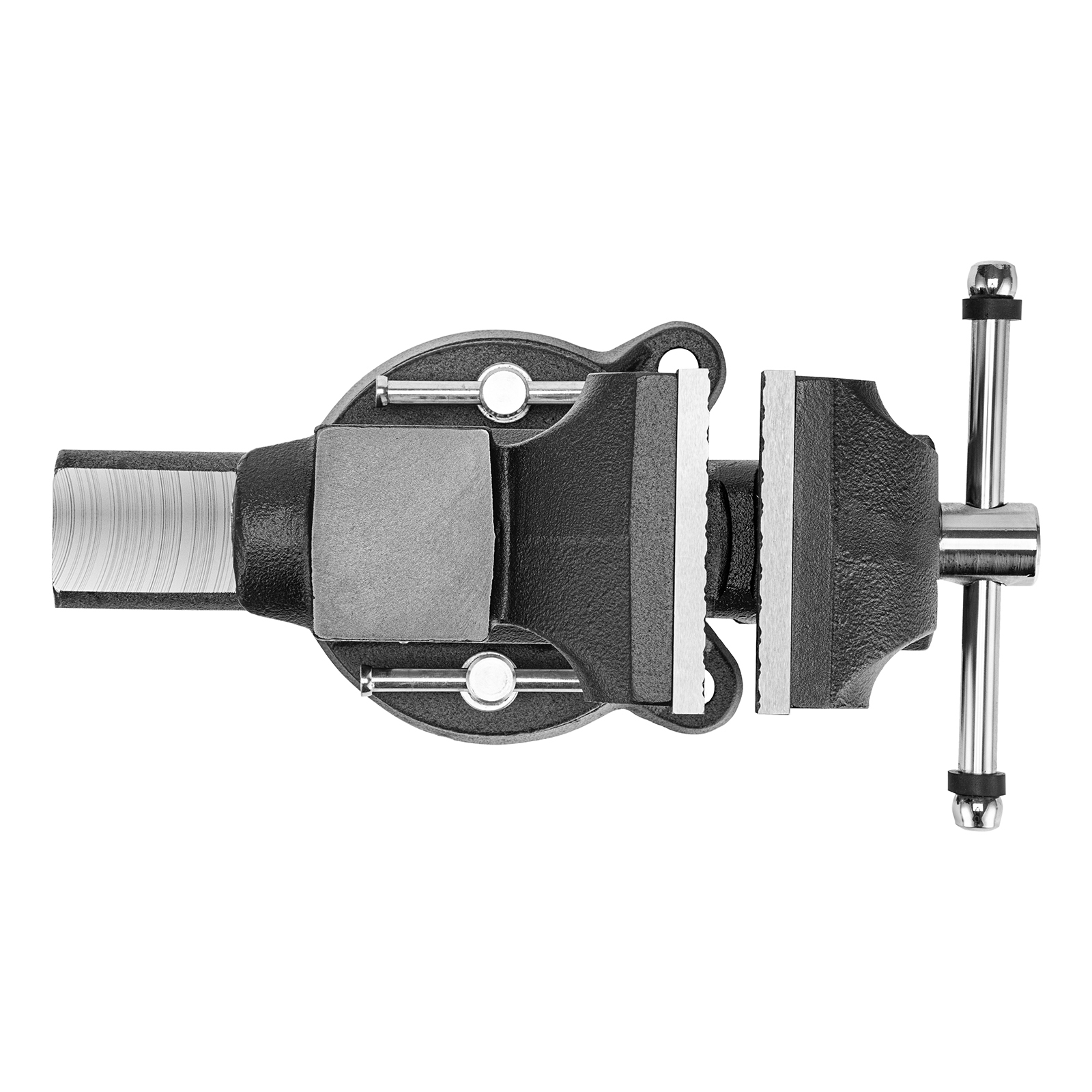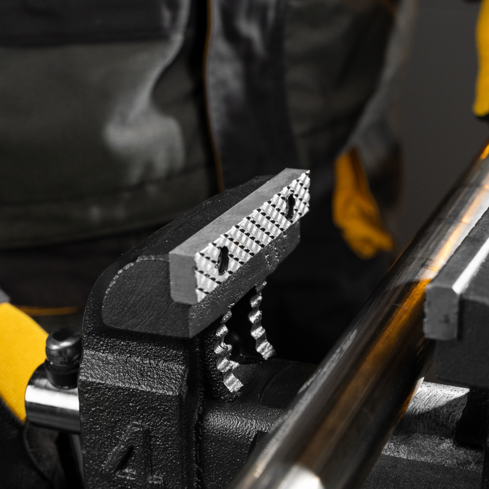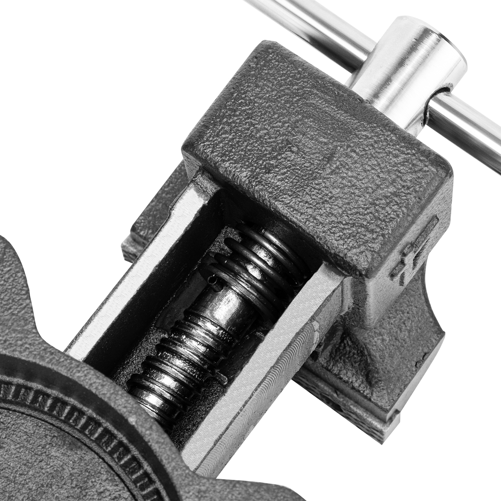 - Функциональность — тиски поворачиваются на 360°, что позволяет менять и выбирать позицию инструмента для удобной работы с заготовкой.