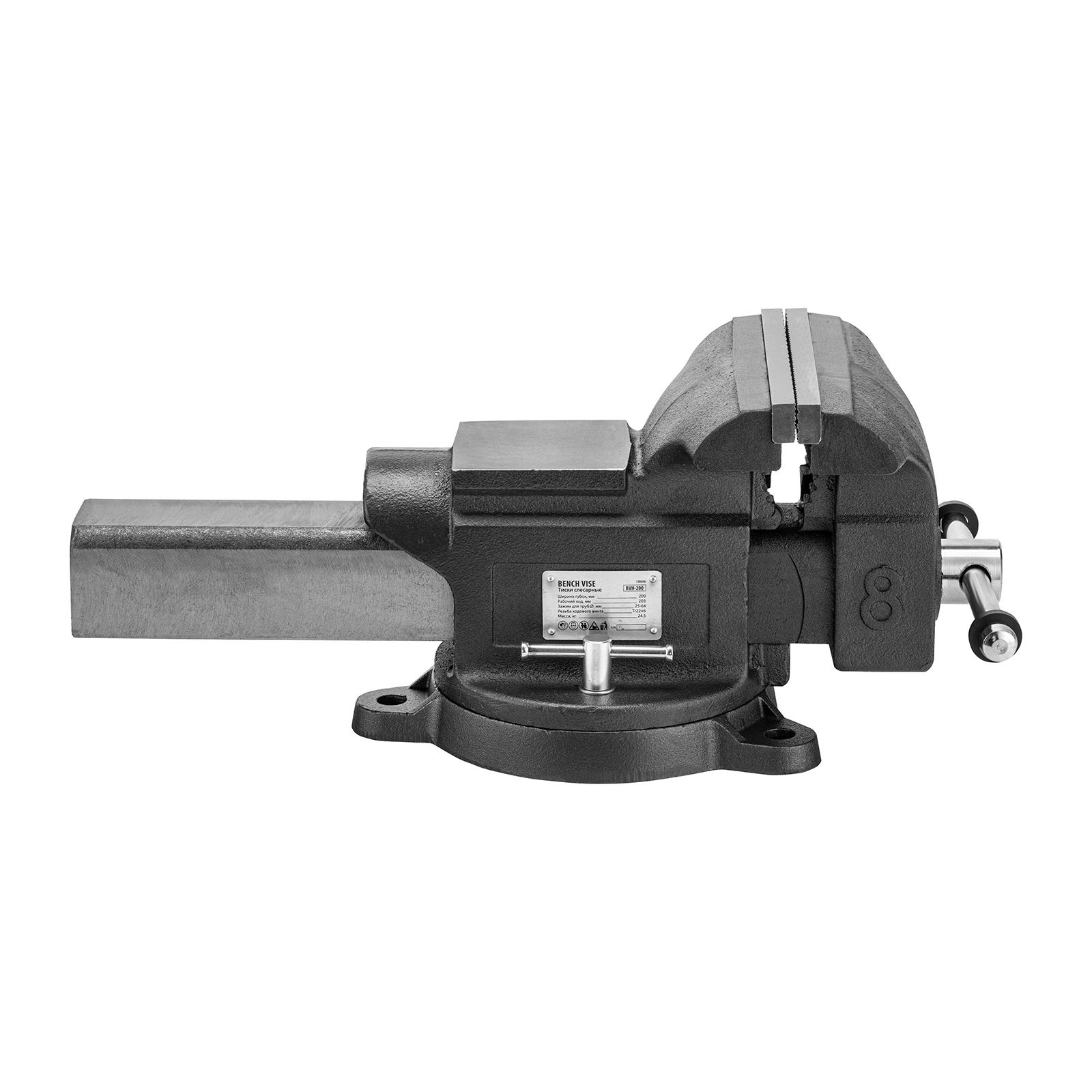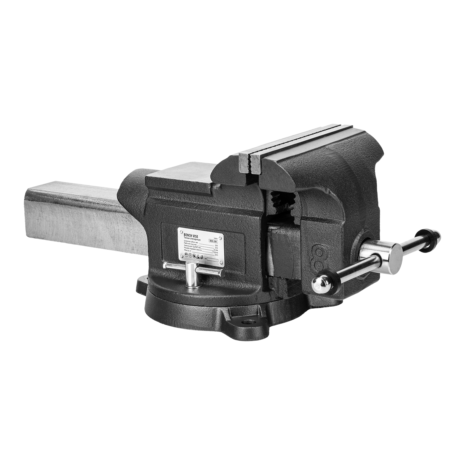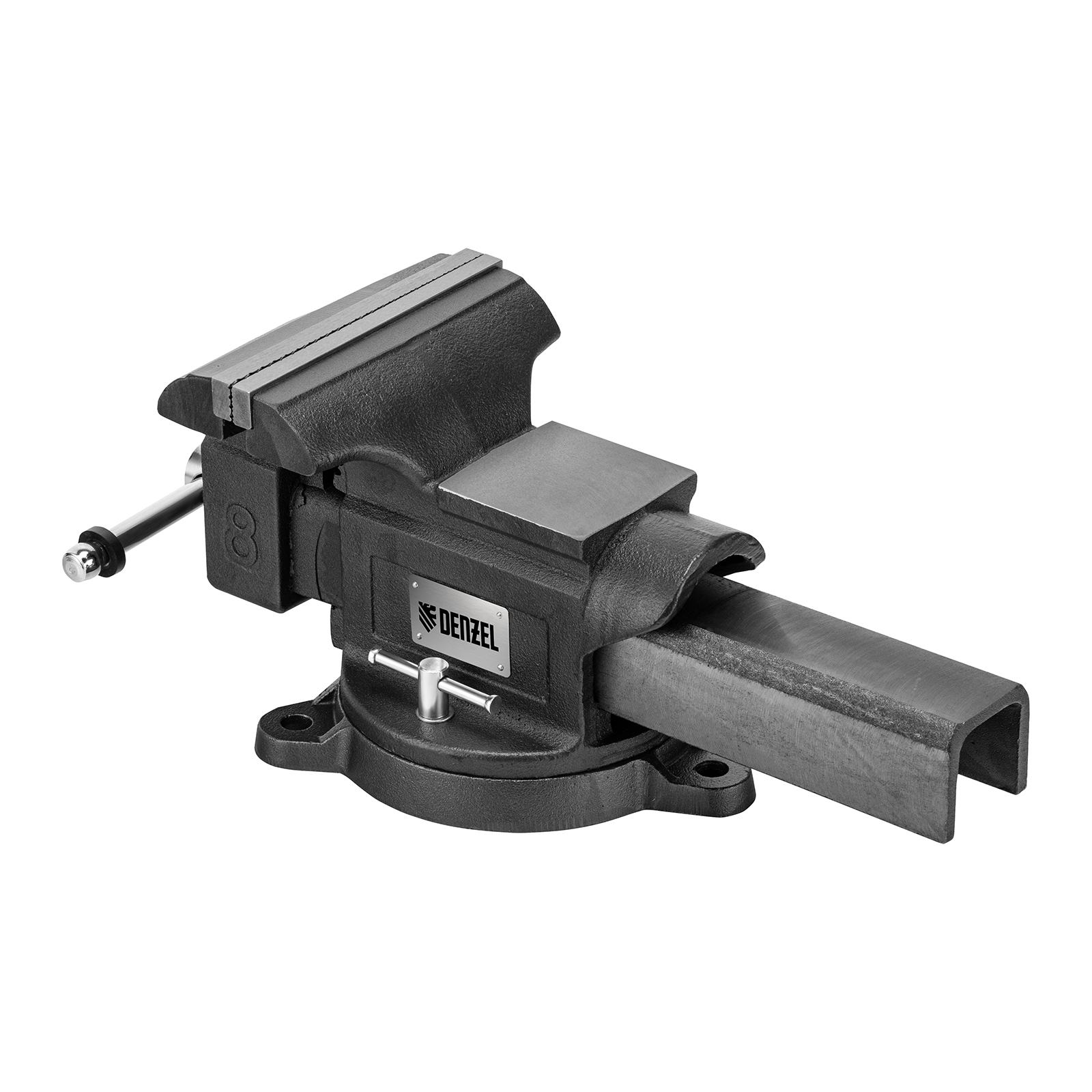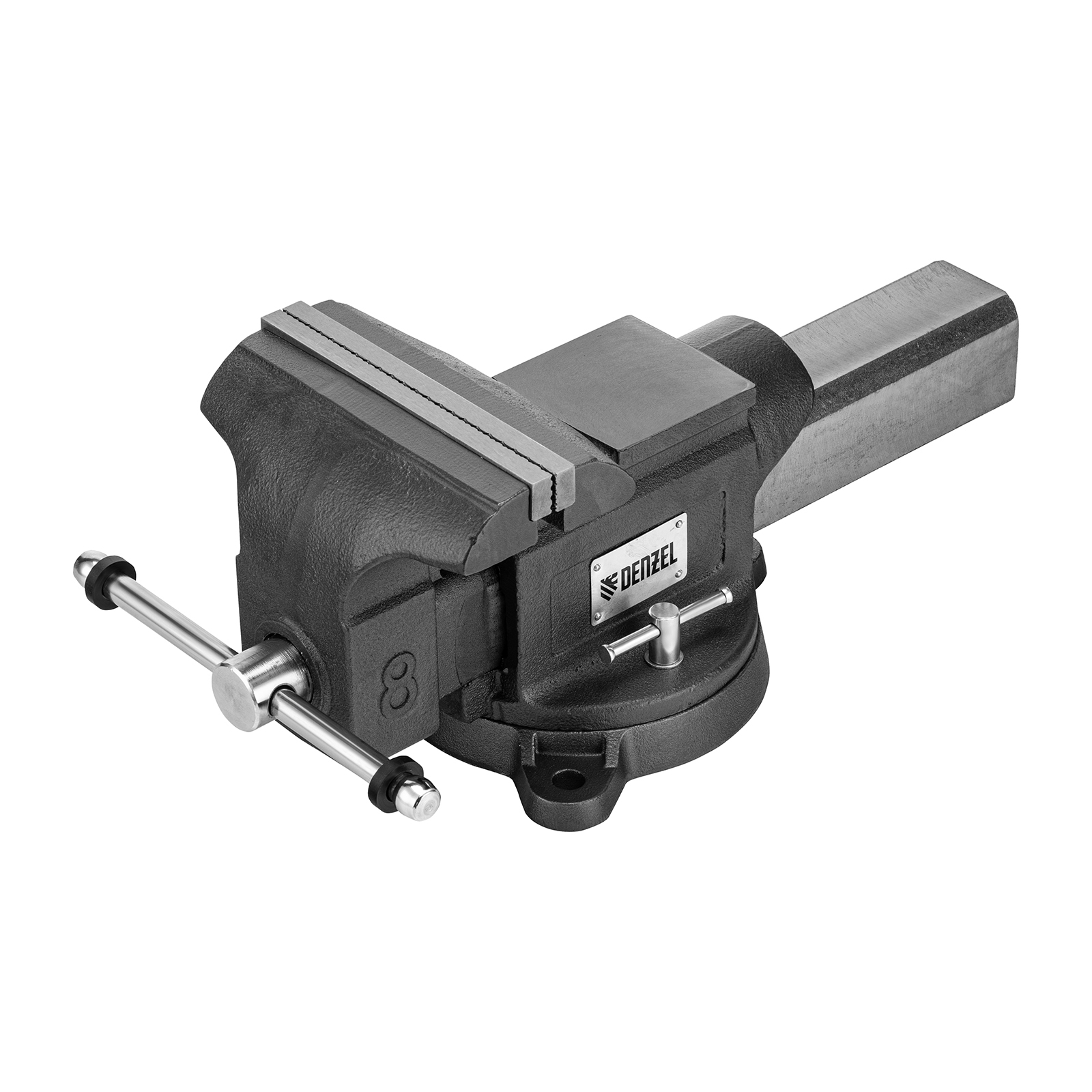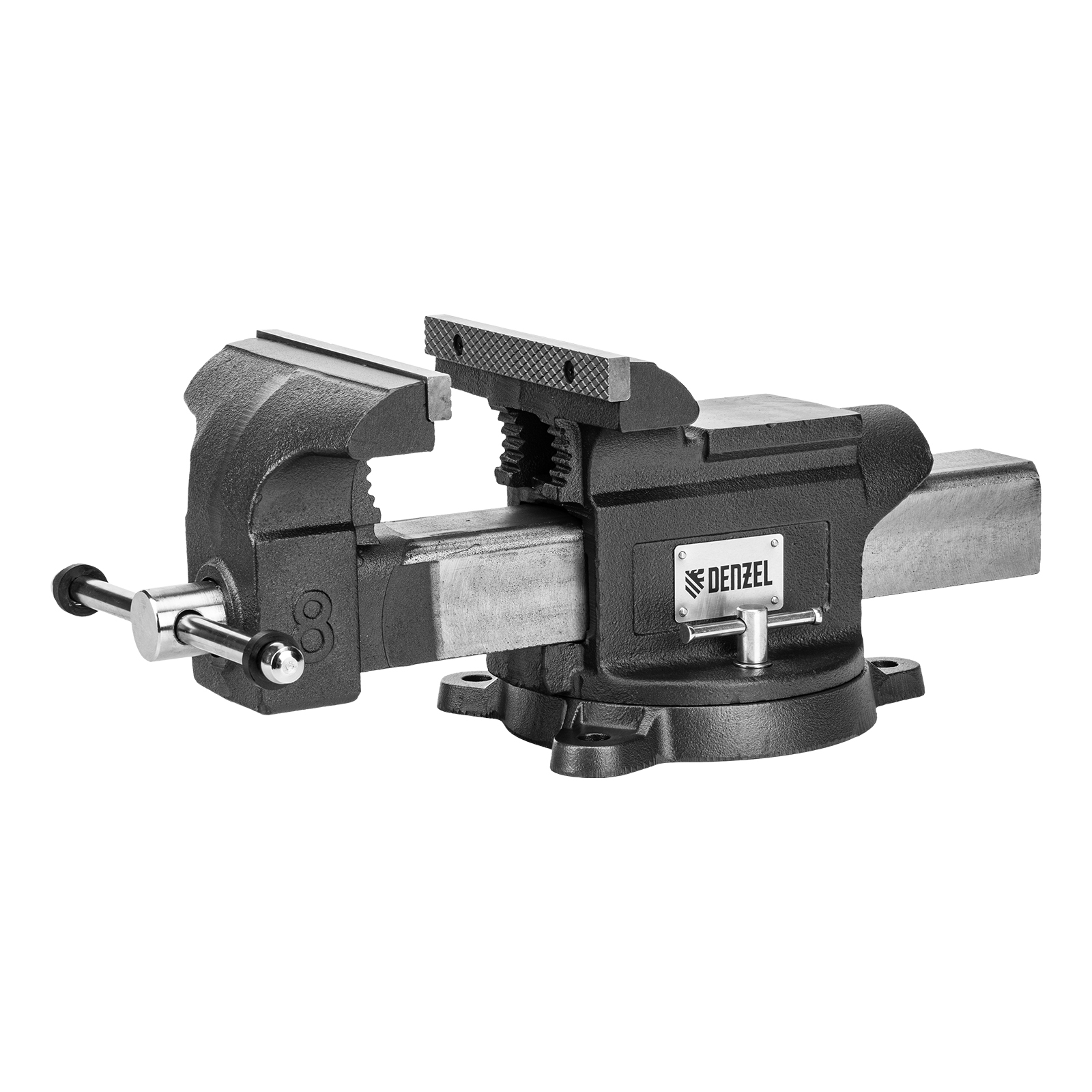 Тиски слесарные BVH-200, 200 мм, поворотные, стальная направляющая, с наковальней //Denzel