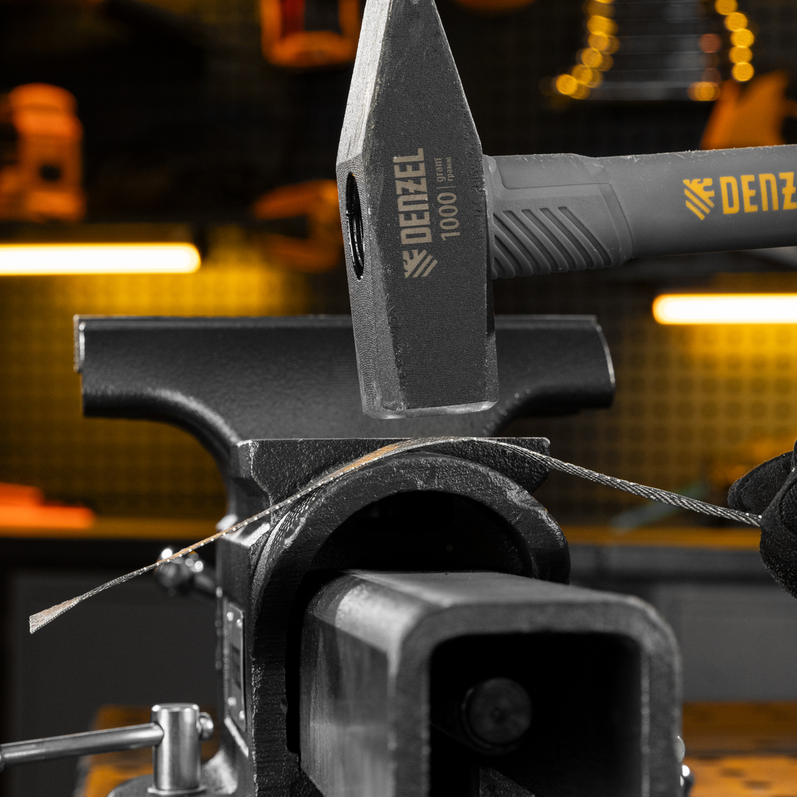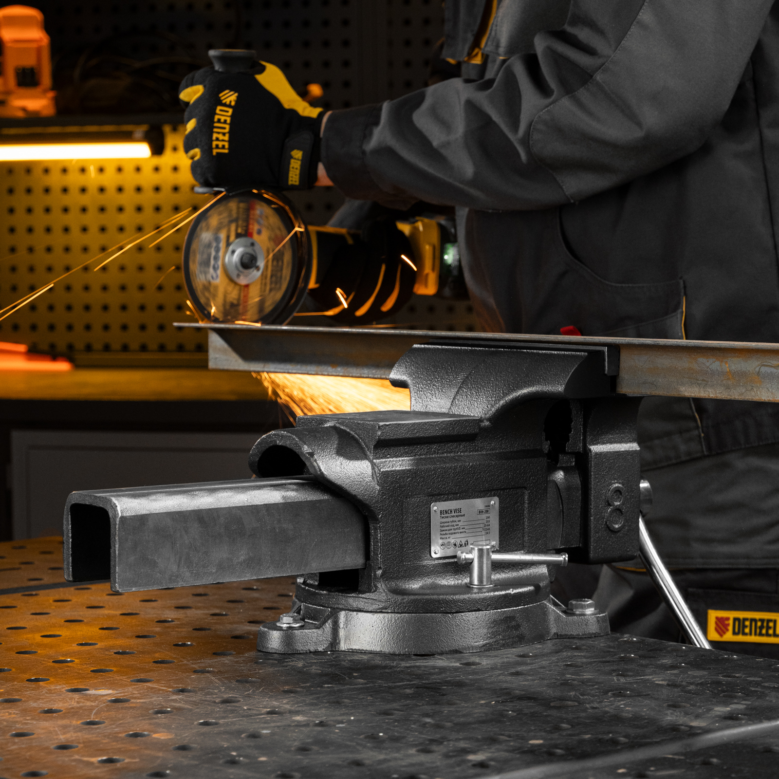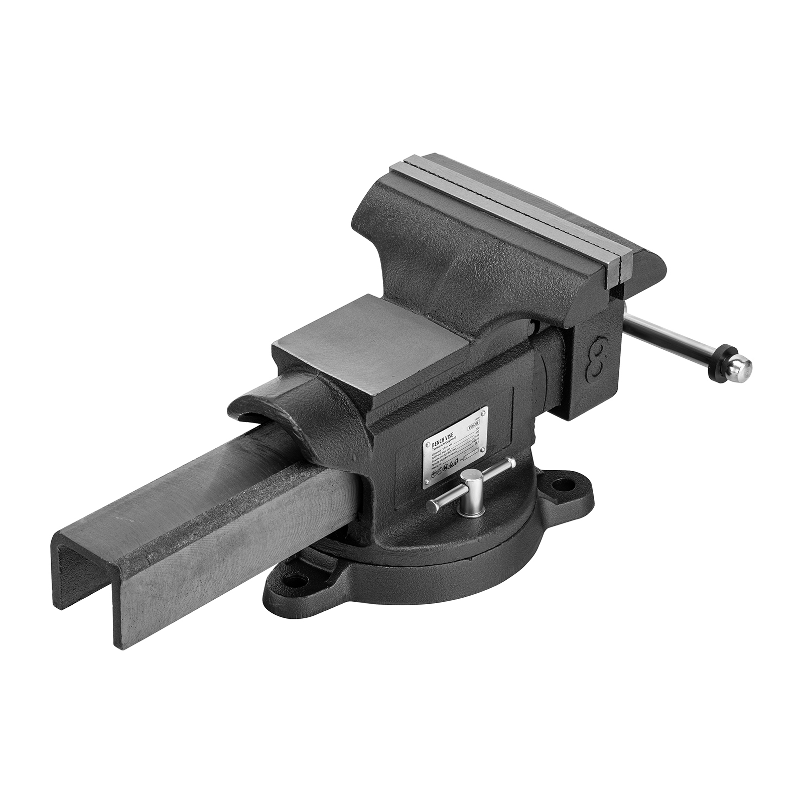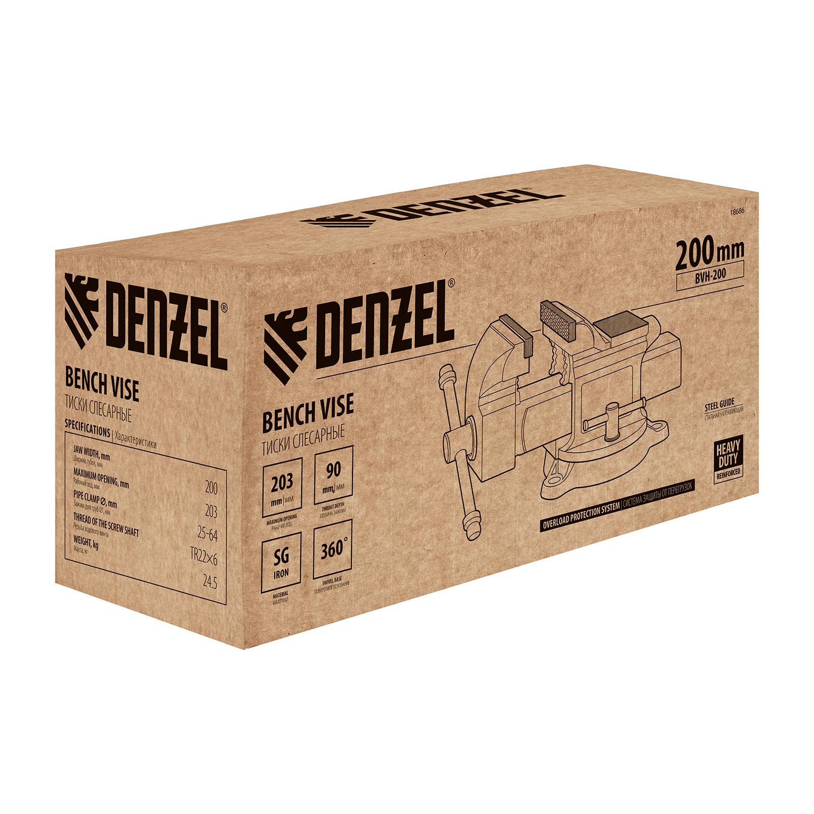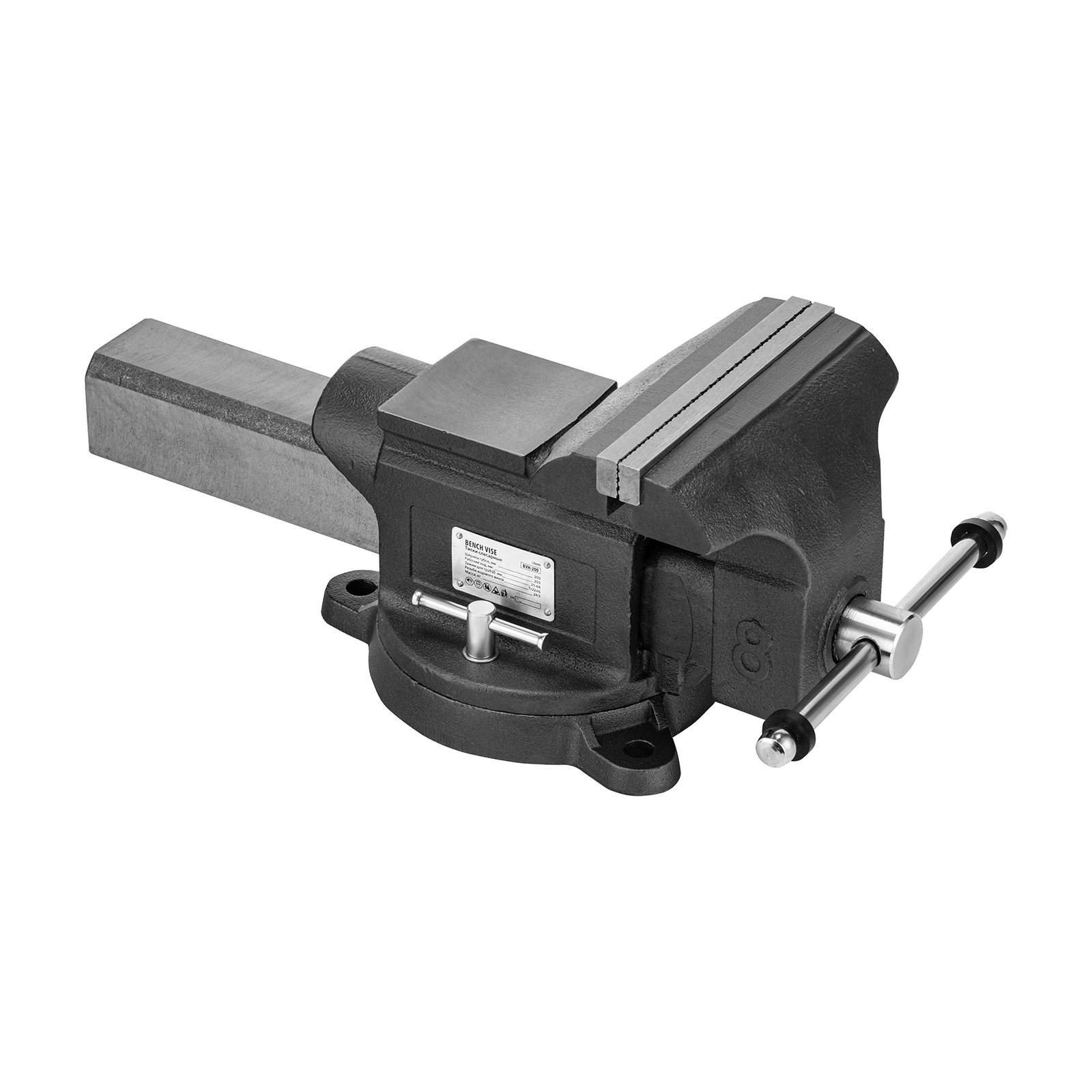 Тиски слесарные BVH-200, 200 мм, поворотные, стальная направляющая, с наковальней //Denzel