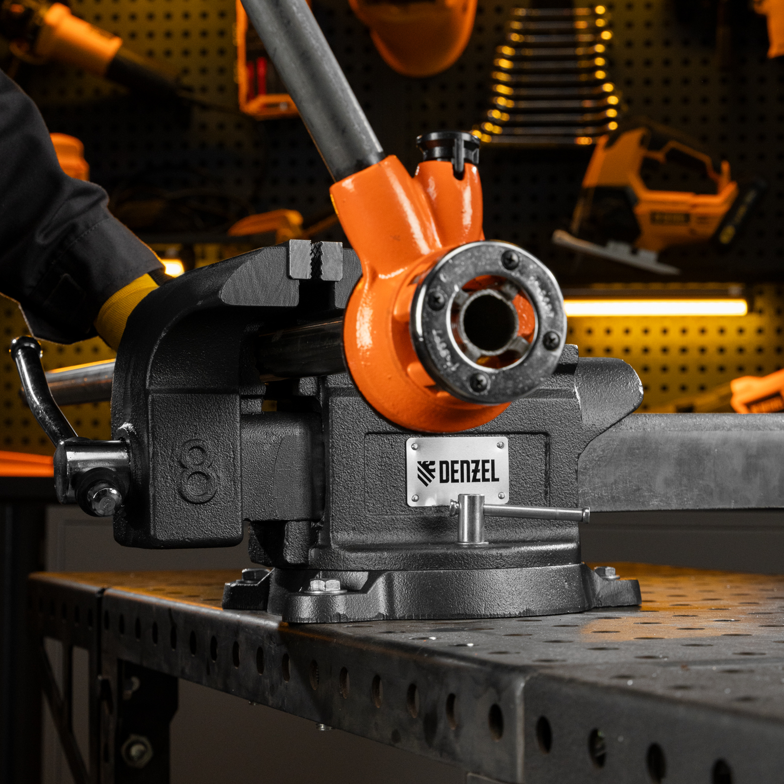 - Функциональность — тиски поворачиваются на 360°, что позволяет менять и выбирать позицию инструмента для удобной работы с заготовкой.
