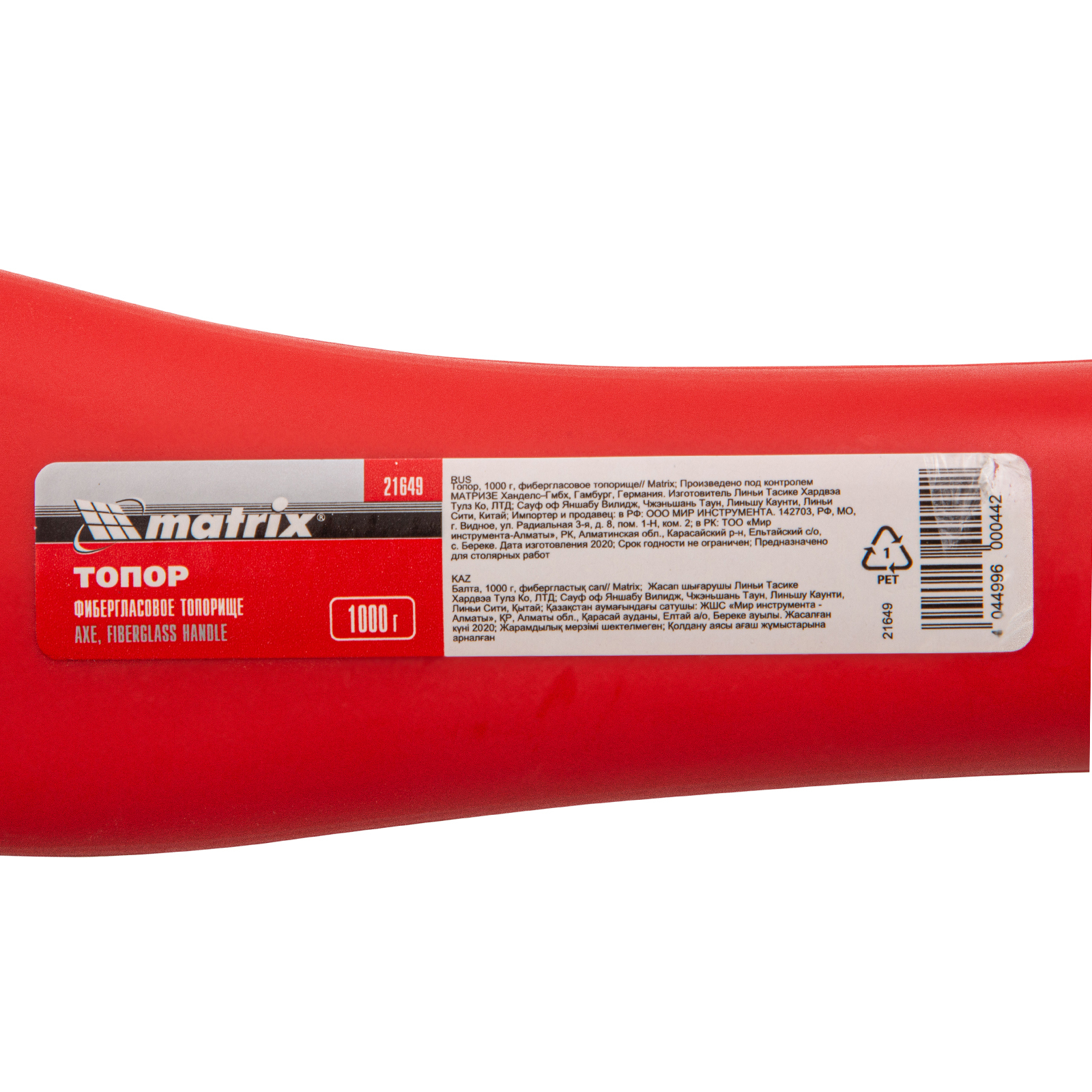 Топор Matrix 21649 с рабочей частью весом 1000 г и фибергласовым топорищем позволяет осуществлять рубку, тесание и колку твердой и мягкой древесины. Будет полезен на дачном и сельскохозяйственном участке при необходимости подготовки дров, рубки кустов, сучьев и других работ.