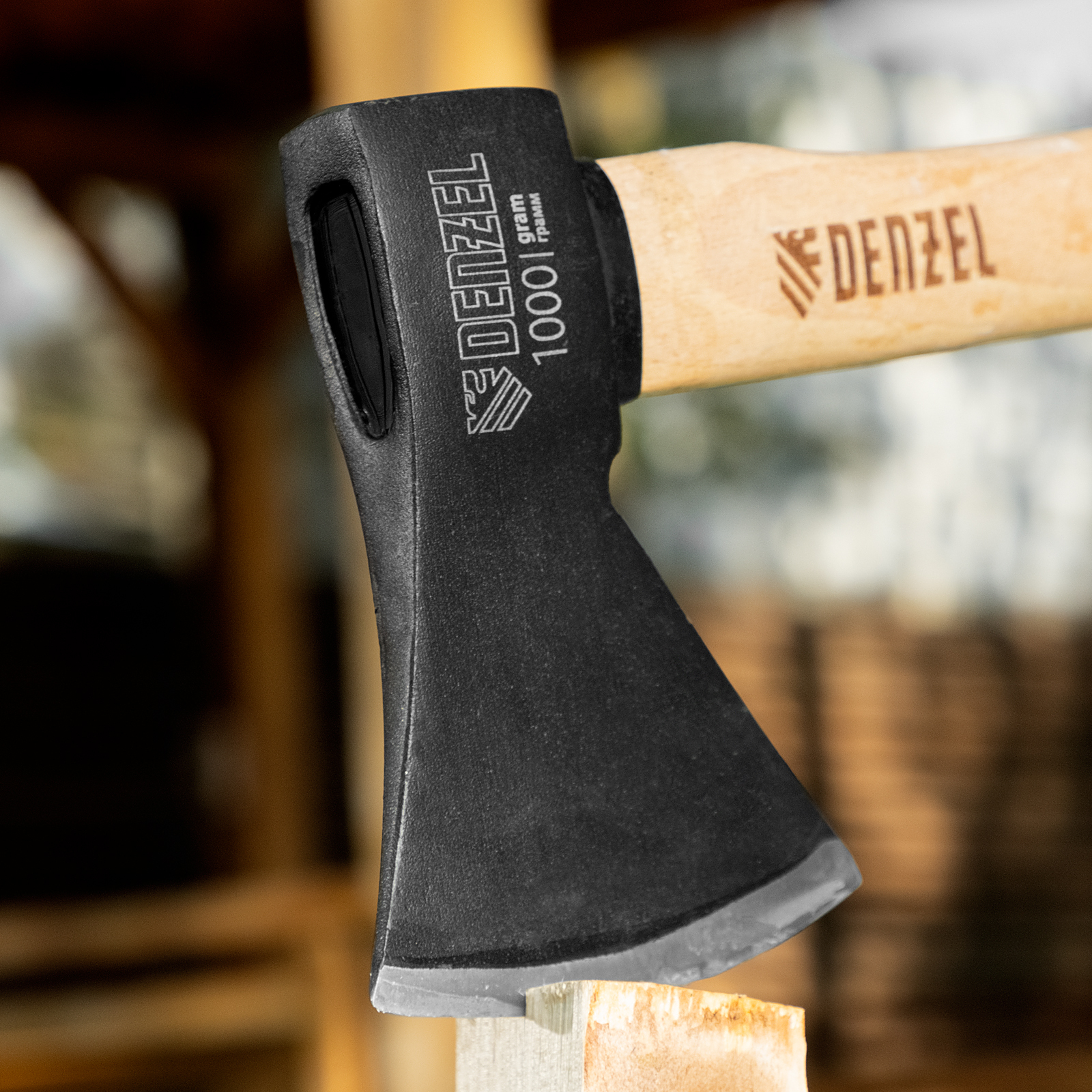 Топор, 1000 г, кованый, буковое топорище Denzel