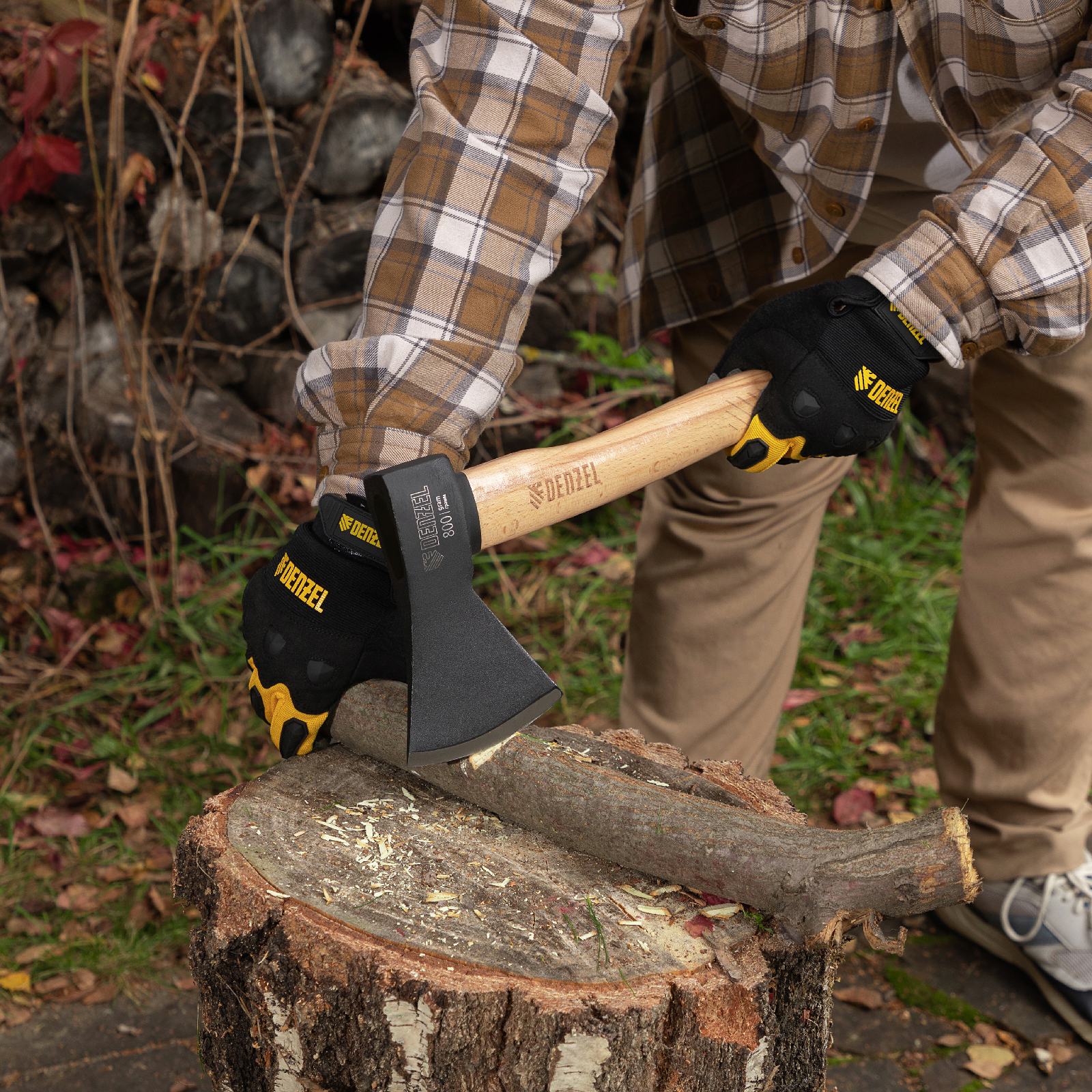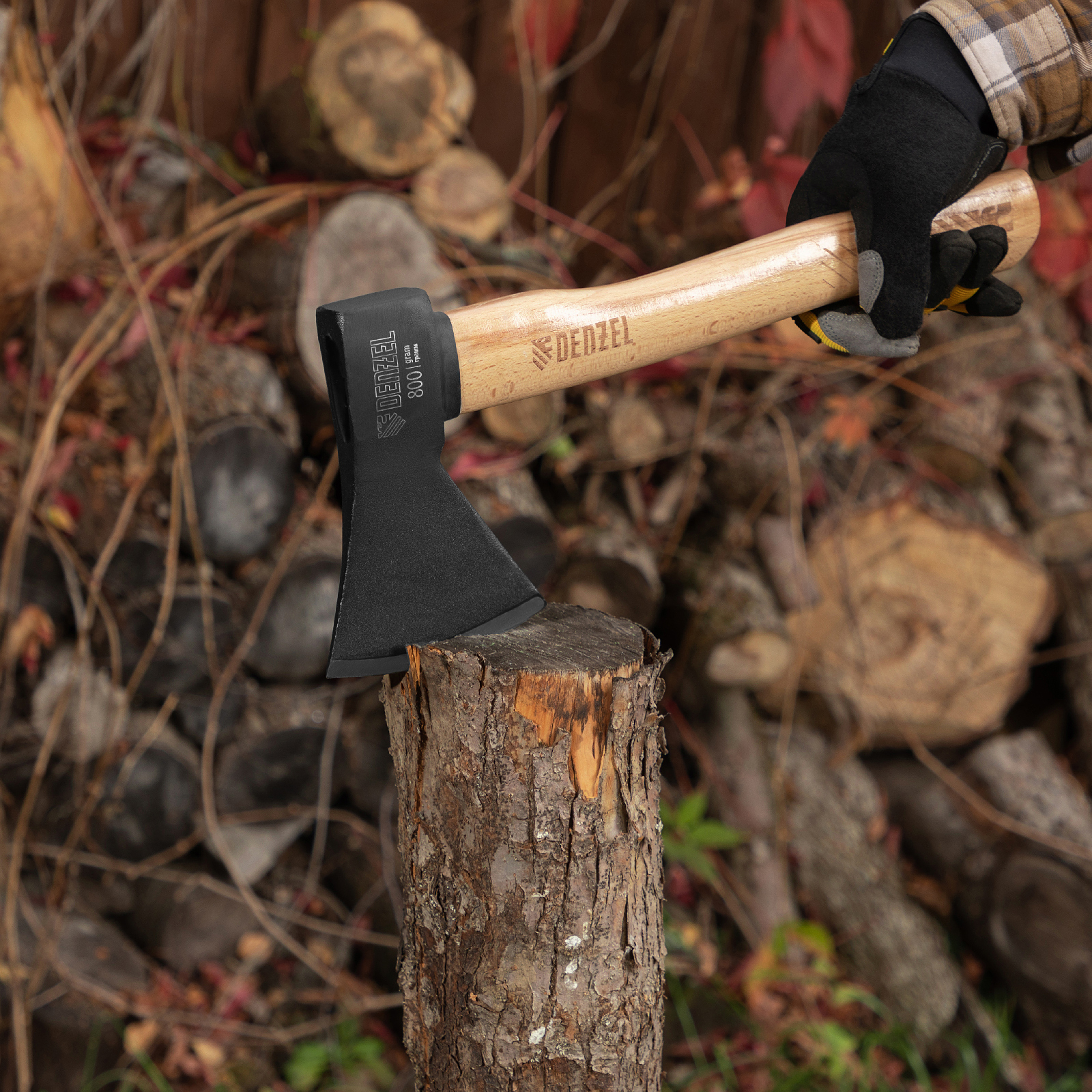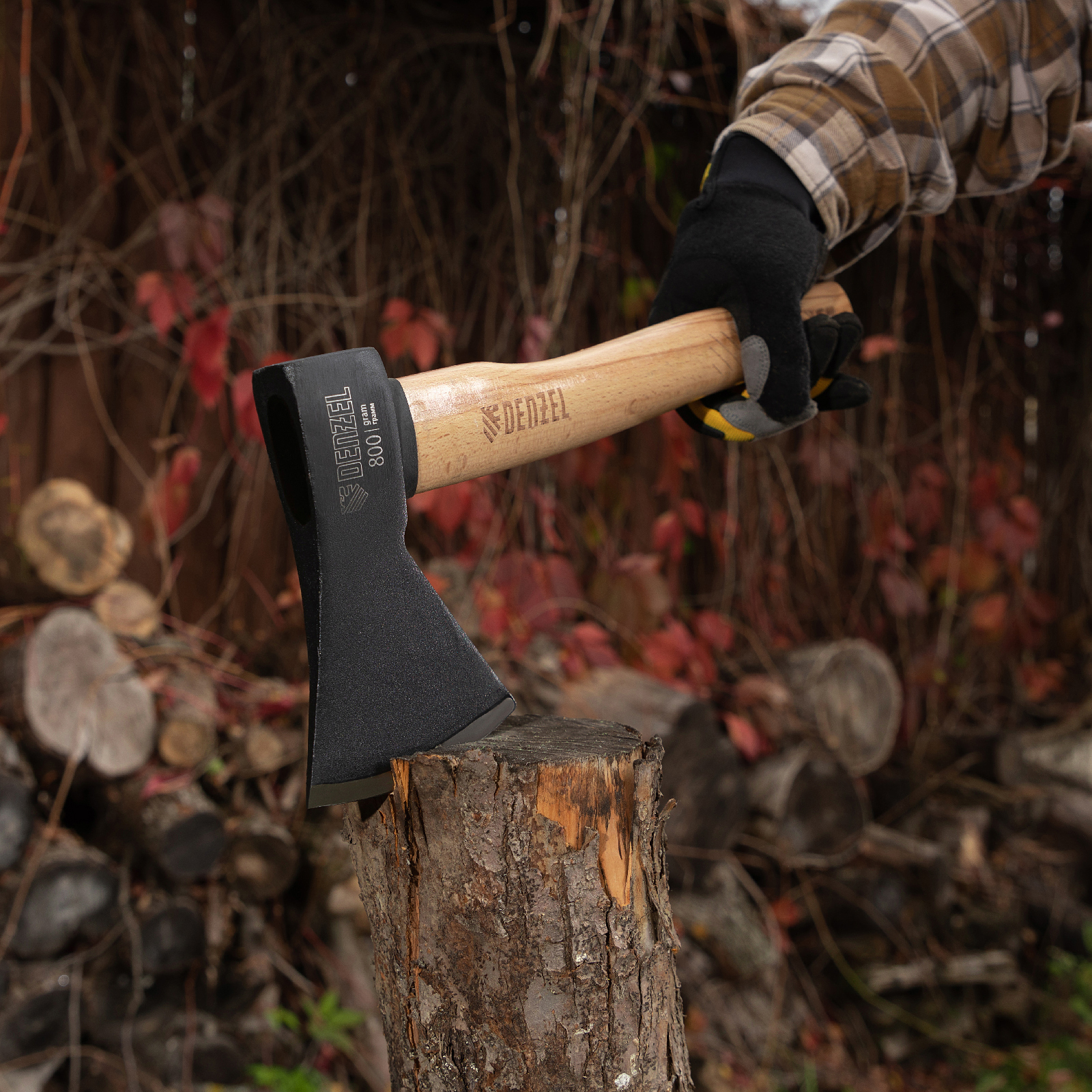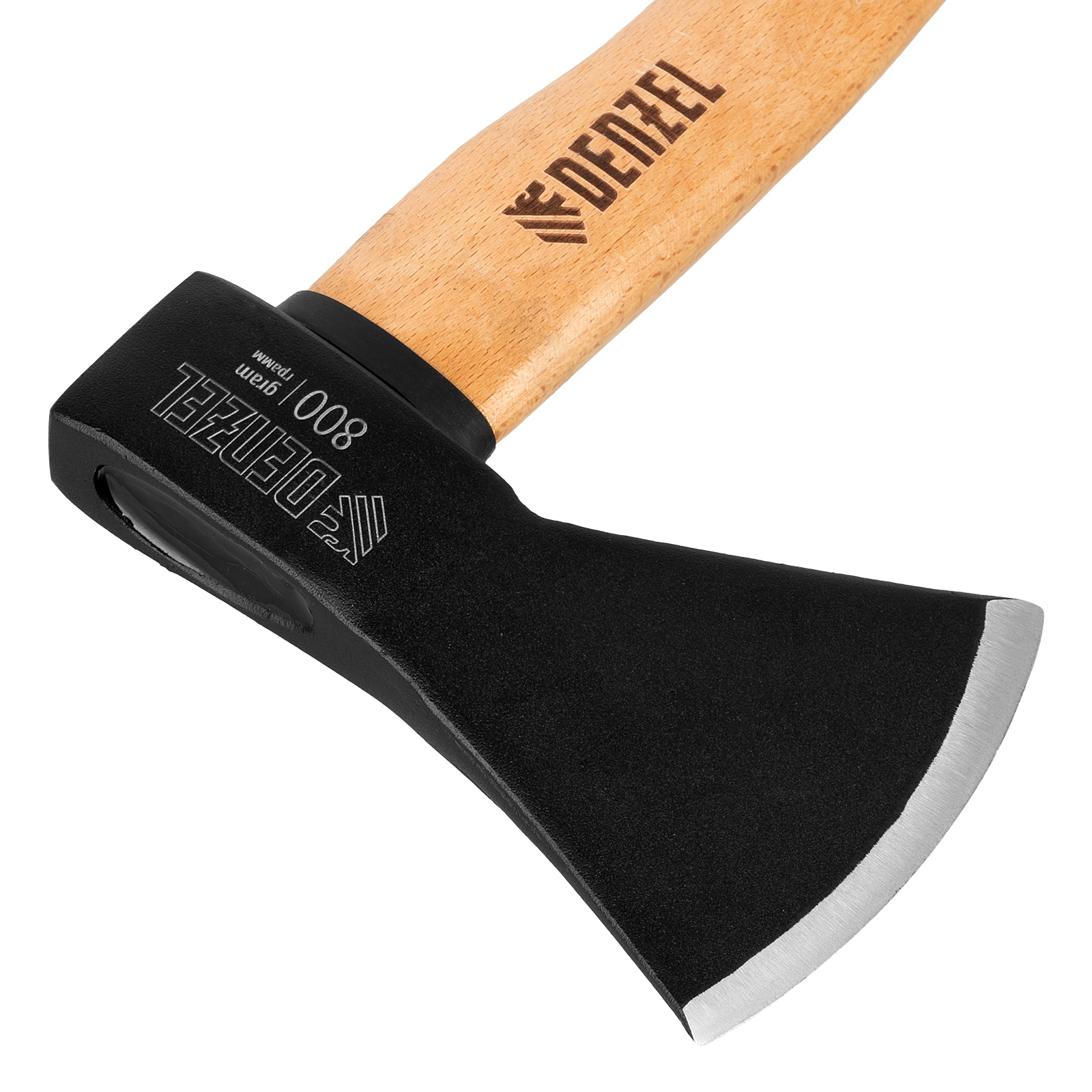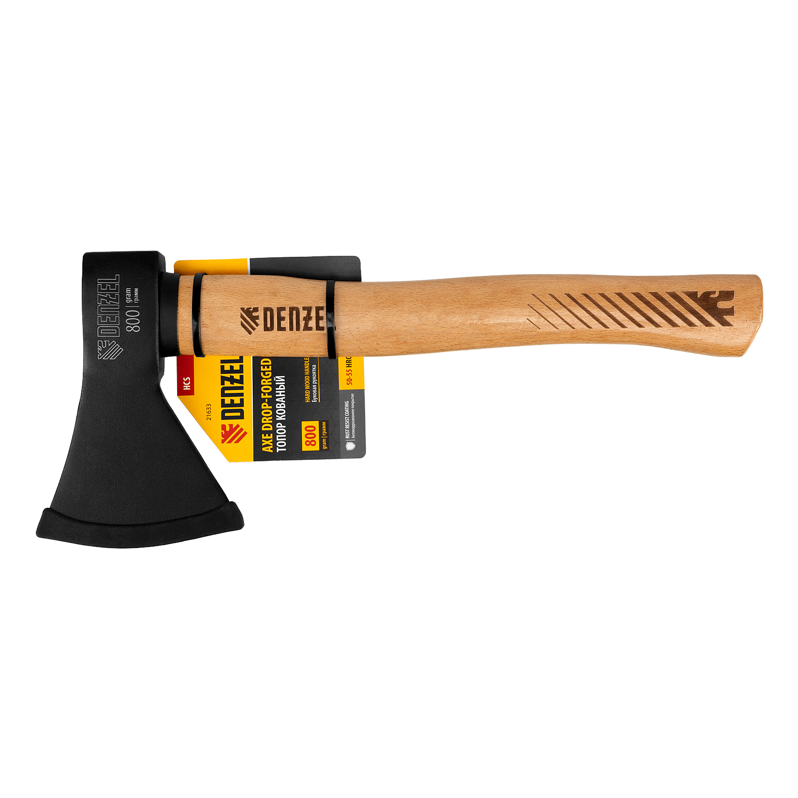 <p>Кованый плотницкий топор Denzel 21633 с буковым топорищем и рабочей частью весом 800 г предназначен для рубки и тесания древесины. Выдерживает высокие нагрузки, поэтому идеально подходит для работы в тяжелых условиях.</p><h2>Преимущества</h2><ul><li>Устойчивость к нагрузкам — голова топора изготовлена из высокоуглеродистой стали и закалена до твердости 50-55 HRC.</li><li>Надежная защита от коррозии — на головку нанесено черное эмалевое покрытие.</li><li>Прочность и долговечность — буковая рукоятка расклинена и дополнительно зафиксирована эпоксидным клеем, что обеспечивает надежную фиксацию головки и в целом надежность всего инструмента.</li><li>Стойкость к рассыханию и воздействию влаги — топорище покрыто защитным лаком.</li><li>Комфортная работа — инструмент отличается сбалансированной эргономичной формой и весом.</li></ul>