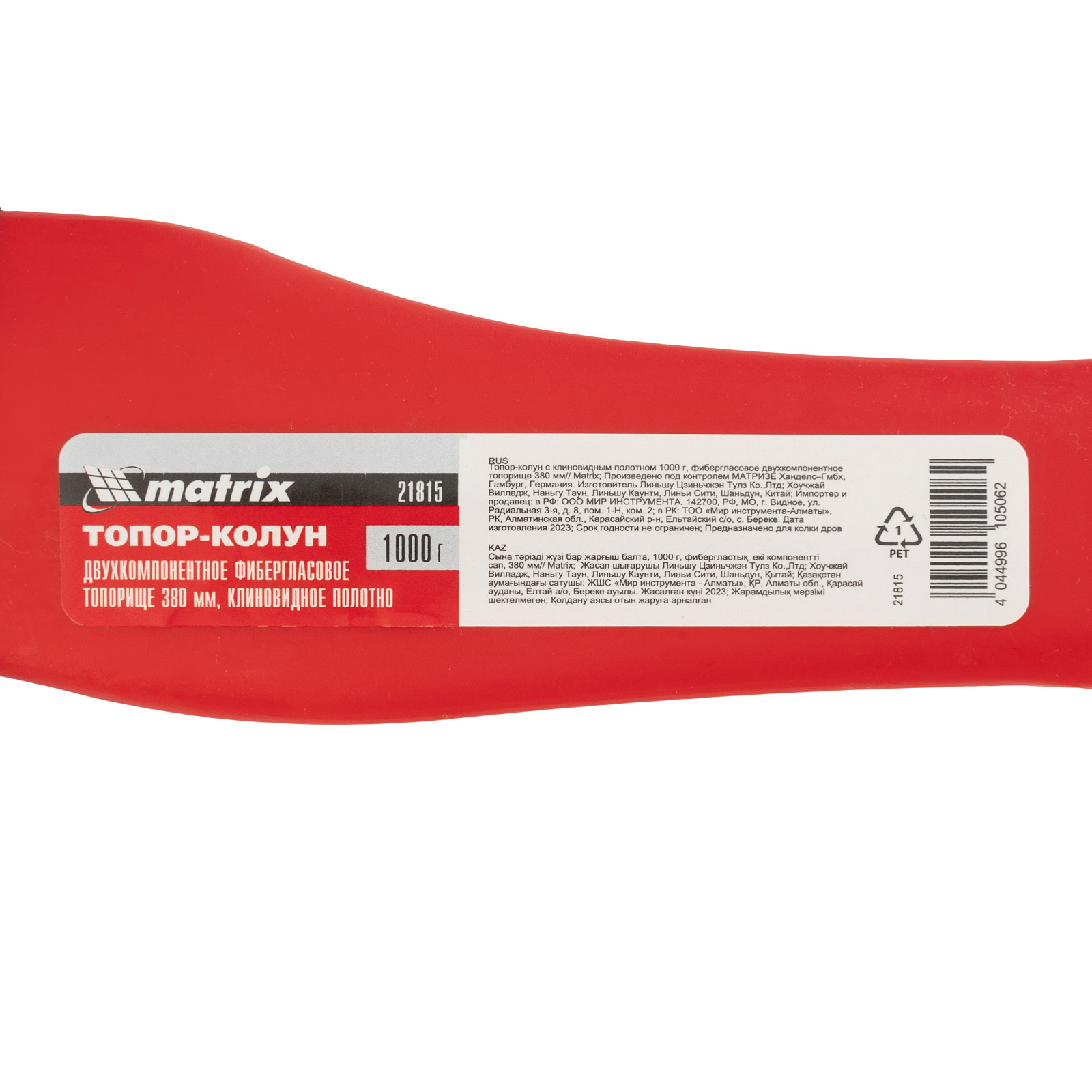 Топор-колун с клиновидным полотном 1000 г, фибергласовое двухкомпонентное топорище 380 мм Matrix