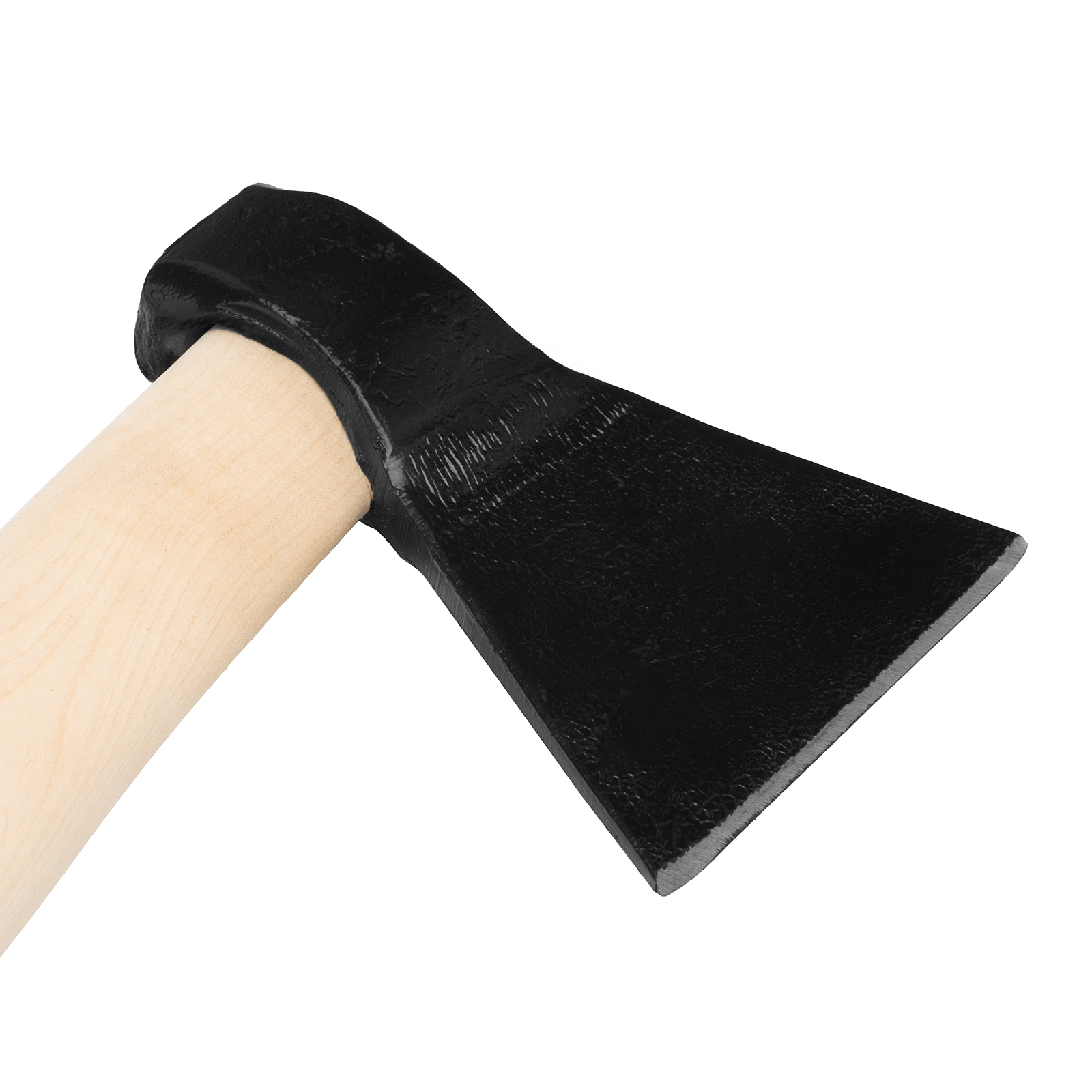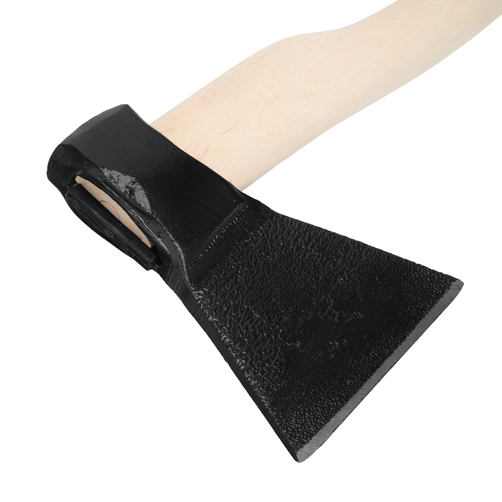 - Прочное соединение головы с топорищем — в месте всада установлен клин.