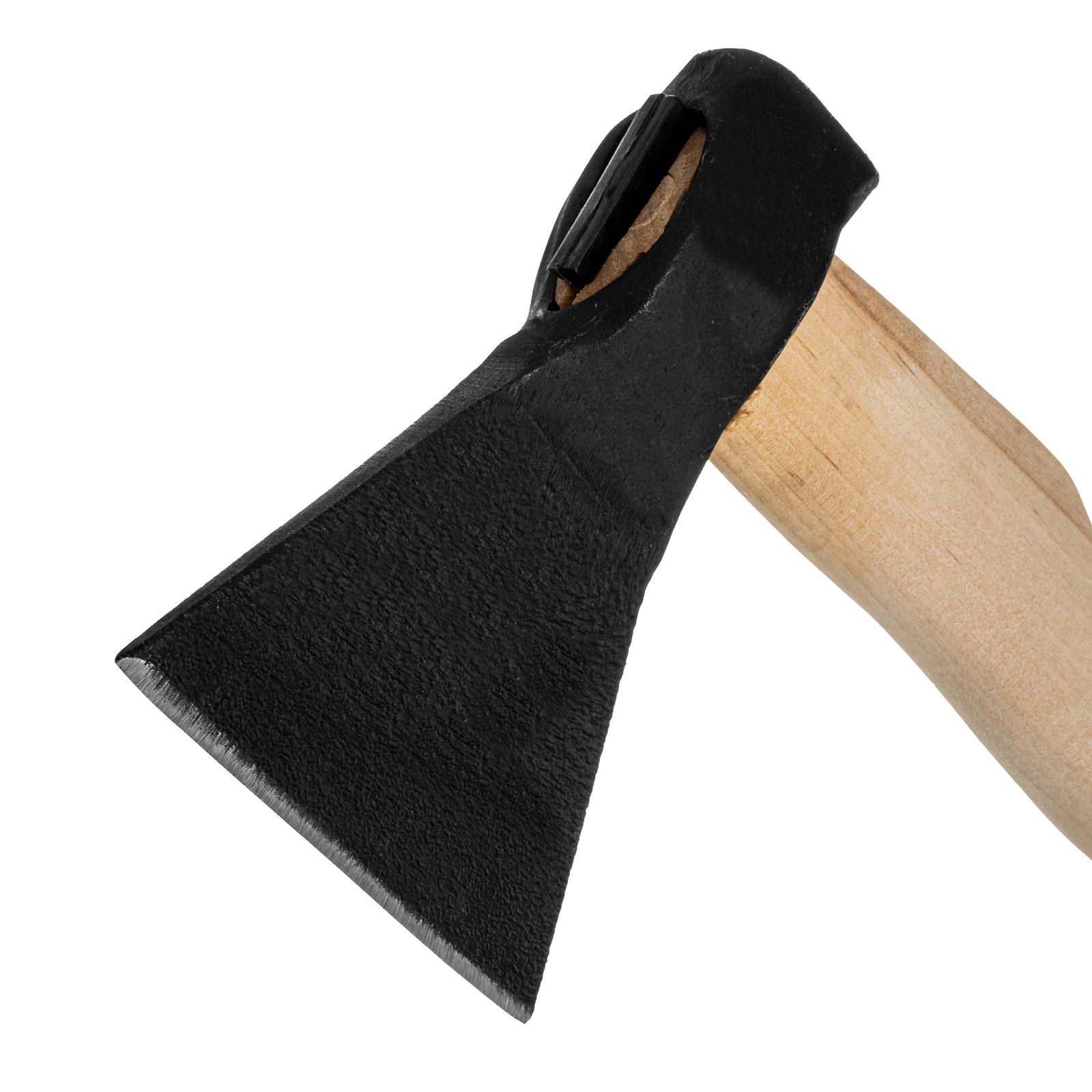 - Прочное соединение головы с топорищем — в месте всада установлен клин.