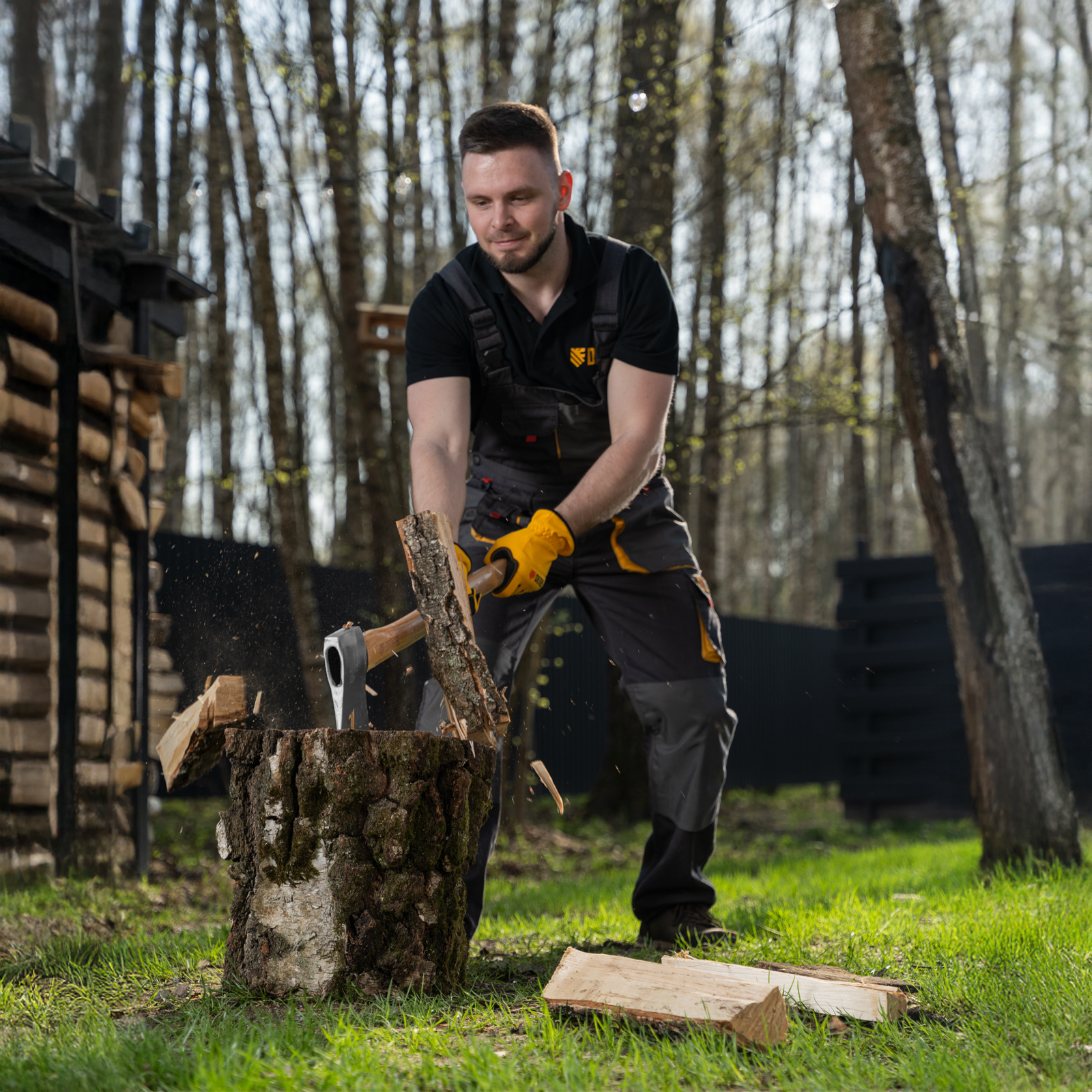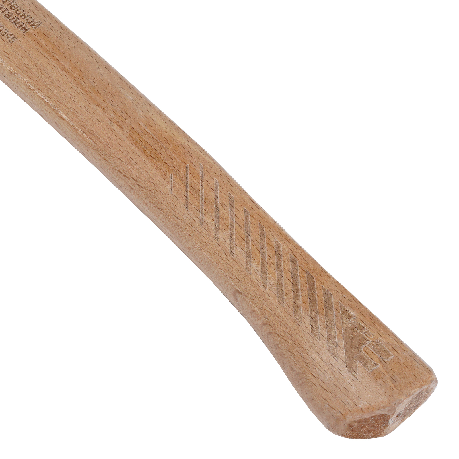 - Прочность — топорище изготовлено из твердой древесины бука и покрыто защитным лаком для предотвращения рассыхания и разбухания.