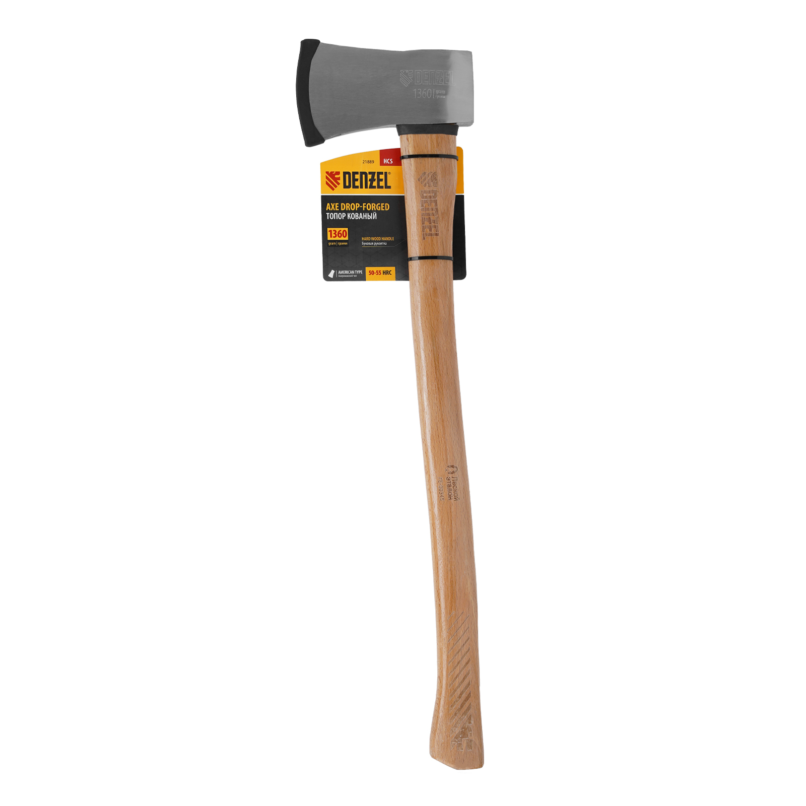 <p>Кованый топор Denzel 21889 американского типа, с полотном весом 1360 г и буковой рукояткой, предназначен для рубки и тесания древесины любых пород. Подходит для бытового и профессионального применения.</p><h2>Преимущества</h2><ul><li>Высокий показатель прочности — полотно выполнено из высокоуглеродистой стали HCS методом ковки и прошло зонную закалку до твердости 50-55 HRC, поэтому успешно выдерживает динамические нагрузки.</li><li>Прочность — топорище изготовлено из твердой древесины бука и покрыто защитным лаком для предотвращения рассыхания и разбухания.</li><li>Экологичность — инструмент соответствует стандартам системы «Лесной эталон», для изготовления топорища использована древесина из сертифицированных лесов, полностью соблюдены требования, направленные на сохранение экологически ценных лесов.</li><li>Удобная работа — лазерный прожиг места хвата обеспечивает противоскользящий эффект.</li></ul>