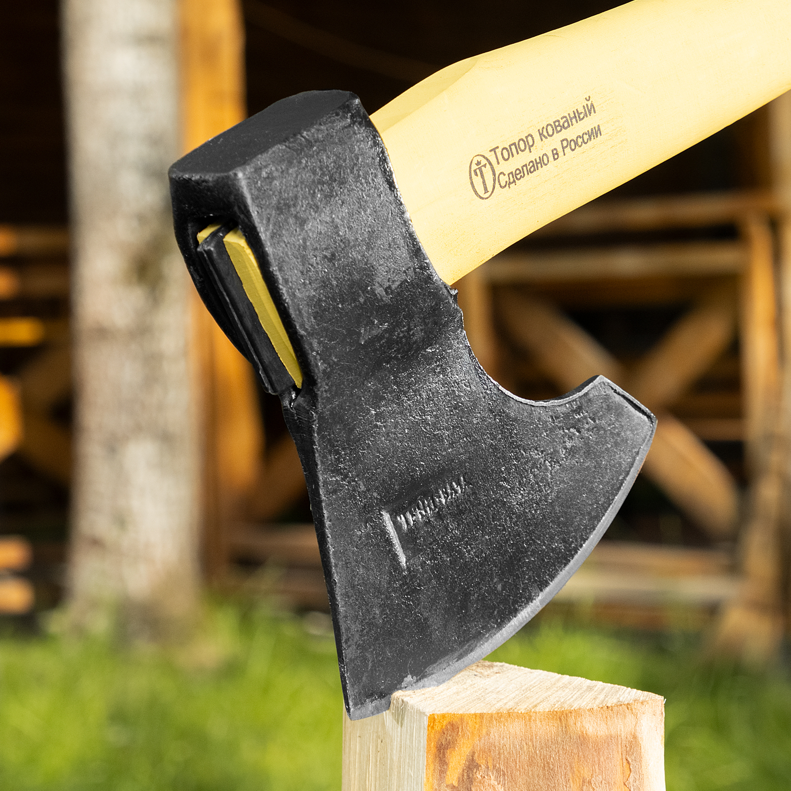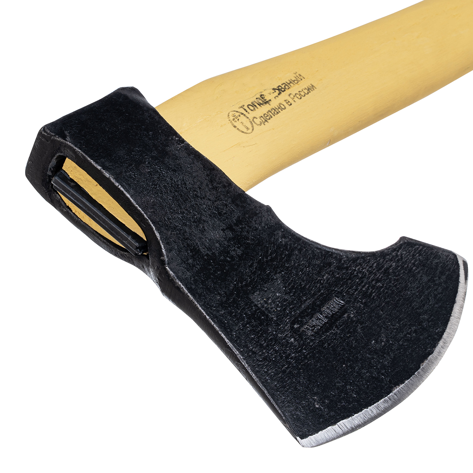 - Клин в месте всада — топорище надежно закреплено в голове.