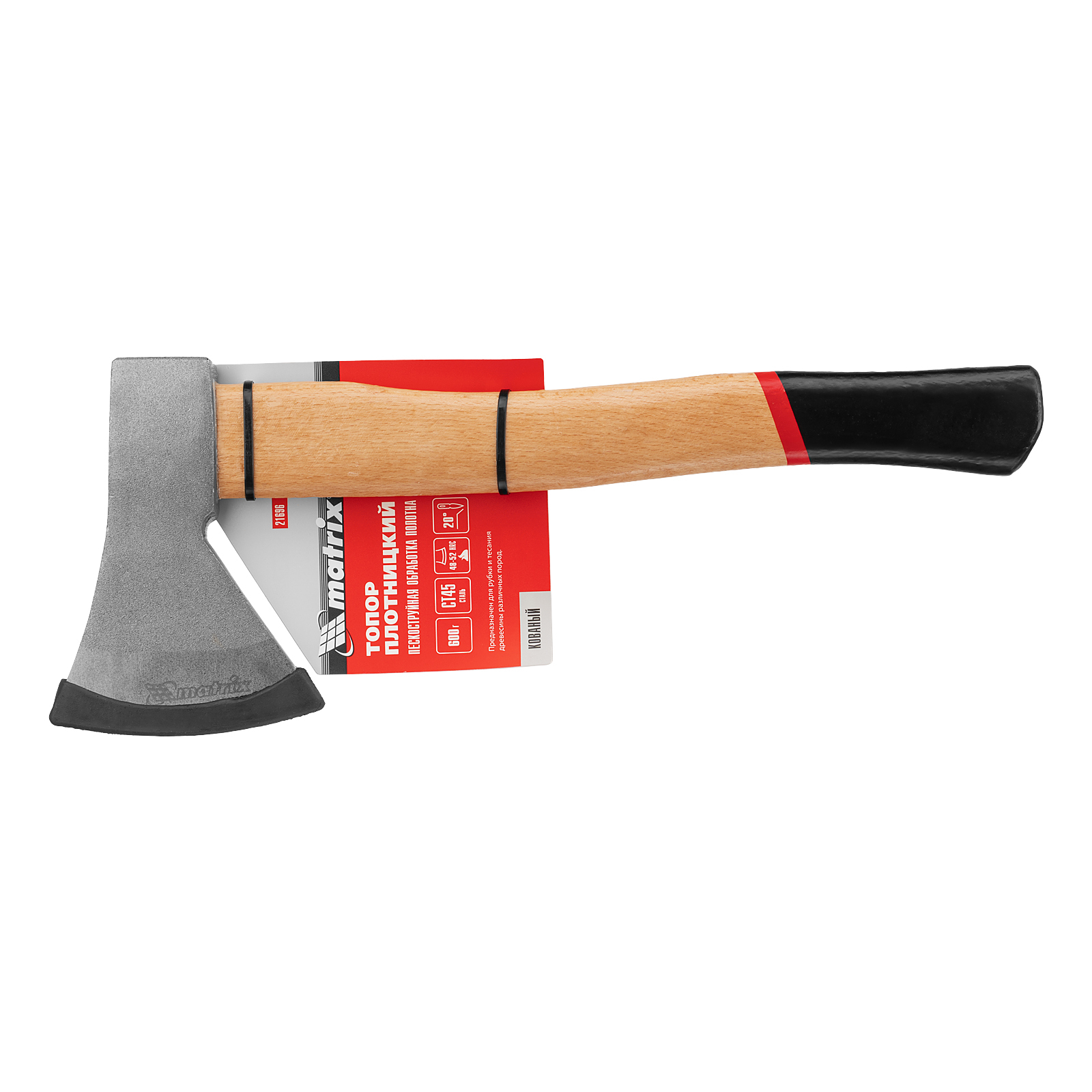 <p>Кованый плотницкий топор Matrix 21696 с весом рабочей части 600 г имеет эргономичную деревянную рукоятку и пескоструйную обработку полотна. Топор используется при рубке и тесании древесины любых видов пород.</p><h2>Преимущества</h2><ul><li>Прочность и устойчивость к нагрузкам — голова топора выполнена из углеродистой стали 45, рабочие поверхности закалены до твердости 48-52 HRC</li><li>Высококачественное топорище — оно выполнено из древесины твердых лиственных пород и покрыто защитным лаком.</li><li>Небольшие габариты — топор не оказывает сильной нагрузки на руки, его легко транспортировать в походном рюкзаке или небольшой сумке для инструментов.</li></ul>