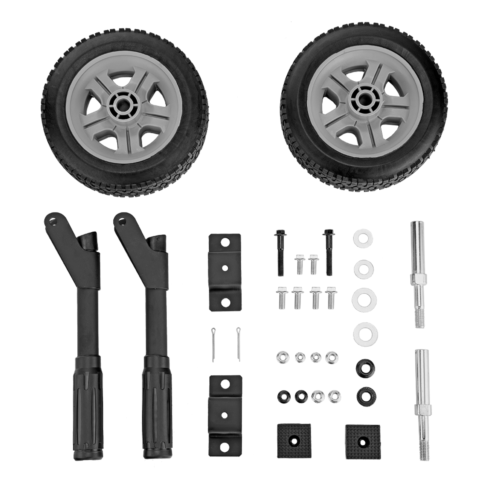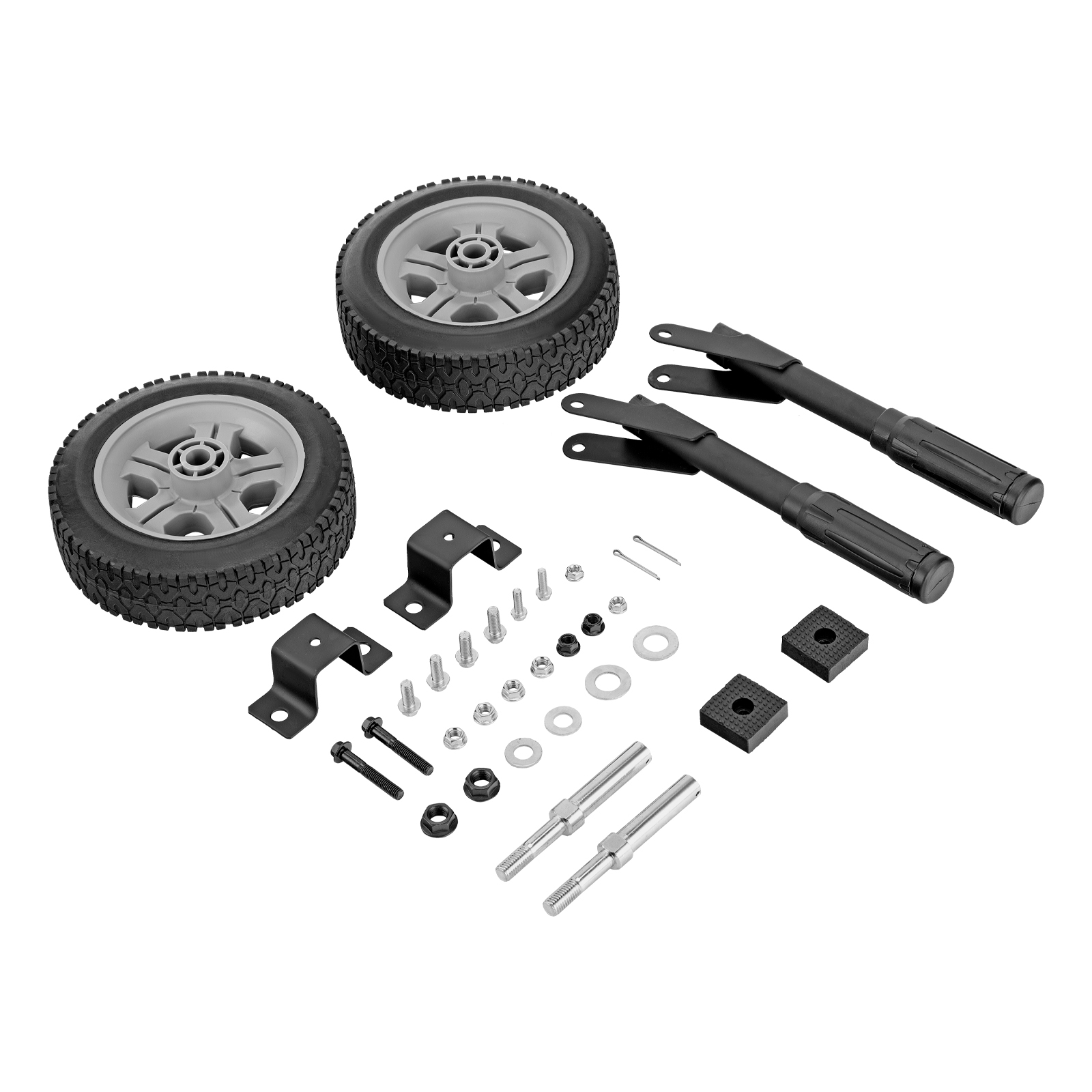 Болт М8 - 2 штРукоятка - 2 штГайка М8 - 2 штБолт М8 - 4 штОпора - 2 штГайка М8 - 4 штГайка М12 - 2 штОсь - 2 штКолесо - 2 штШайба D16 - 2 штШплинт - 2 штУпаковка - 1 штРуководство по эксплуатации и гарантийный талон - 1 шт